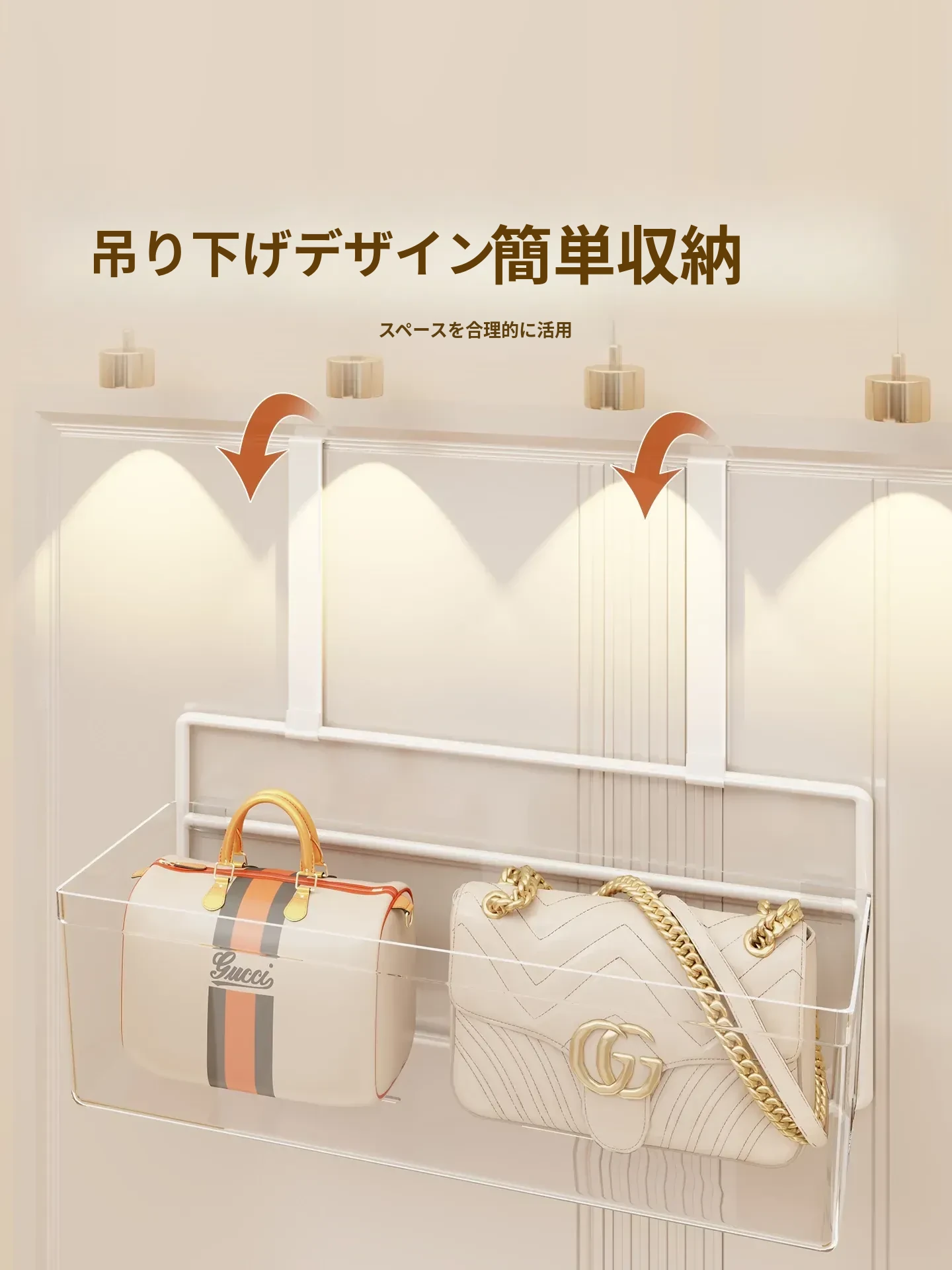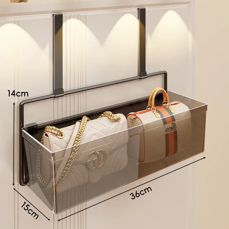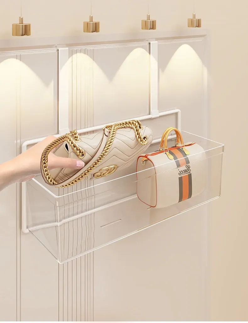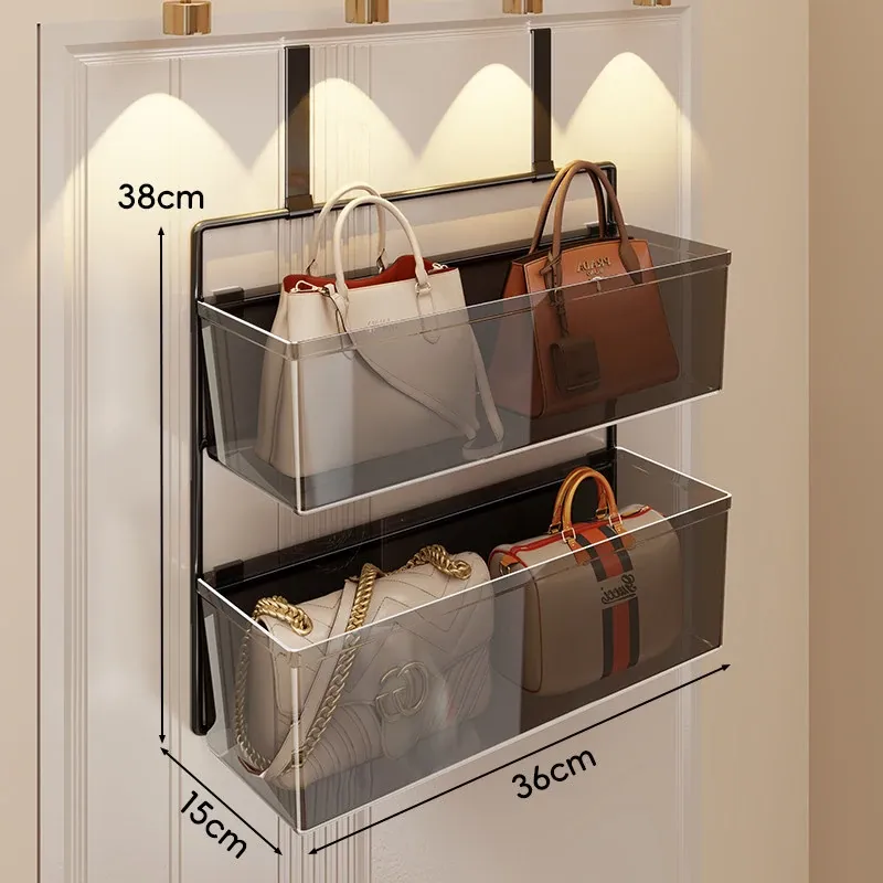 ドア裏フック収納ラック - 穴あけ不要の多層収納でバッグもすっきり整理!便利なマルチ収納ボックス付きで、お部屋をスッキリ整頓。おしゃれで実用的な収納アイテムです!