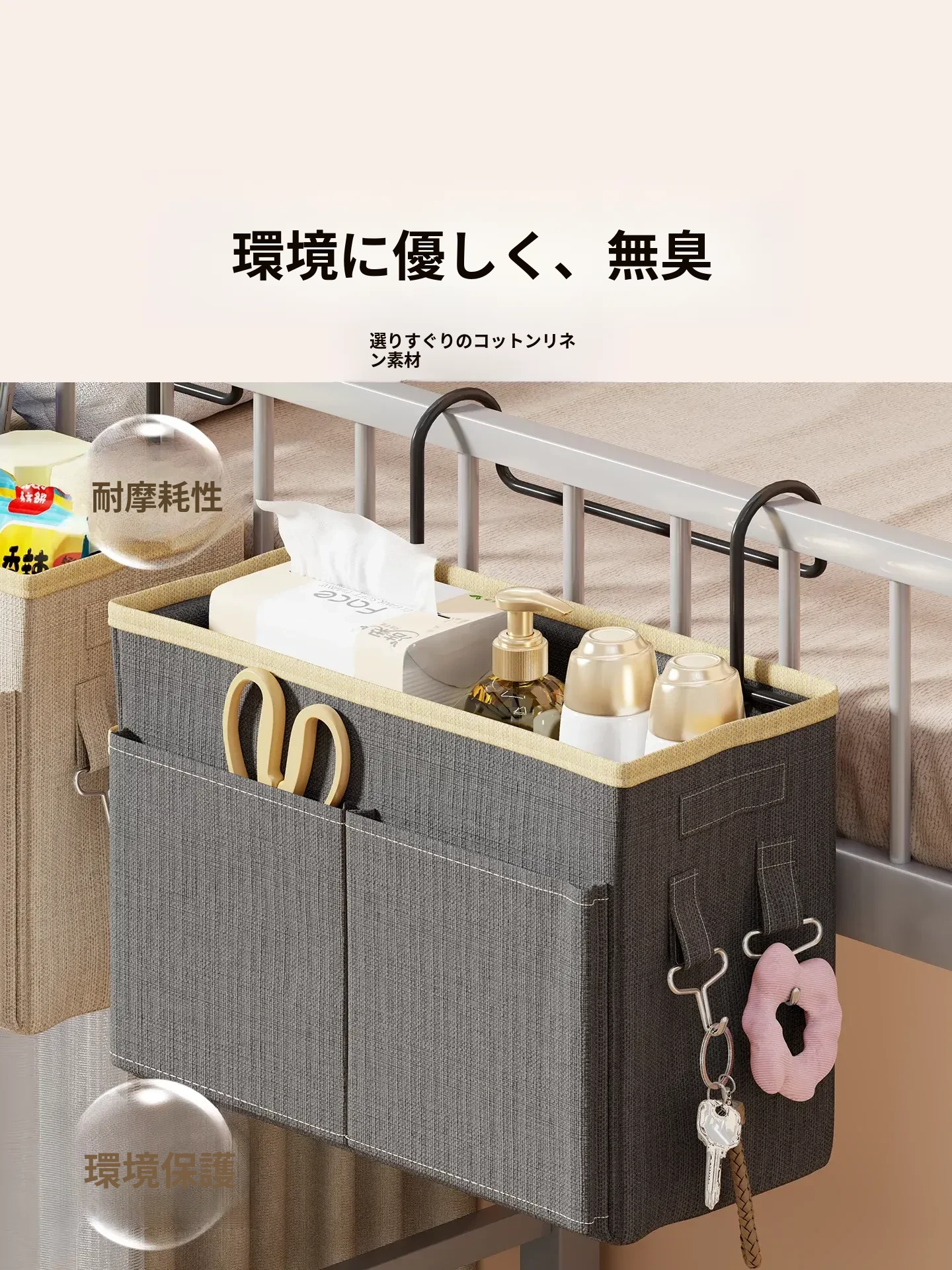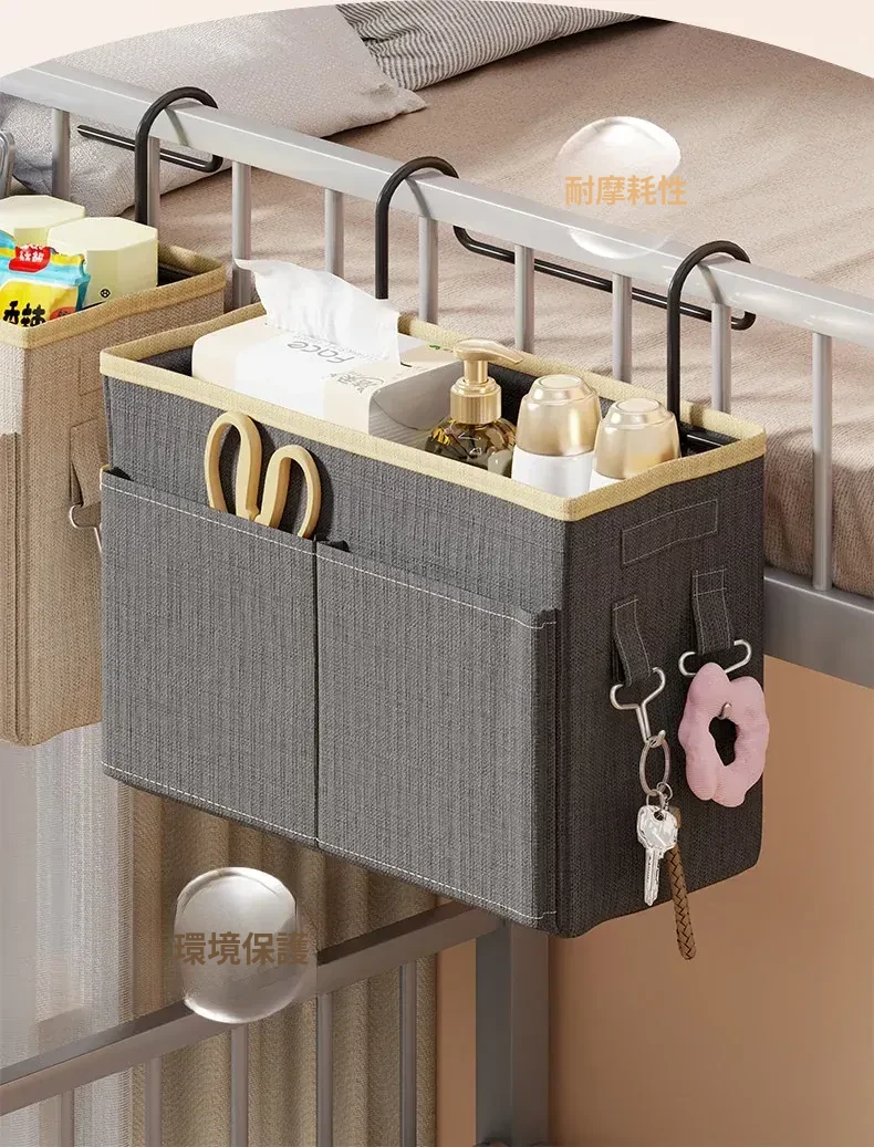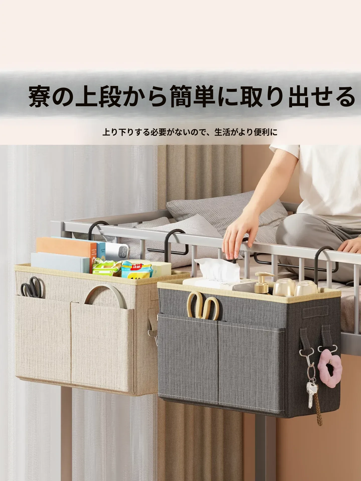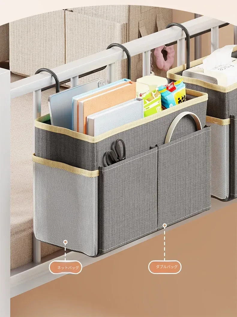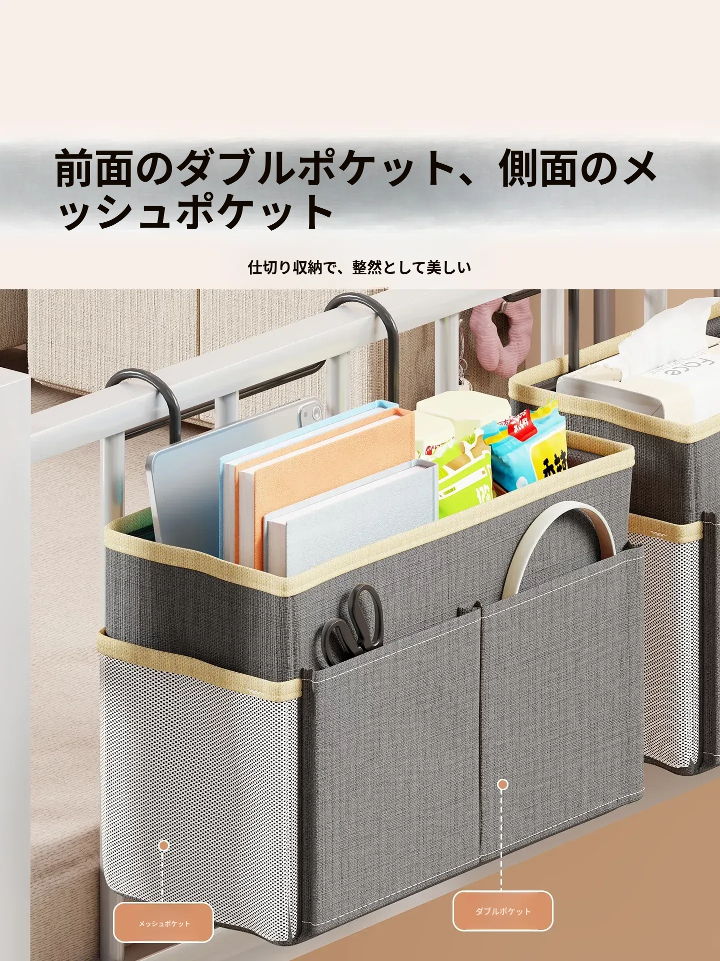 大学生必見!宿舎ベッドサイドハンギングバスケット - 穴あけ不要のベッドヘッド収納ラック、上段ベッドのためのスナックや小物整理に最適!快適で便利な生活をサポートします。