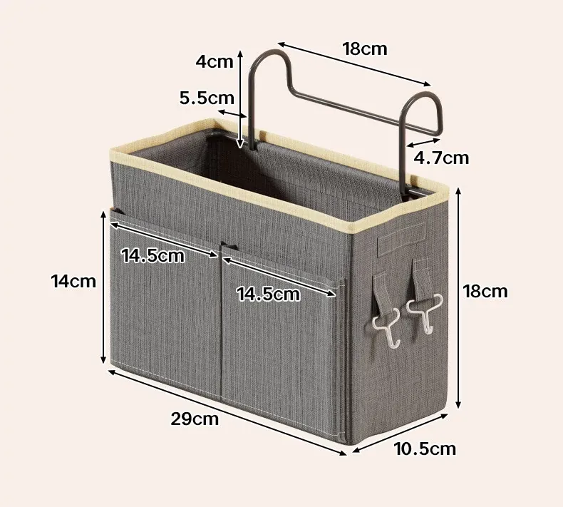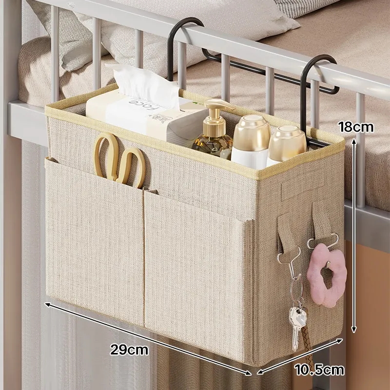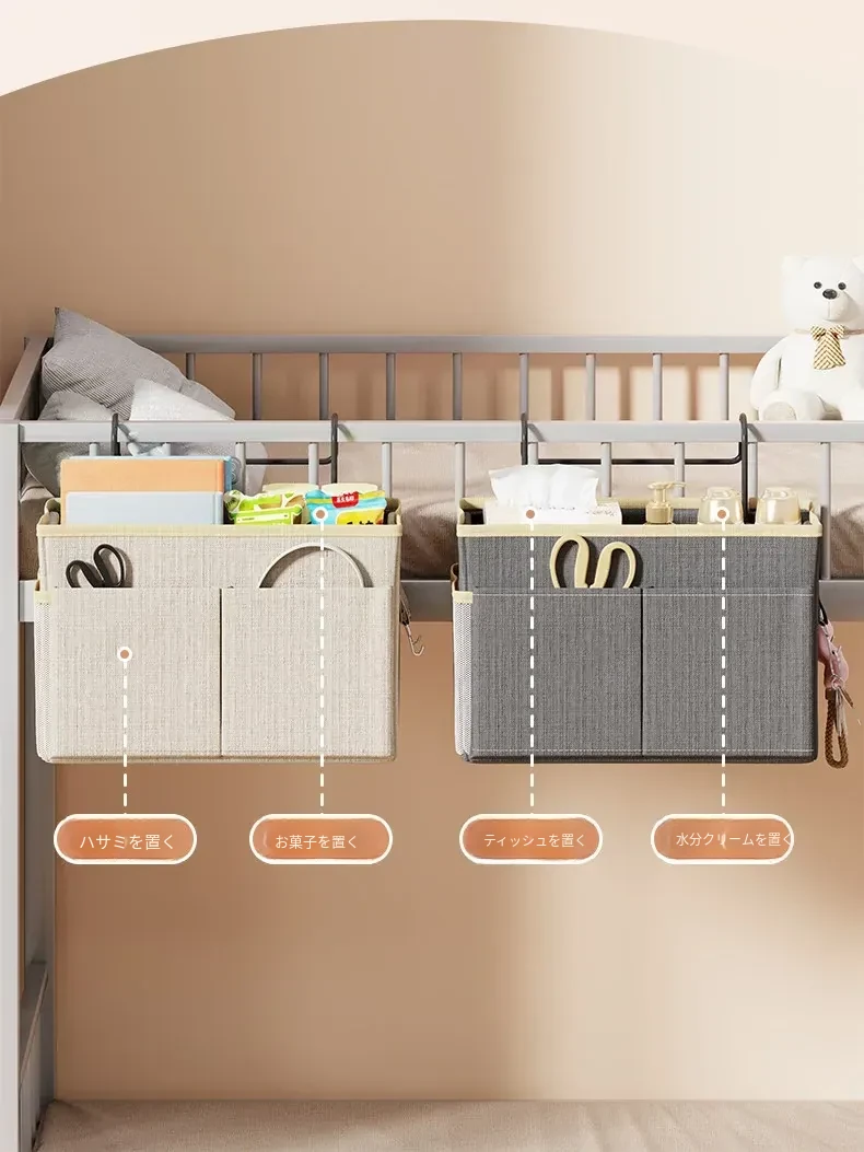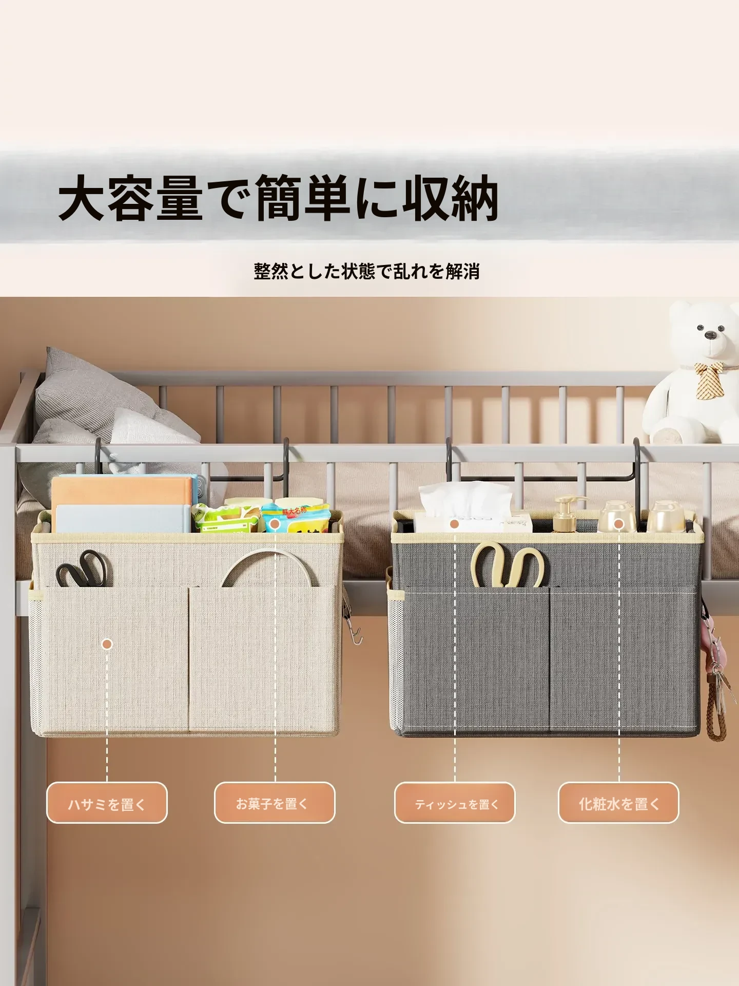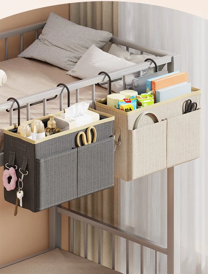大学生必見!宿舎ベッドサイドハンギングバスケット - 穴あけ不要のベッドヘッド収納ラック、上段ベッドのためのスナックや小物整理に最適!快適で便利な生活をサポートします。