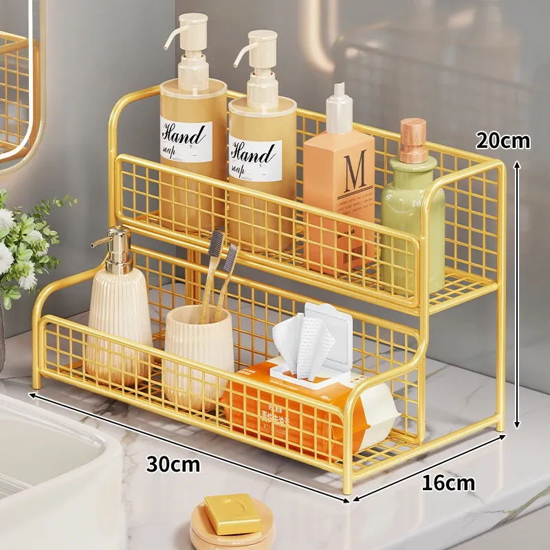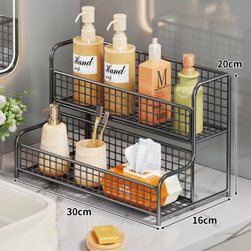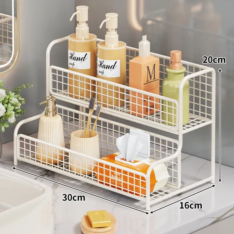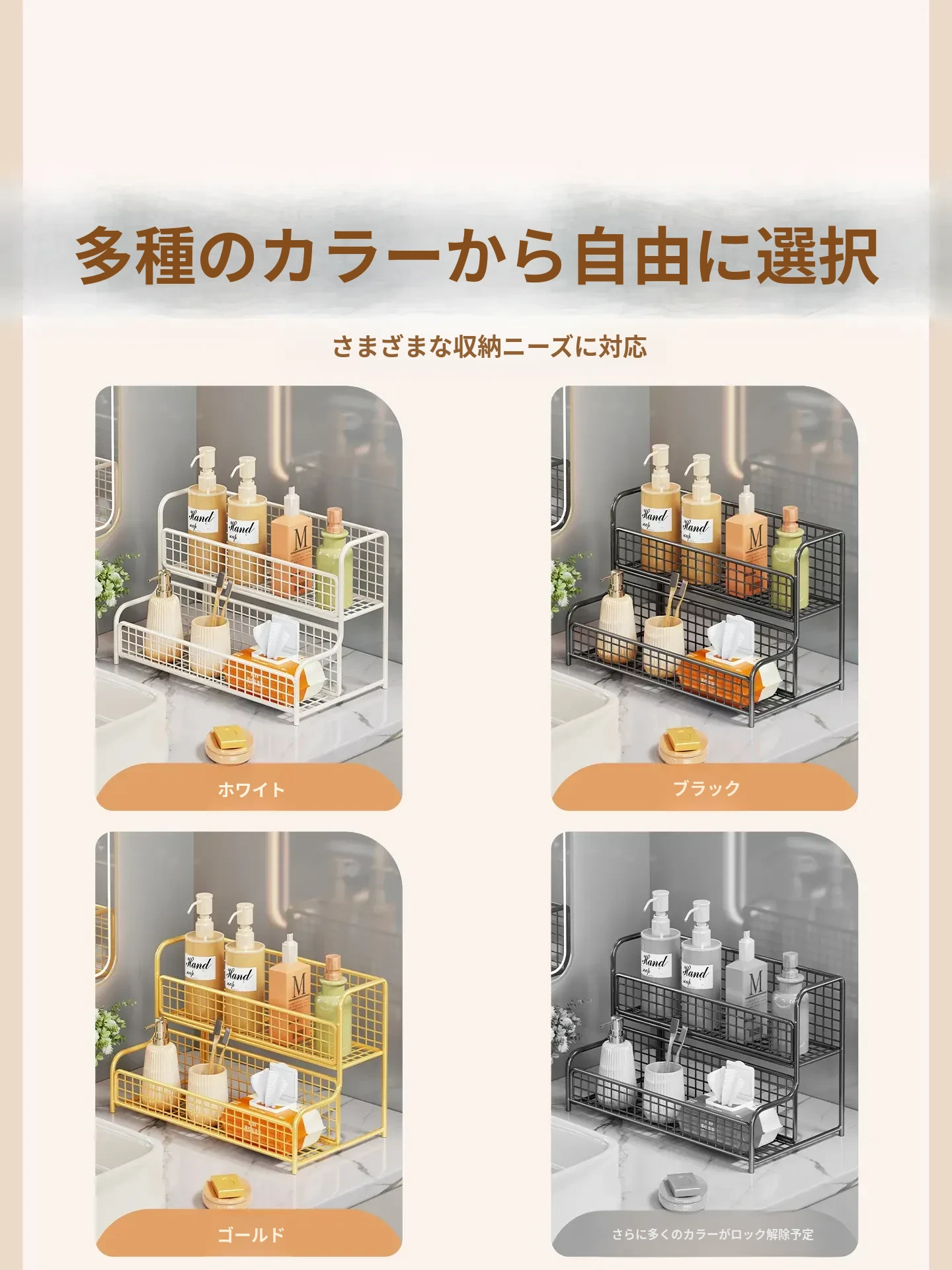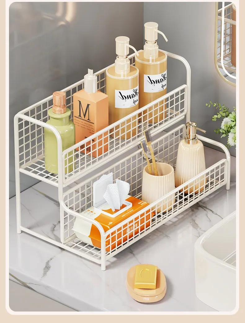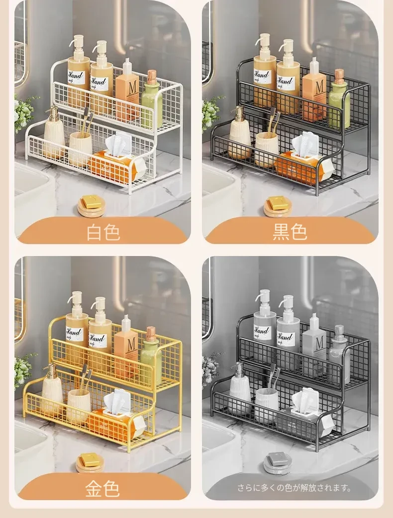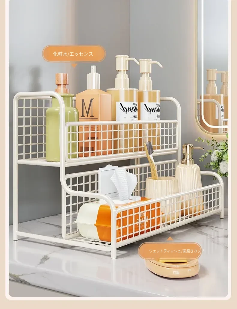 化粧品収納ラック|衛生的で美しいバスルームを実現!2段式でスキンケア用品もスッキリ整理|家庭用の便利な収納ボックス