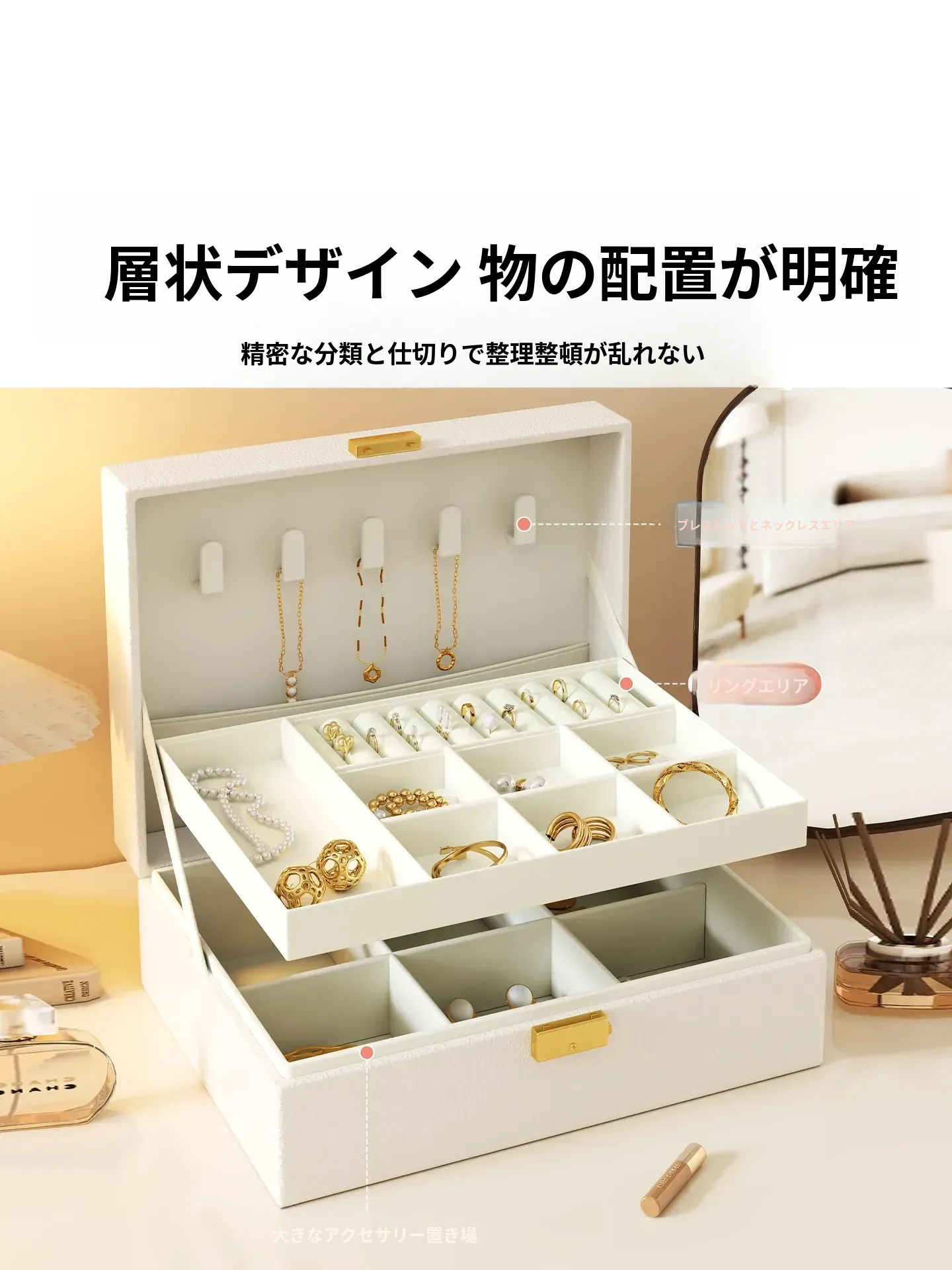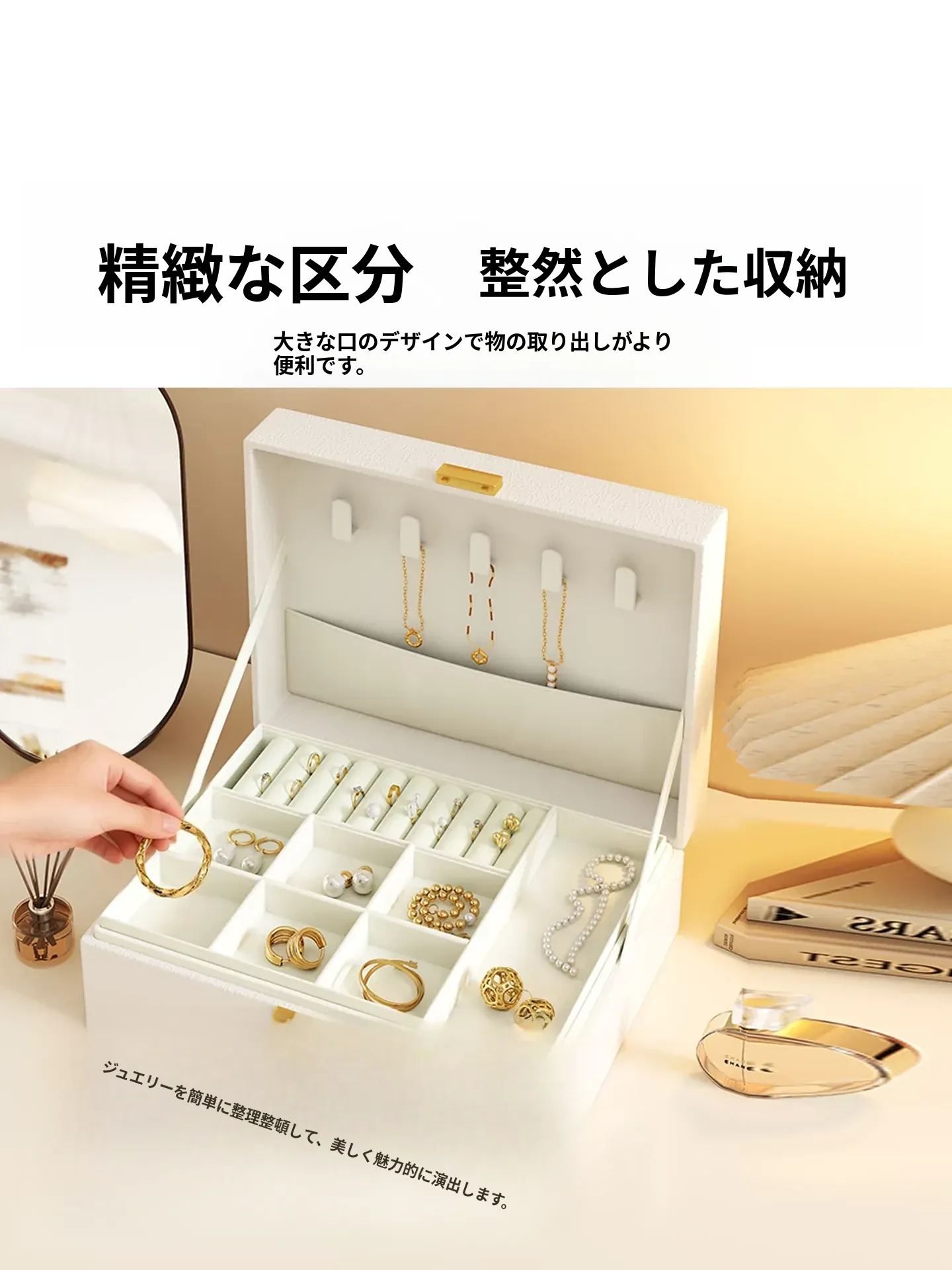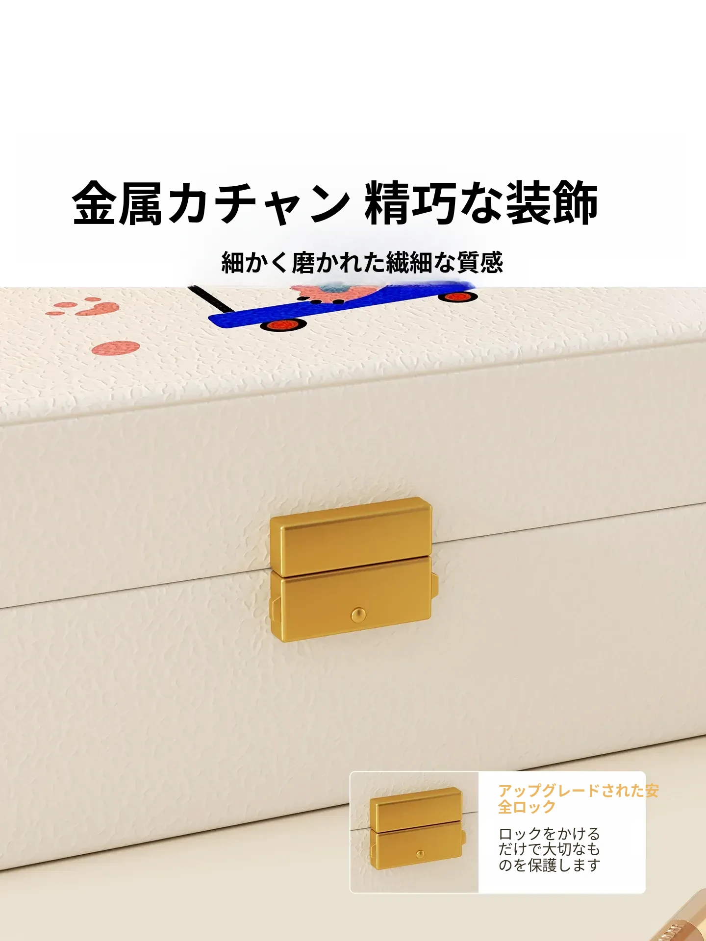 高級ゴールドジュエリーボックス - 鍵付き大容量でネックレスやイヤリングを美しく収納!デリケートな手作りアクセサリーも安心のクリーム風デザイン。おしゃれで機能的な収納アイテムを手に入れよう!