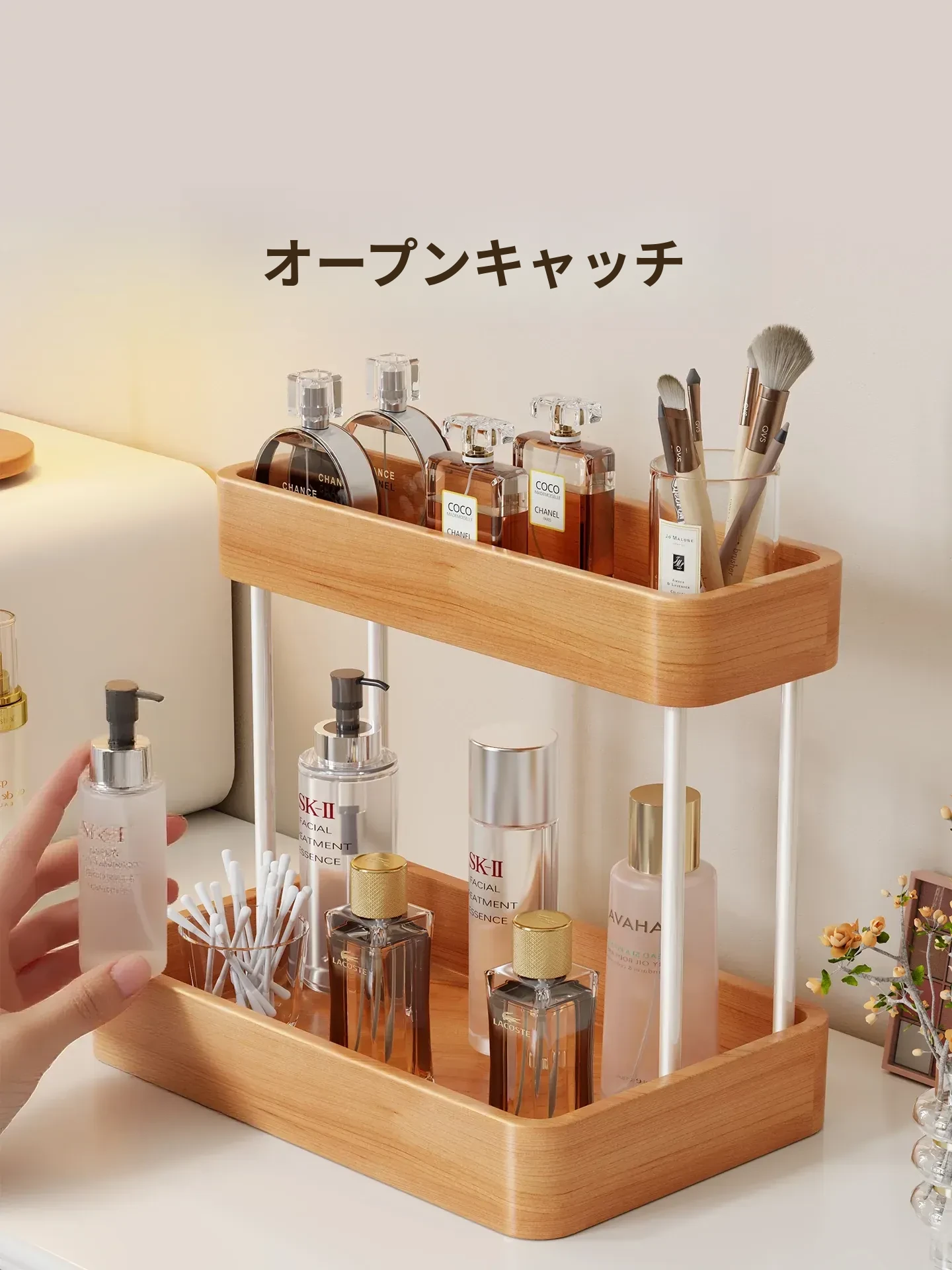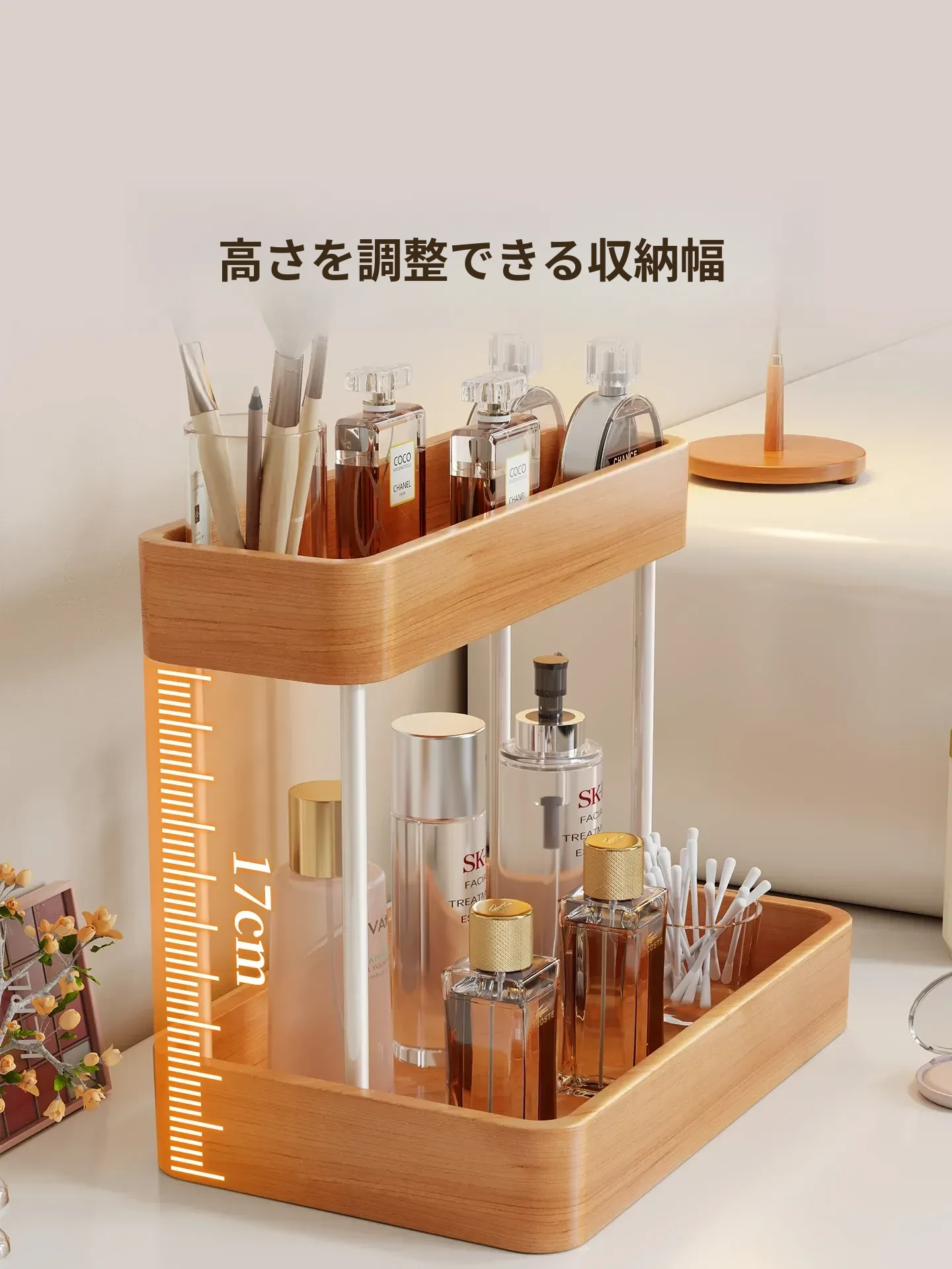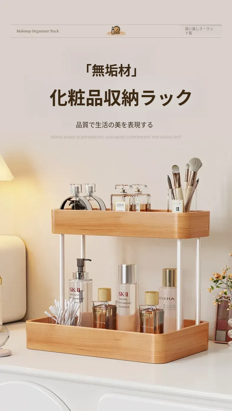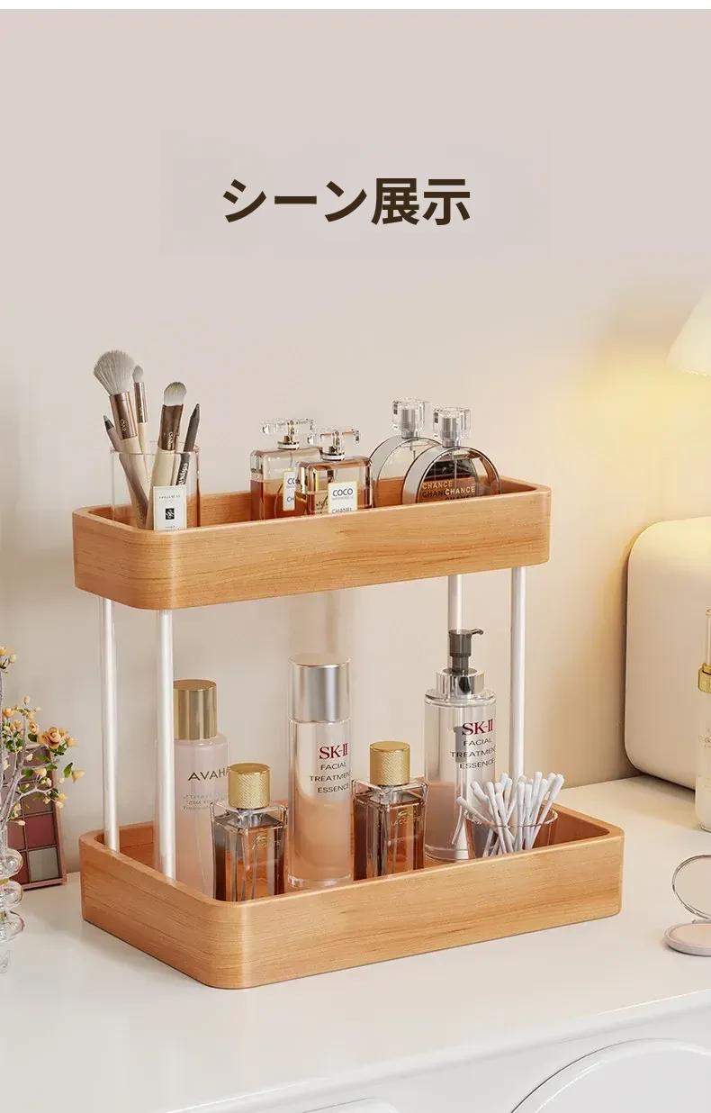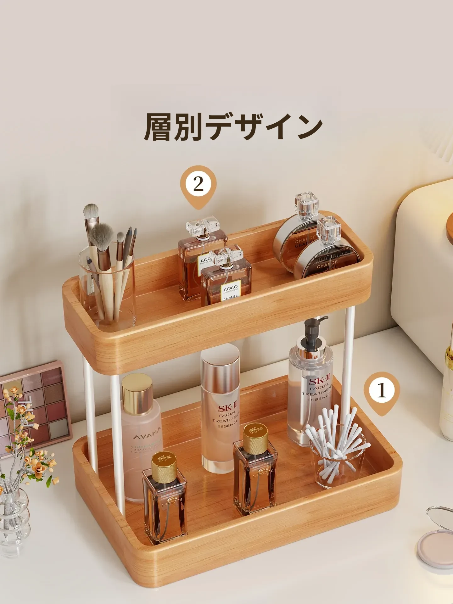 木製コスメ収納ボックス - デスクトップ整理用、スキンケアアイテムもすっきり収納!寝室のドレッサーに最適な多機能ラックで、おしゃれな空間を演出します。