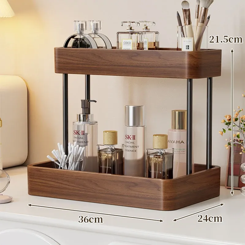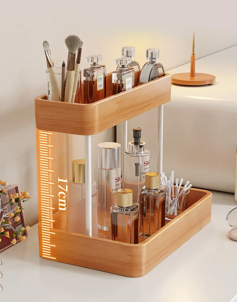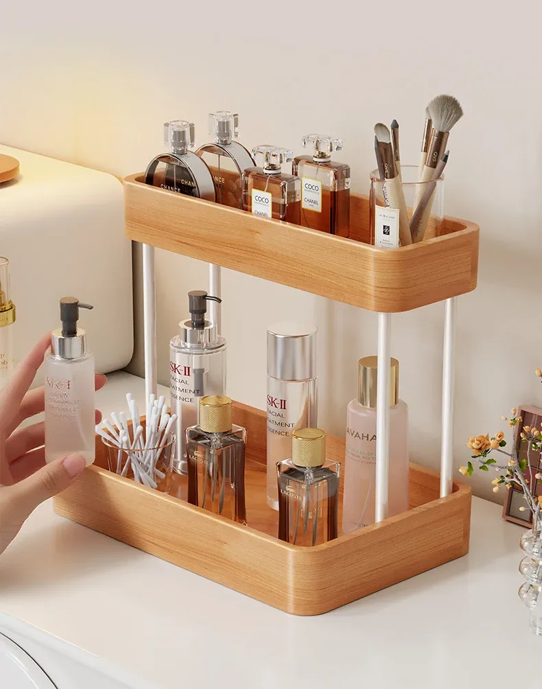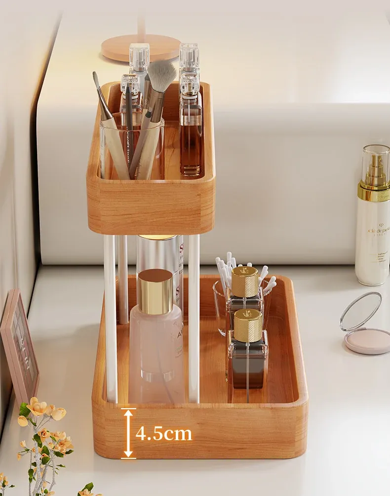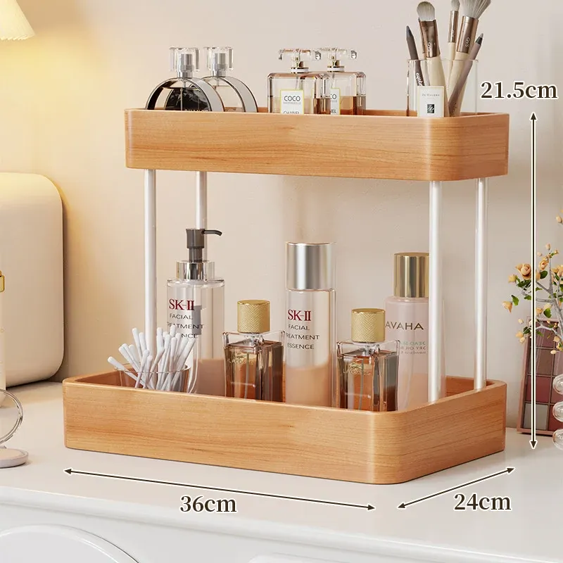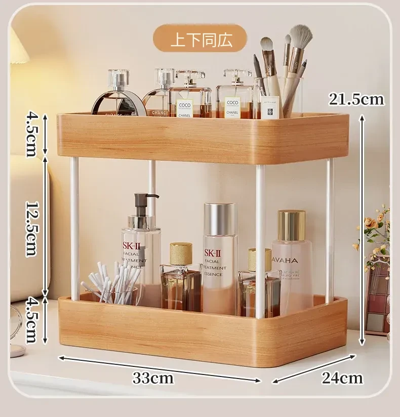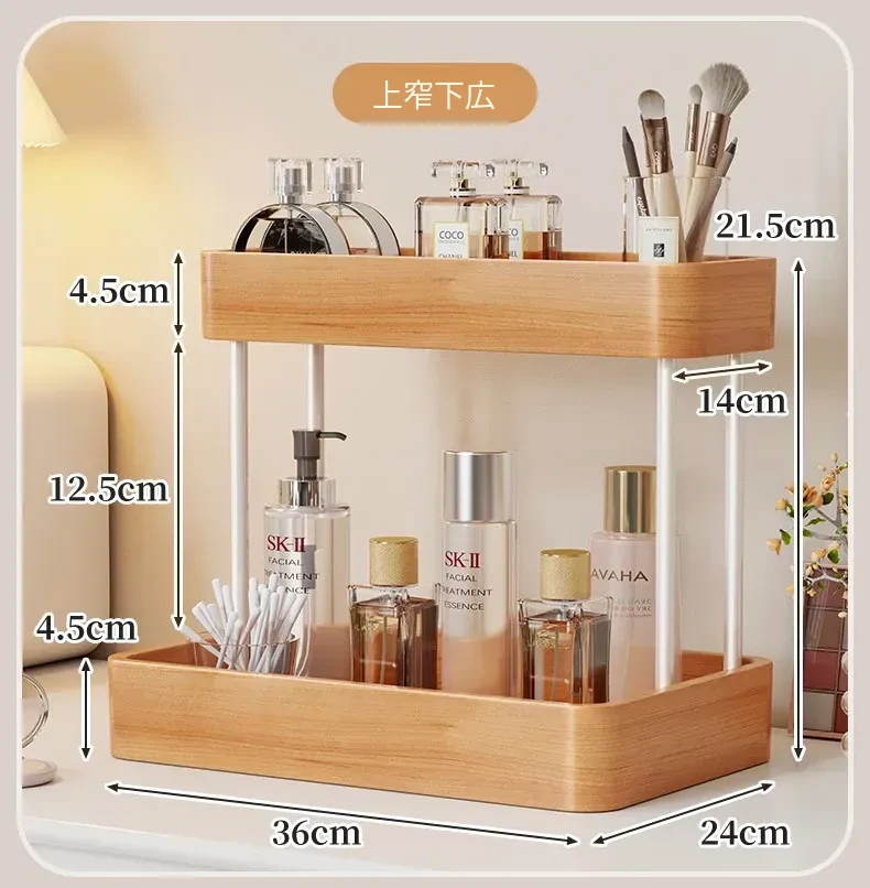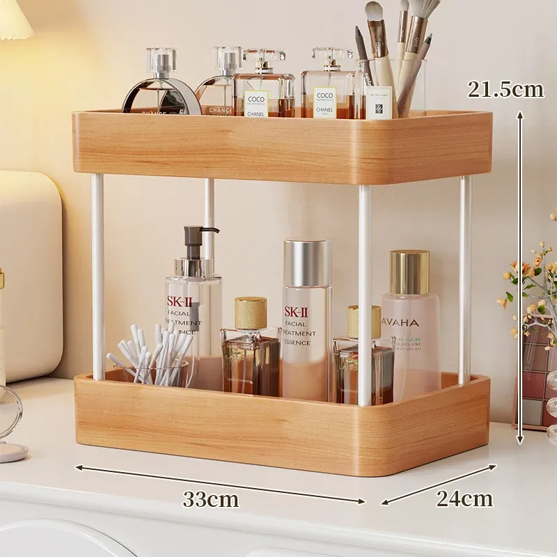 木製コスメ収納ボックス - デスクトップ整理用、スキンケアアイテムもすっきり収納!寝室のドレッサーに最適な多機能ラックで、おしゃれな空間を演出します。