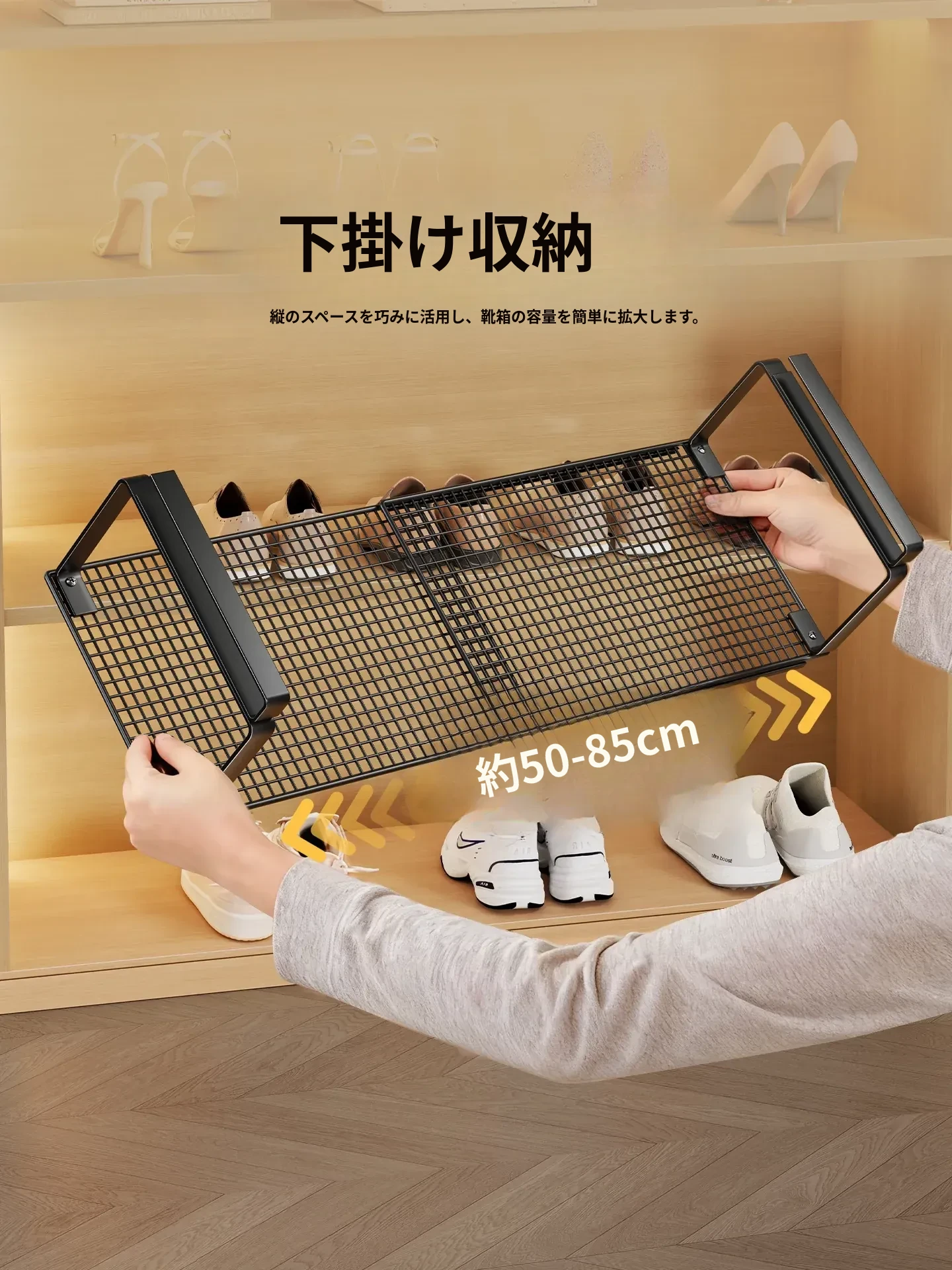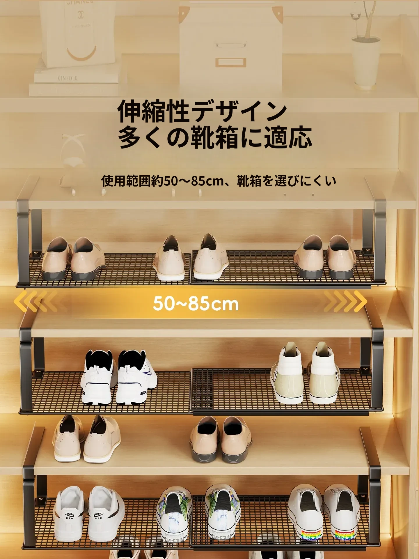 伸縮可能なシューラック - 玄関収納に最適な階層分割棚!靴をすっきり整理できる省スペースハンガー、あなたの靴を美しく保ちます。収納力抜群で、使い勝手も抜群!
