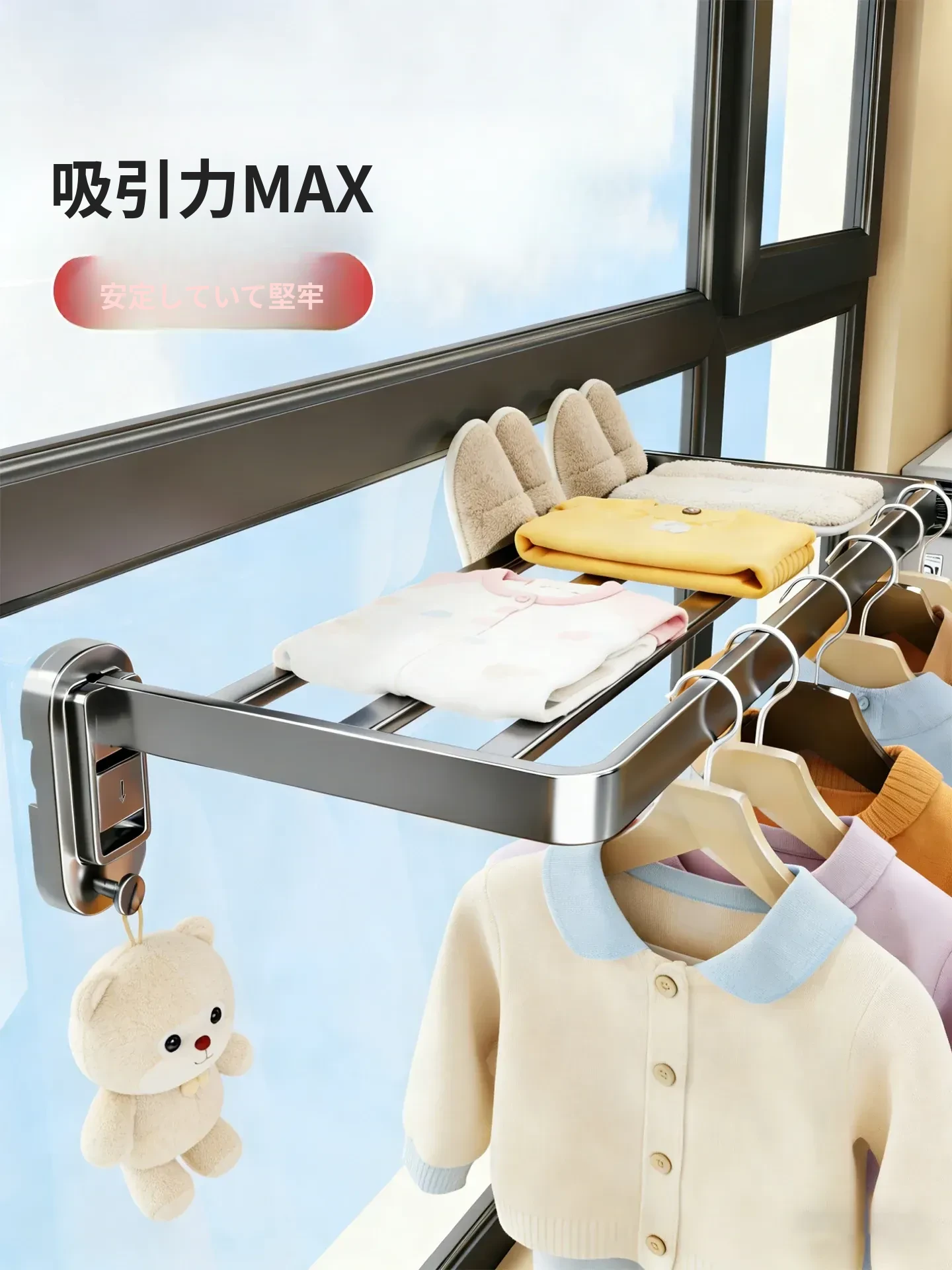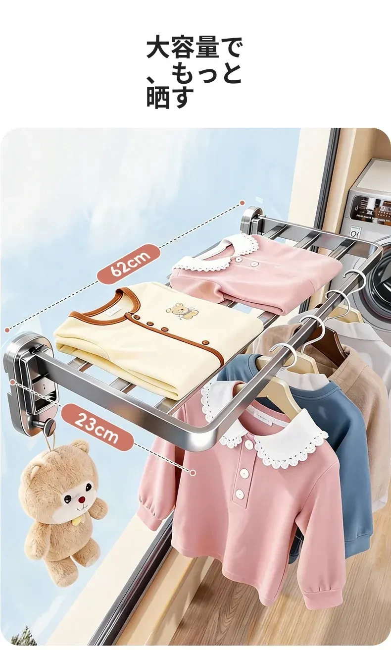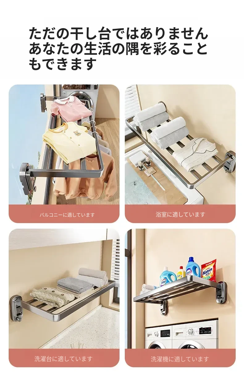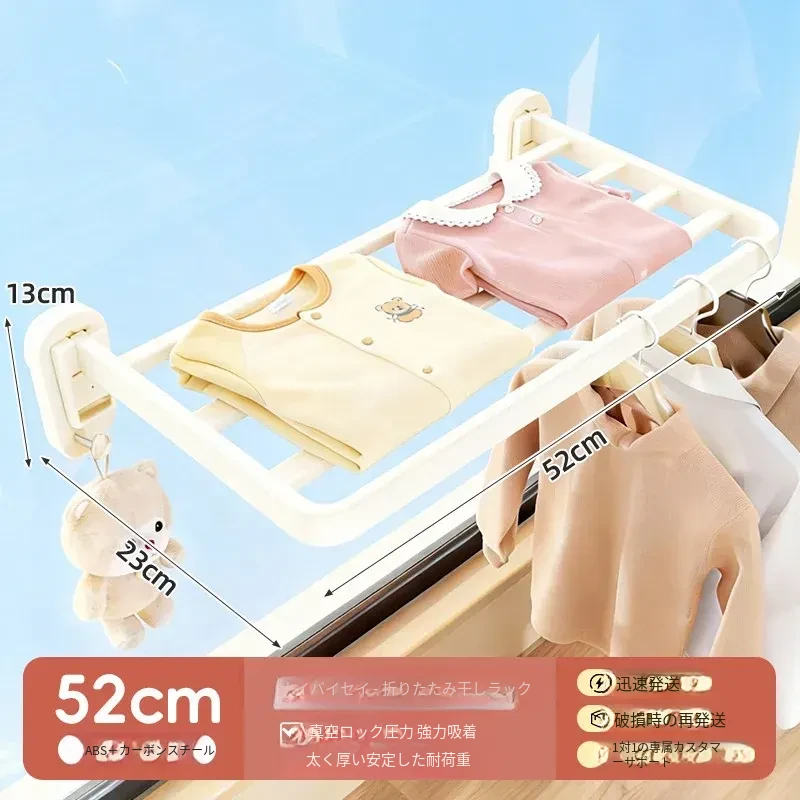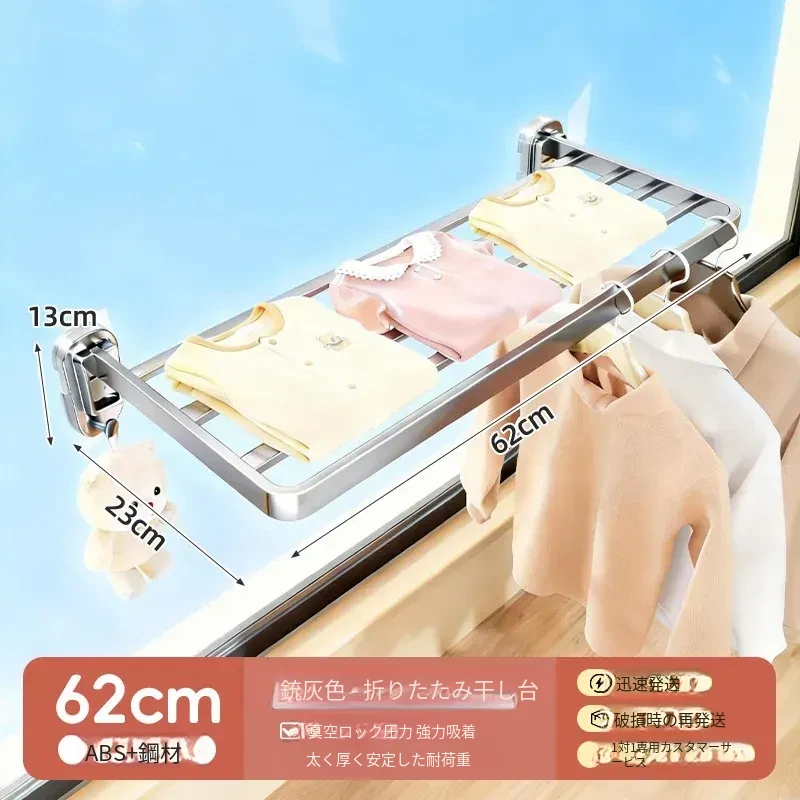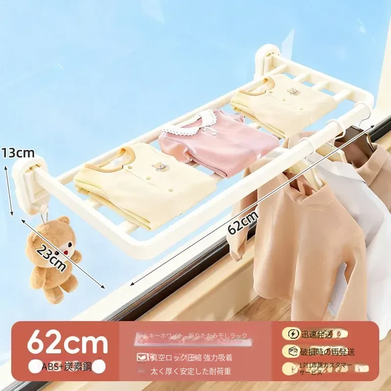 吸盤式折りたたみ衣類干しラック - 室内窓用コンパクトデザイン!壁掛け式で穴を開けずに簡単取り付け、靴も干せる便利な家用アイテム。お部屋をスッキリ整理整頓!