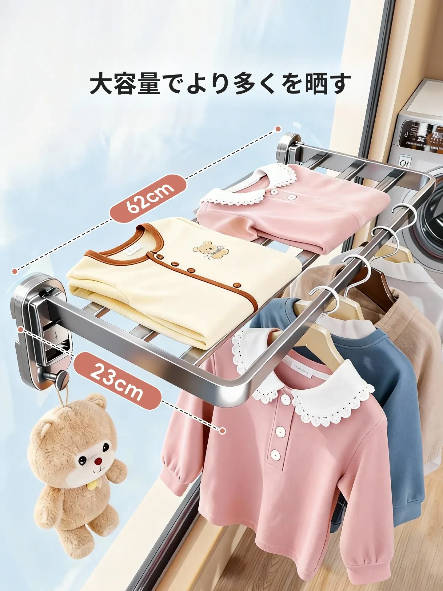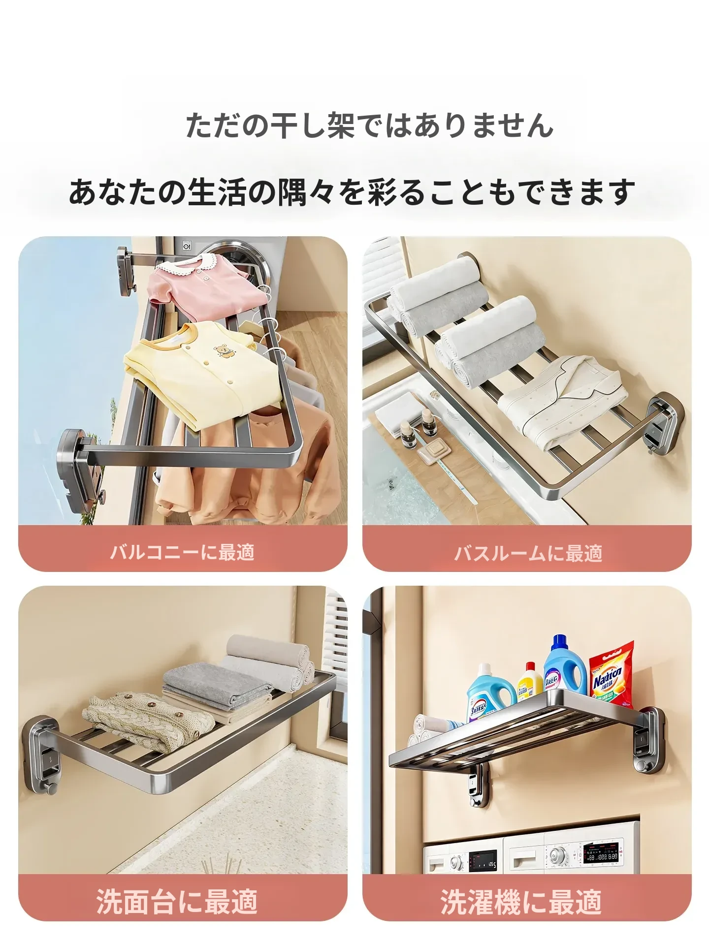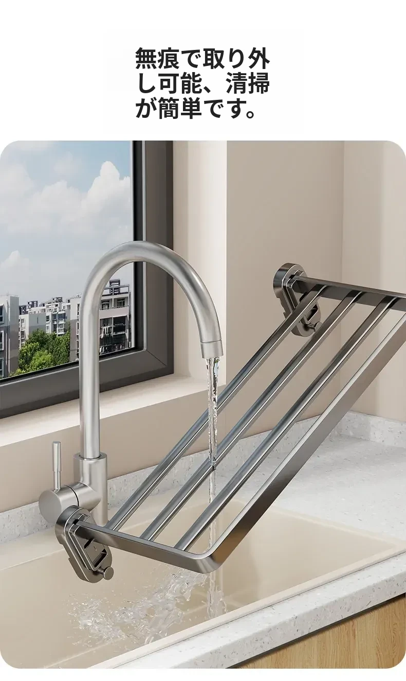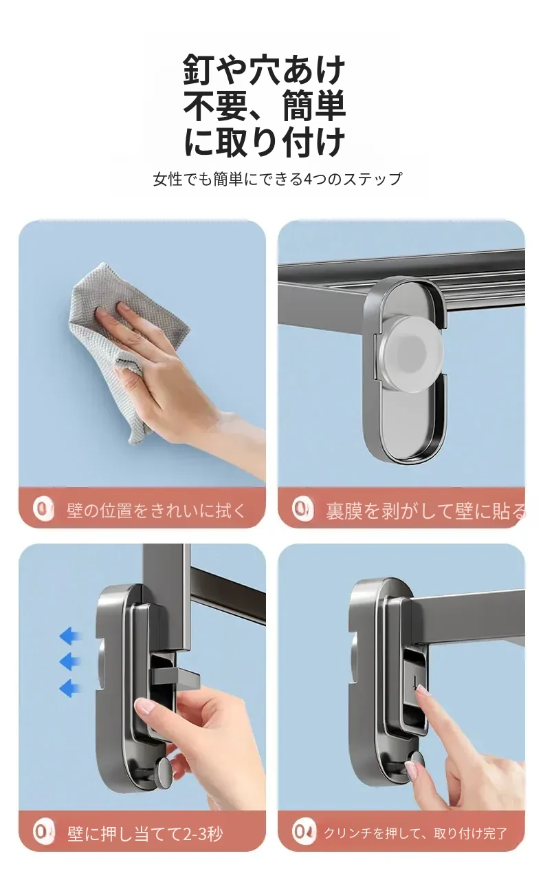 吸盤式折りたたみ衣類干しラック - 室内窓用コンパクトデザイン!壁掛け式で穴を開けずに簡単取り付け、靴も干せる便利な家用アイテム。お部屋をスッキリ整理整頓!
