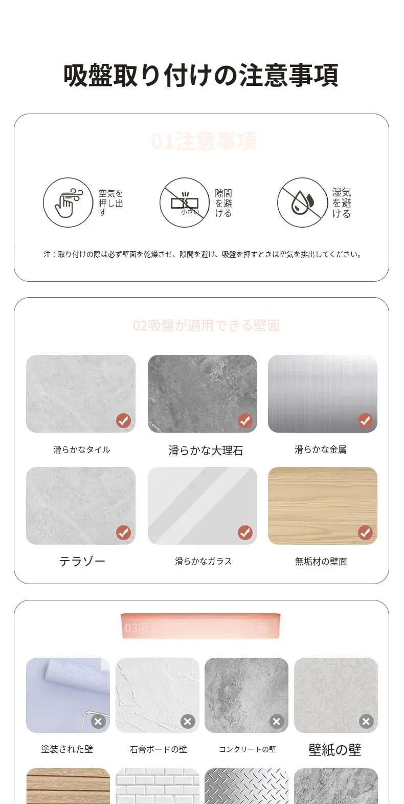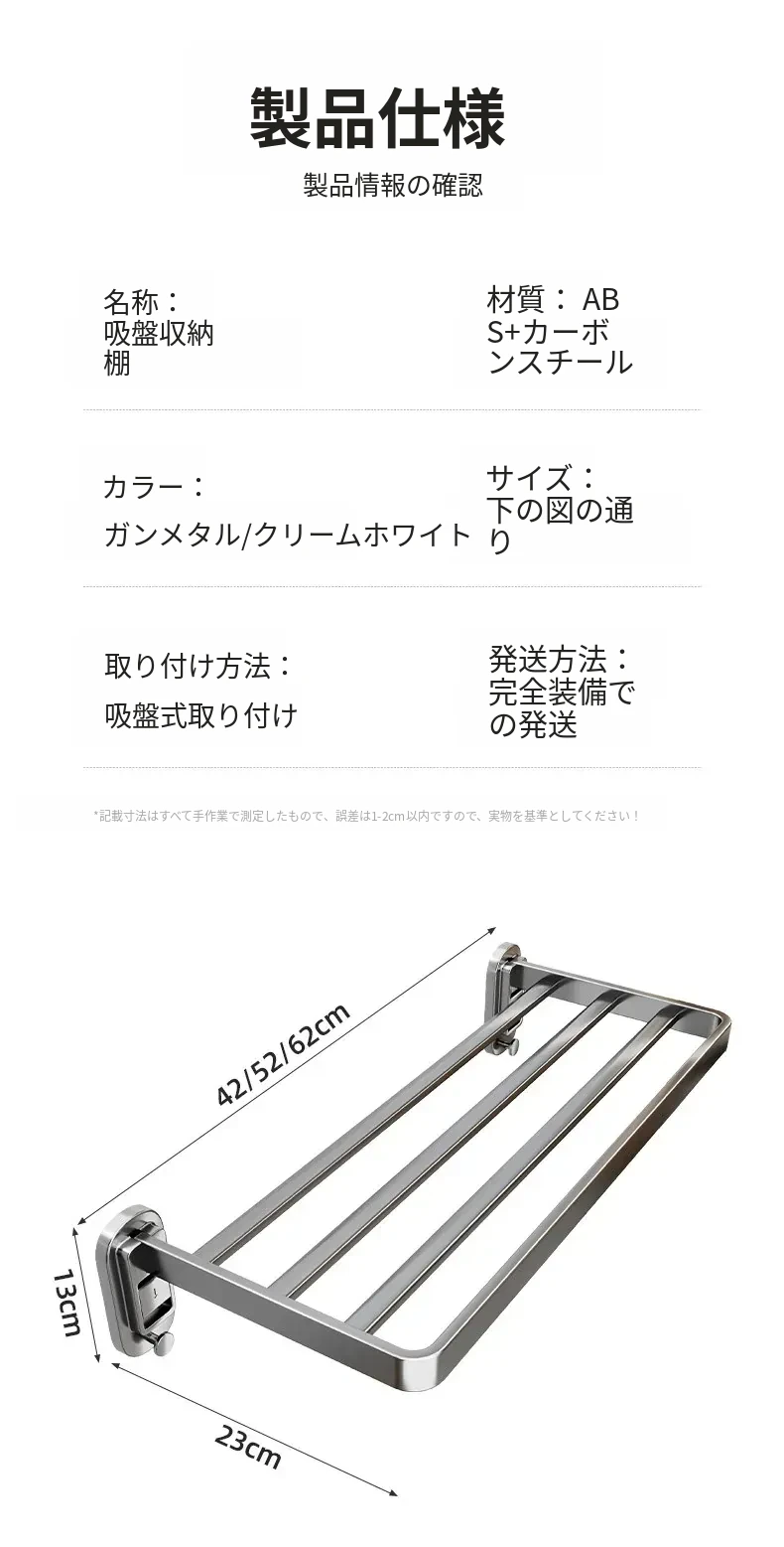 ミルクホワイト - 吸盤干しラック50cm