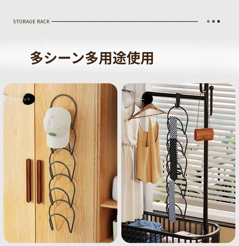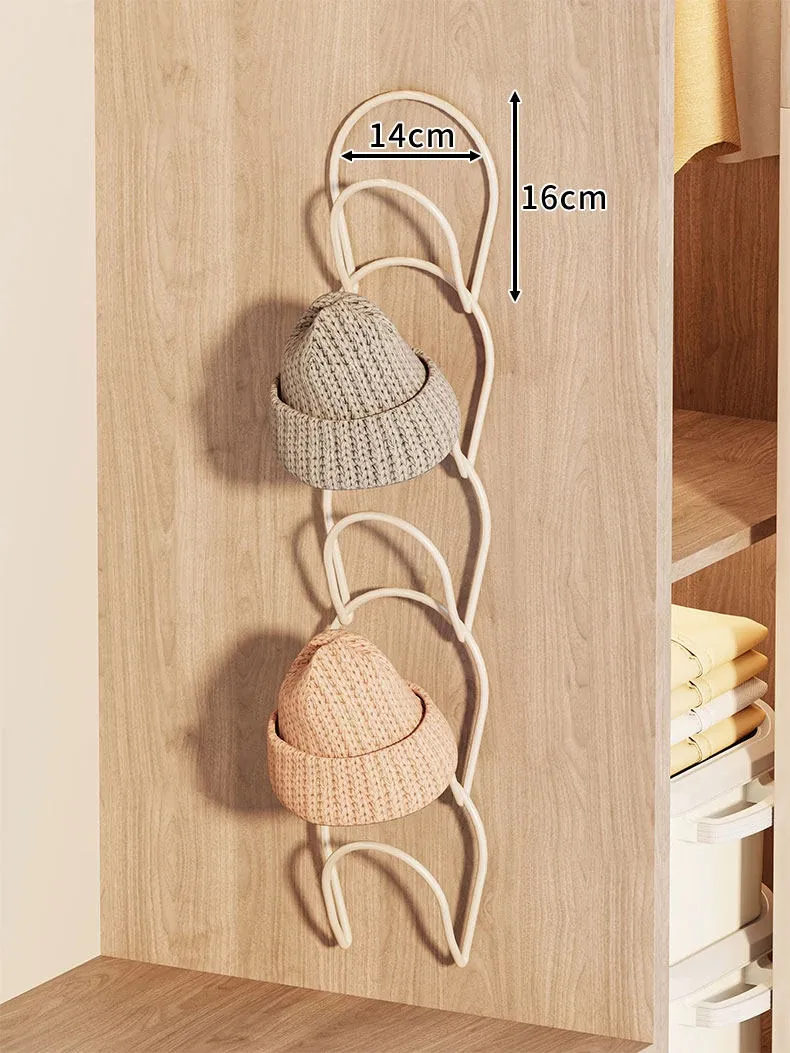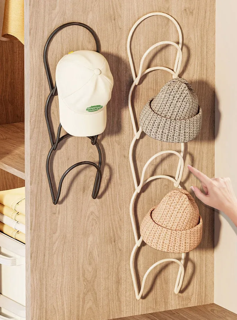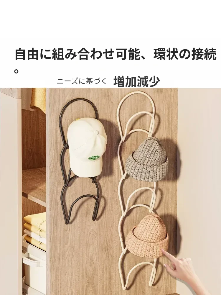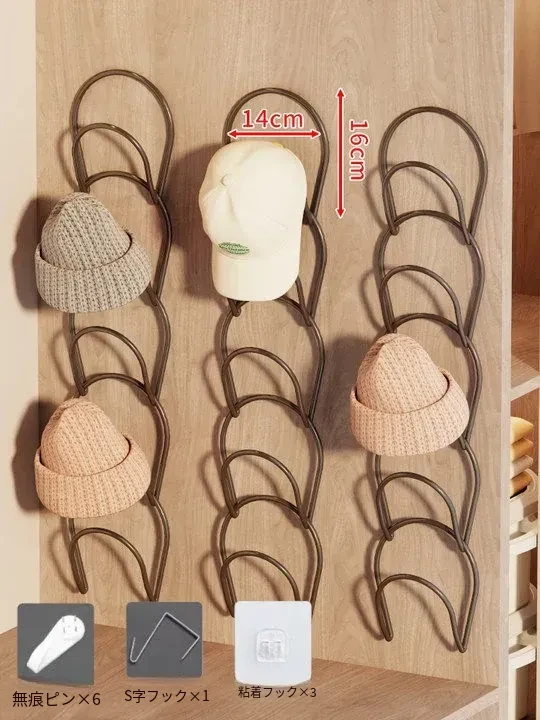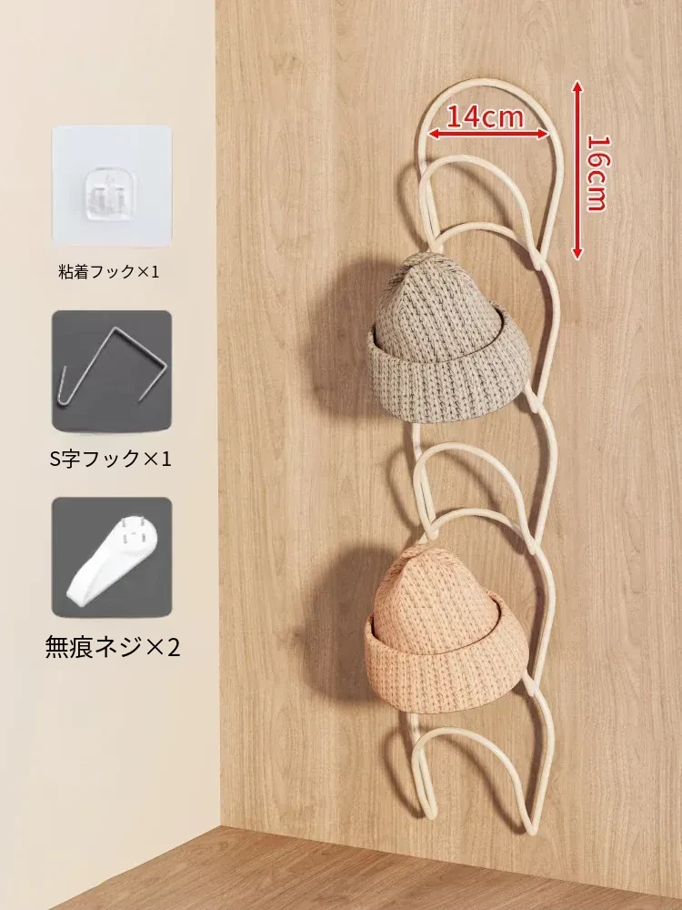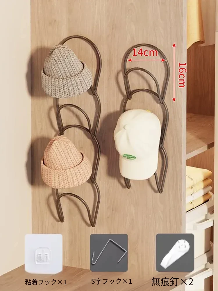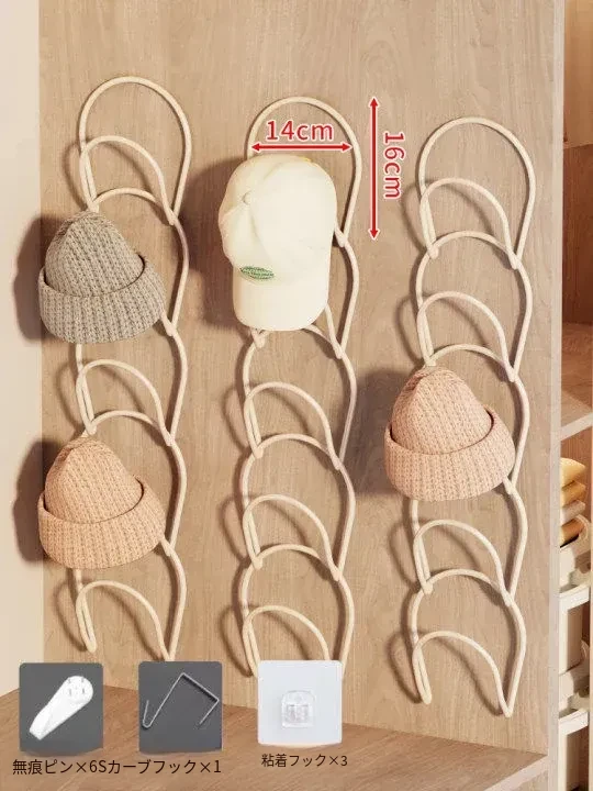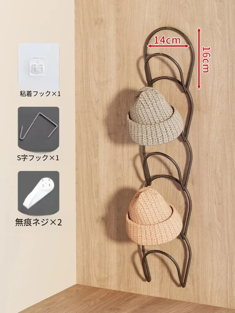 帽子収納の神アイテム!家庭用クローゼット扉裏に取り付けできるフック、ベレー帽やキャップ、スカーフをしっかり保持し、型崩れなし!スタイリッシュで便利な玄関収納を実現!