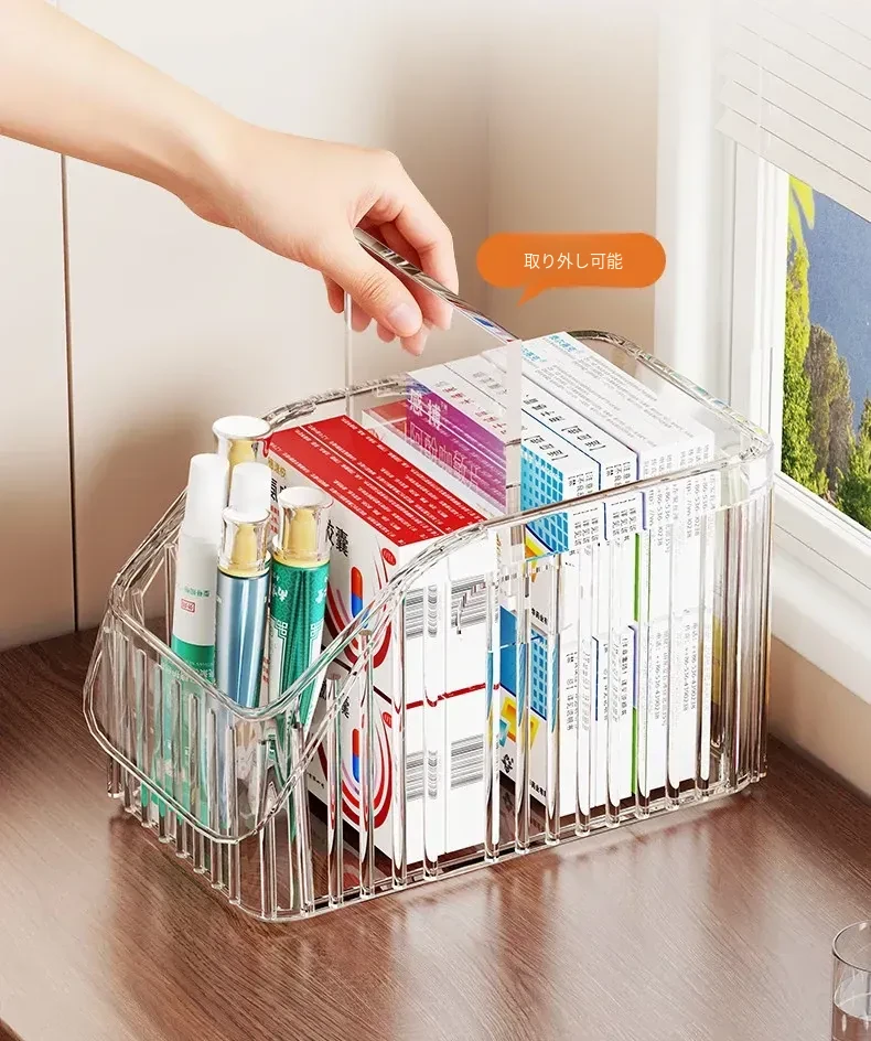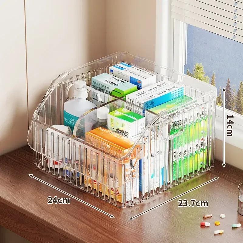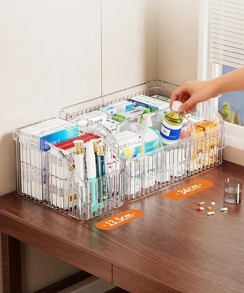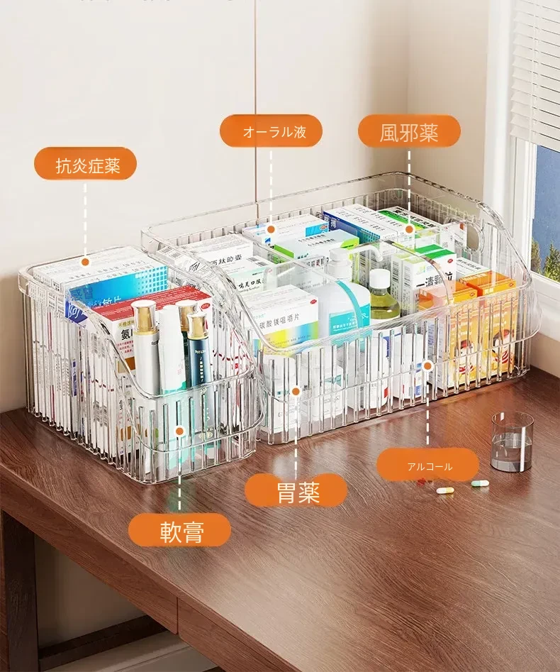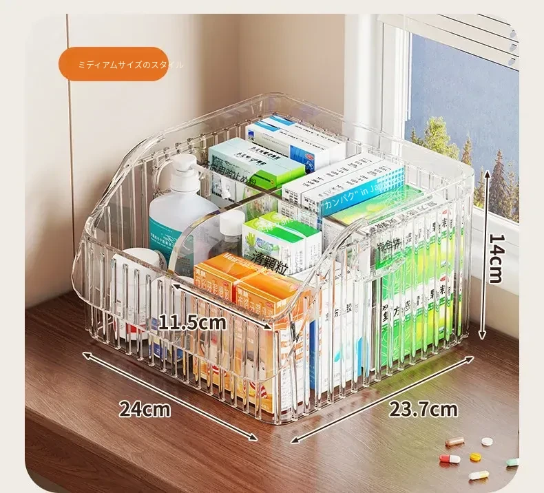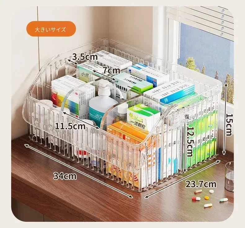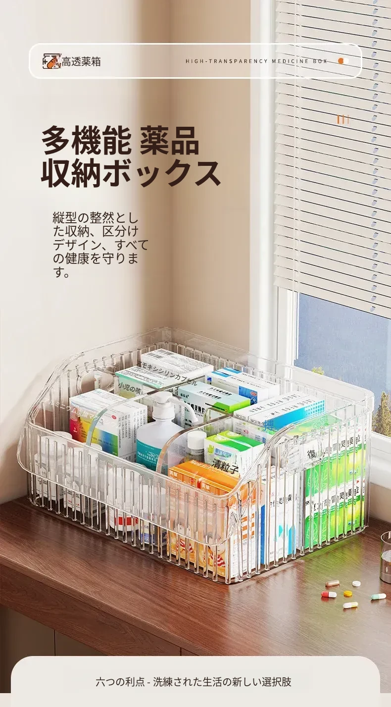 家庭用医薬品収納ボックス|仕切り付きで使いやすい!大容量透明デザインの救急薬箱|健康管理に最適な薬物収納ラック!