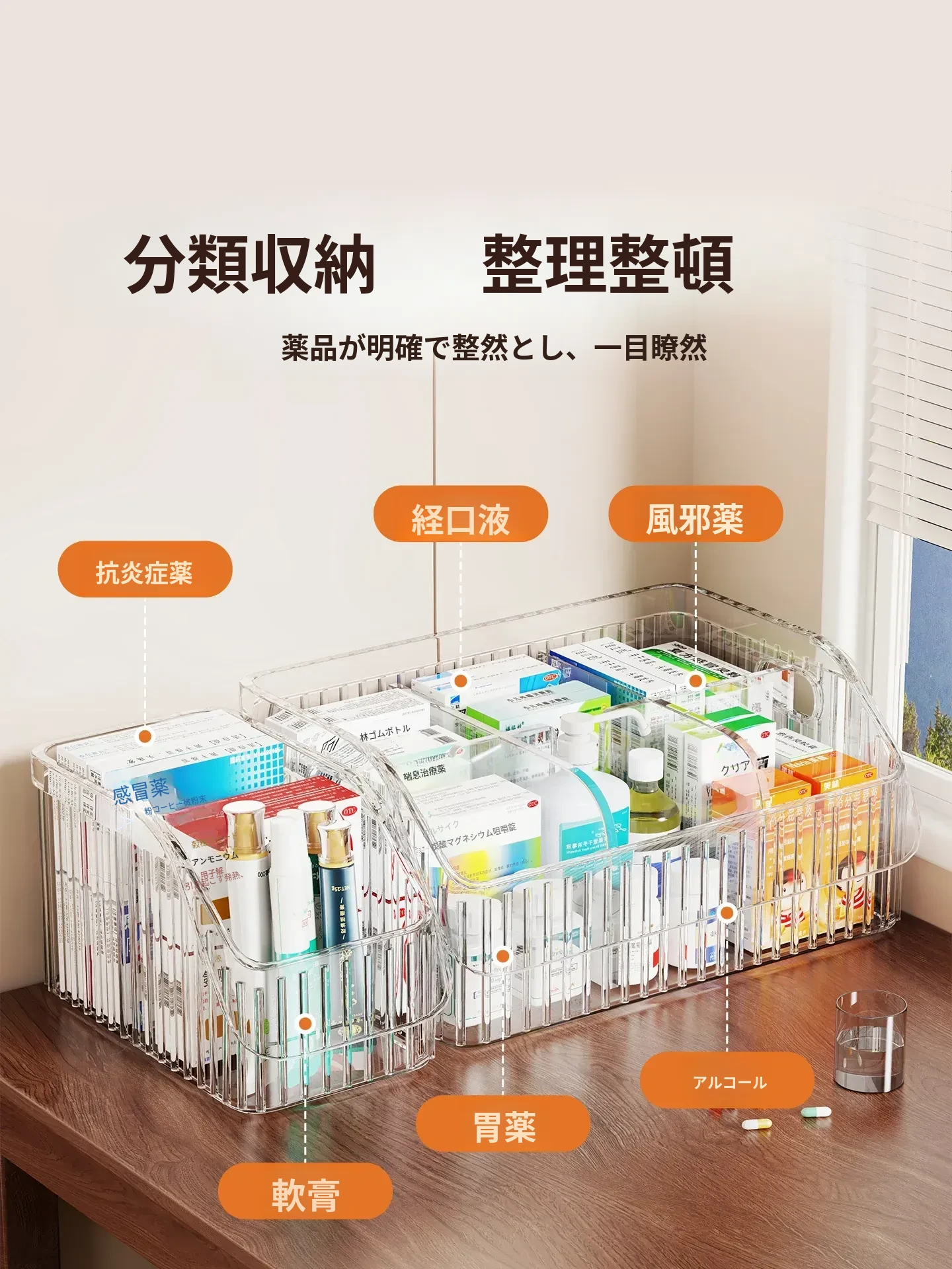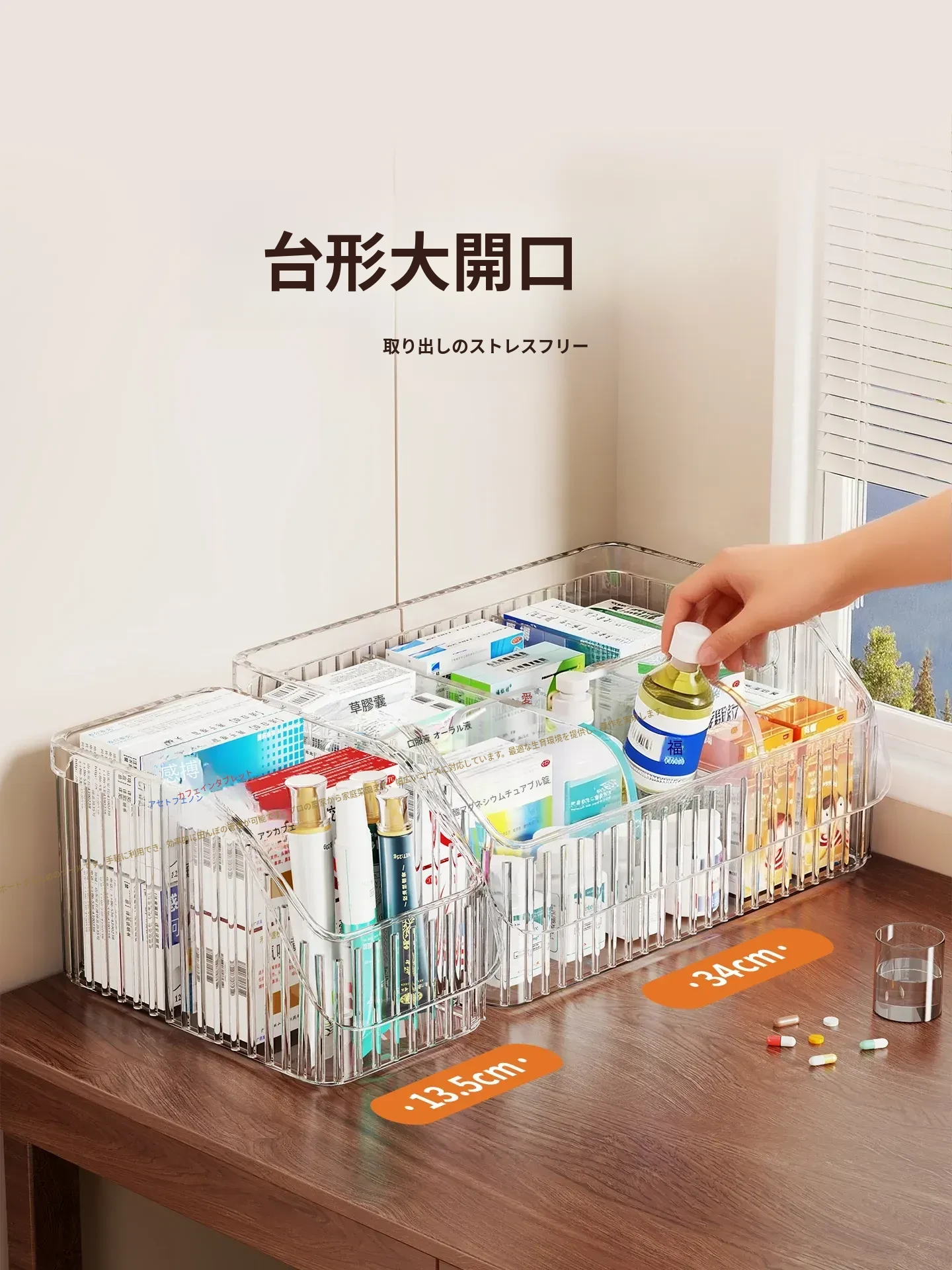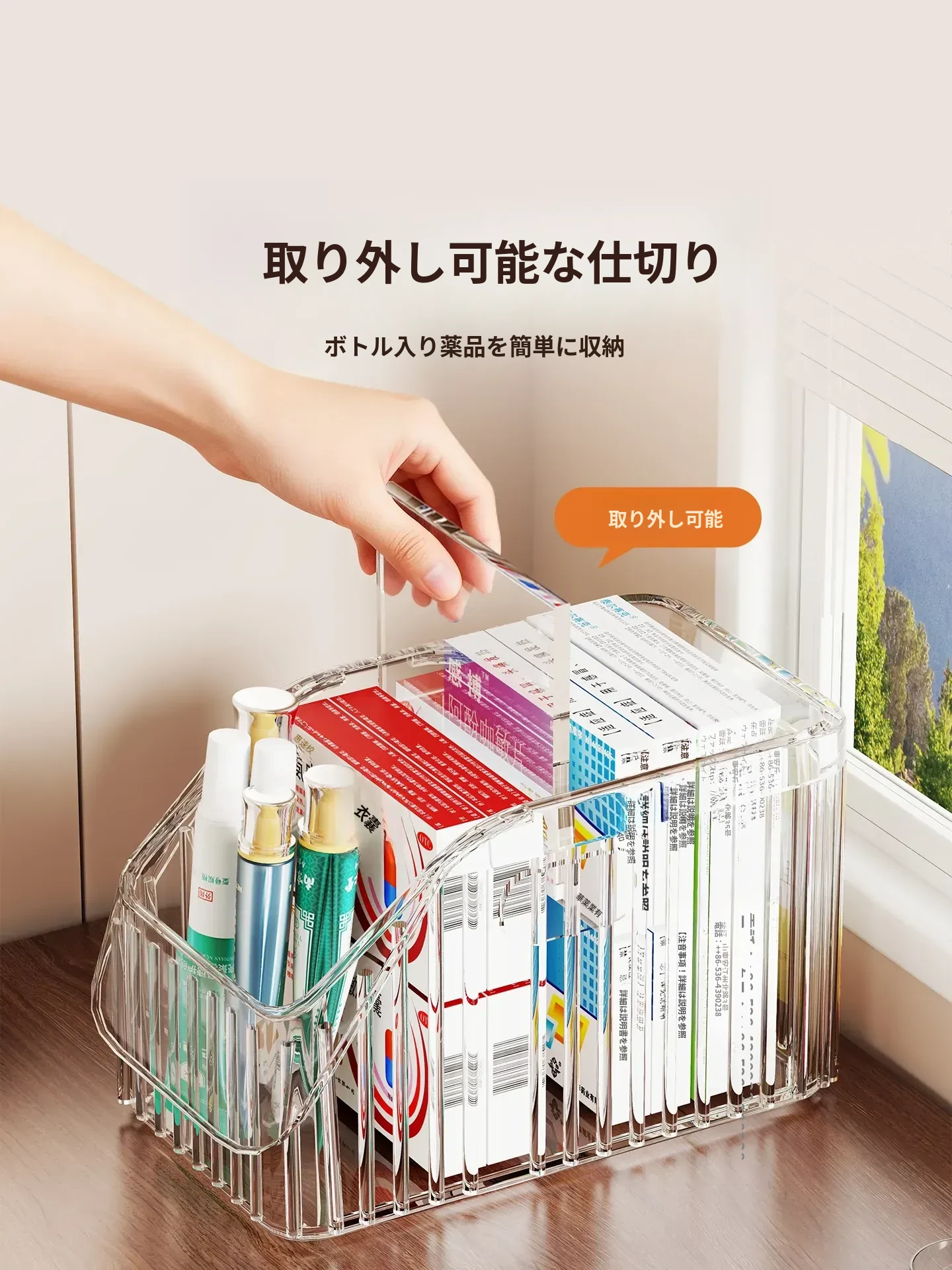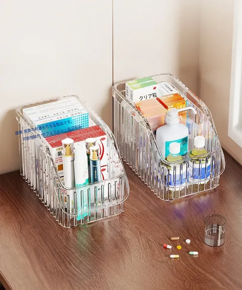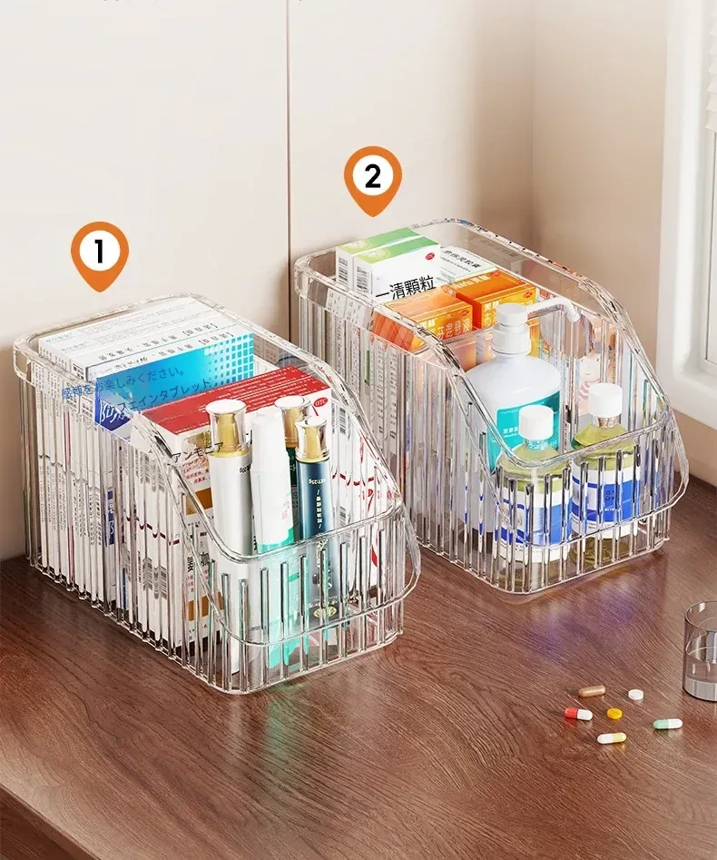 家庭用医薬品収納ボックス|仕切り付きで使いやすい!大容量透明デザインの救急薬箱|健康管理に最適な薬物収納ラック!
