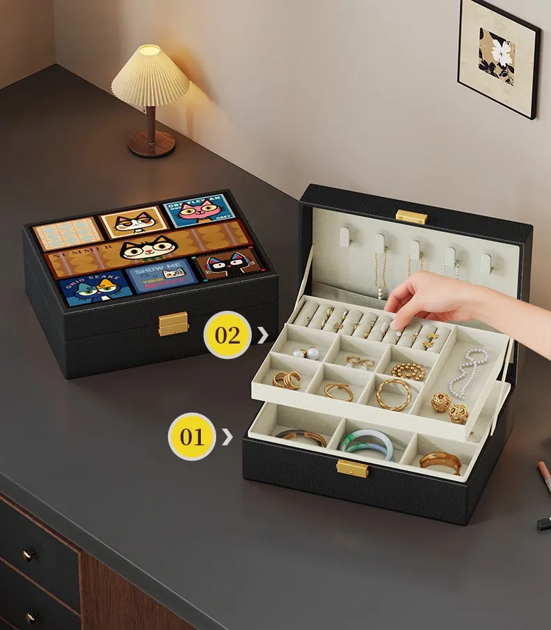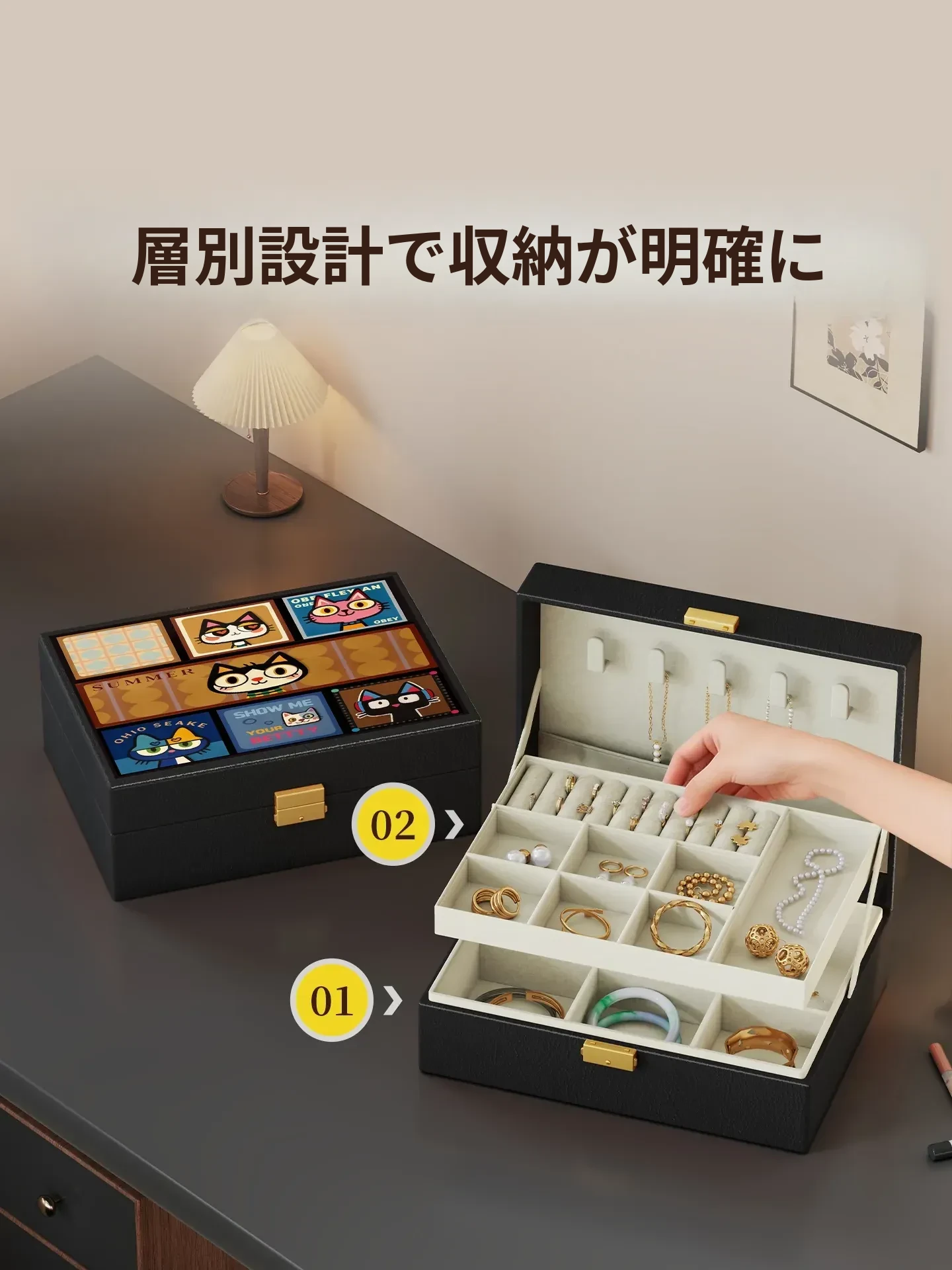 高級感あふれる大容量ジュエリーボックス - 指輪、ブレスレット、ネックレス、ピアス専用!防酸化設計で大切な宝石を守ります。洗練されたデザインでお部屋のインテリアにもぴったり!