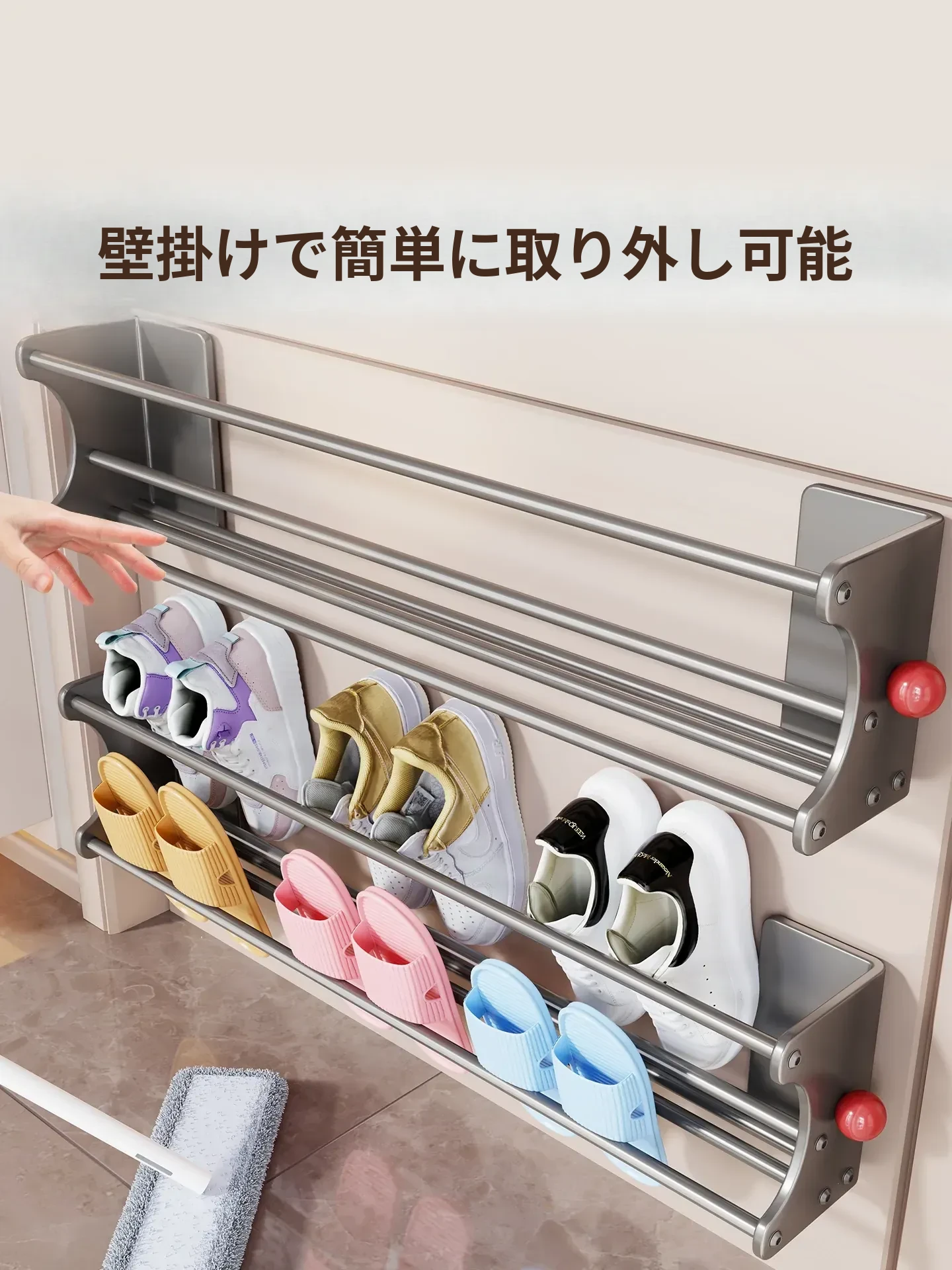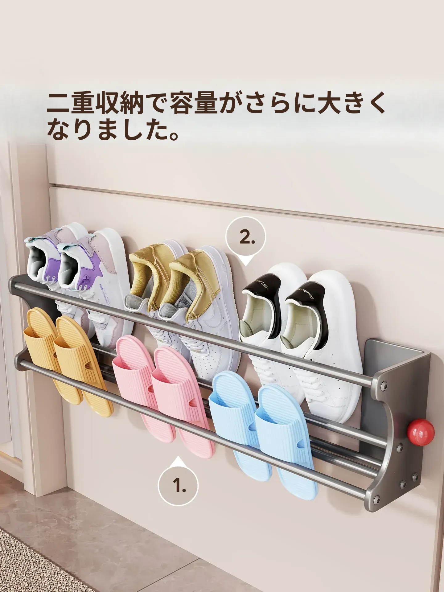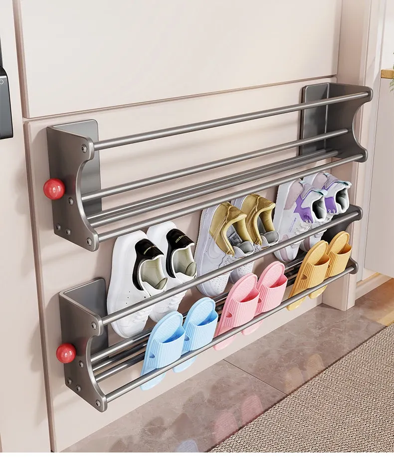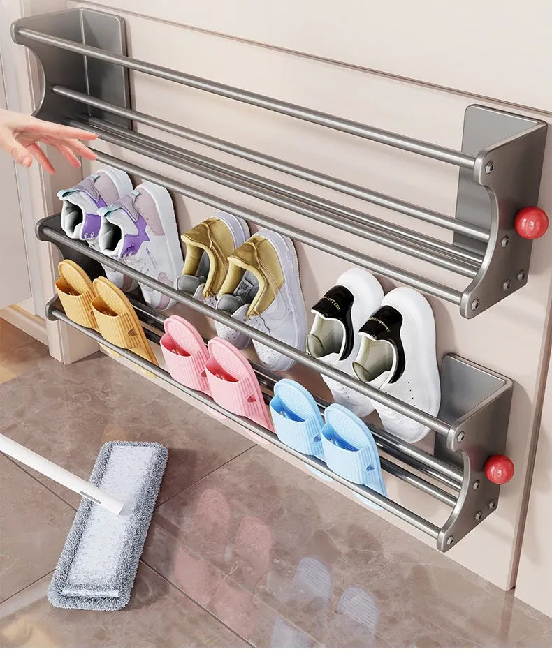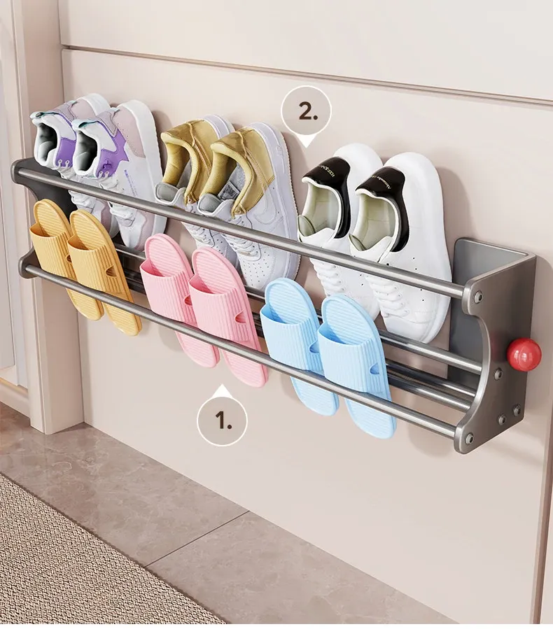 マグネット吸着シューズラック - 多機能収納、玄関やトイレに最適な壁掛け二段シューズスタンド!スペースを有効活用し、おしゃれに靴を整理整頓。