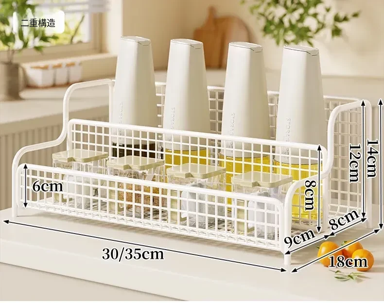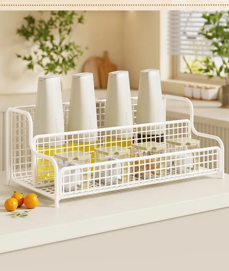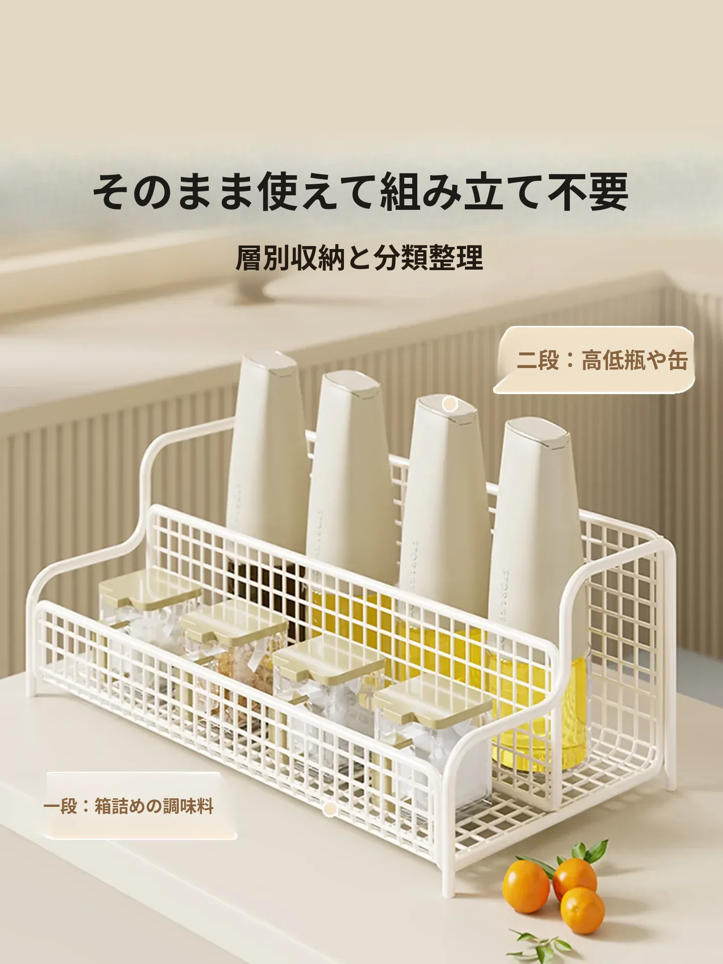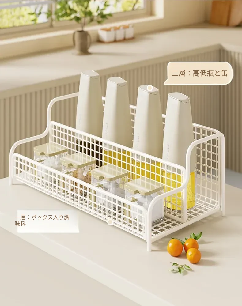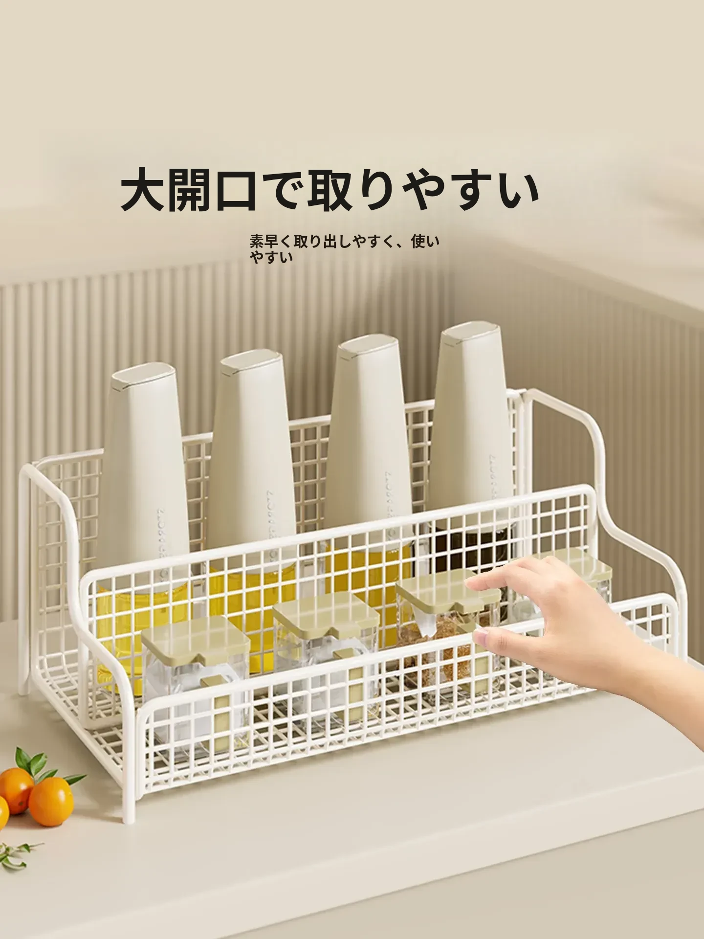 多機能キッチン収納ラック!小型カウンター用オイル・塩・醤油・酢・調味料を整理整頓できるスリムなコーナー調味料スタンド。狭いスペースでも効率的に収納!