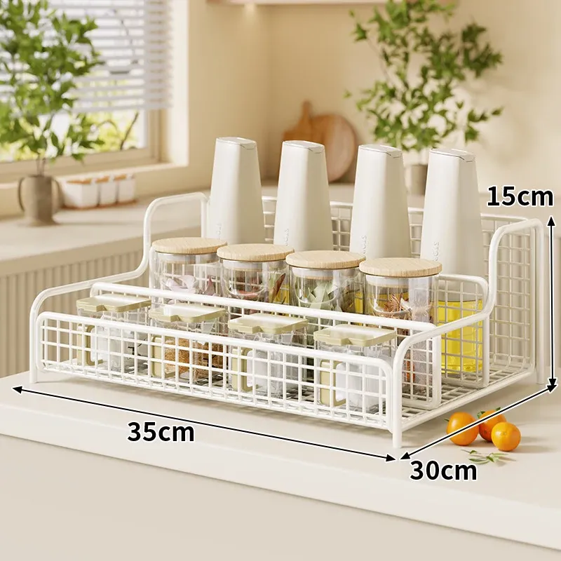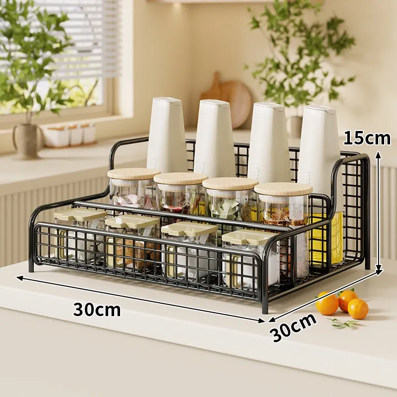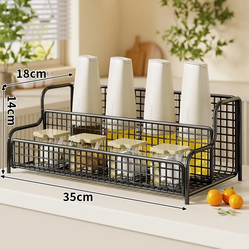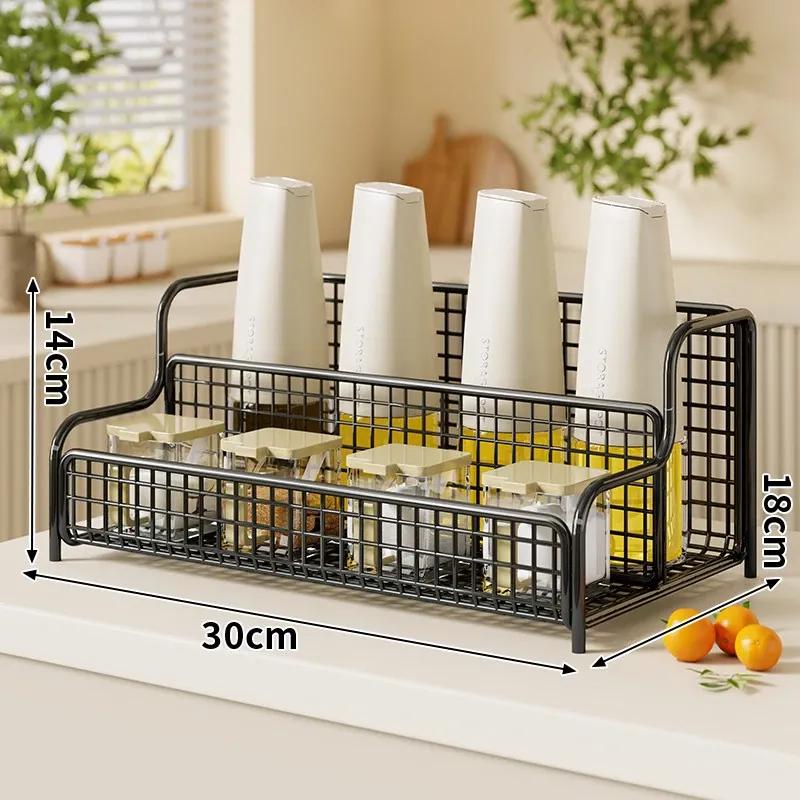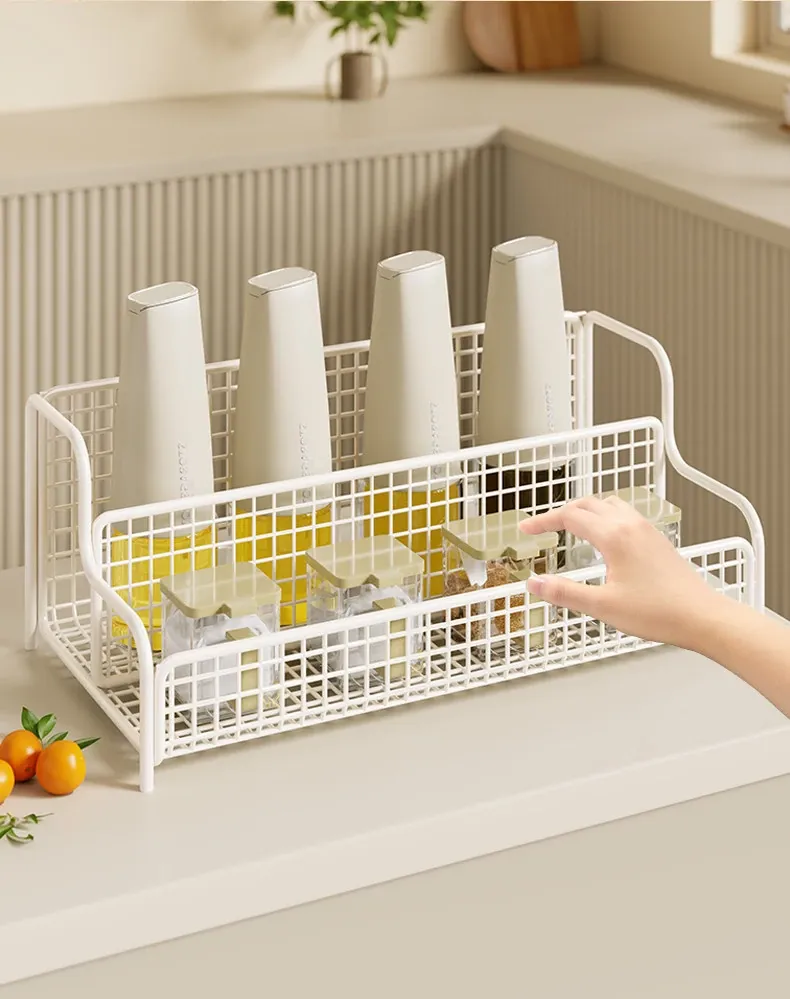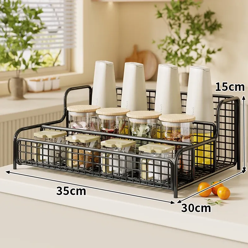 多機能キッチン収納ラック!小型カウンター用オイル・塩・醤油・酢・調味料を整理整頓できるスリムなコーナー調味料スタンド。狭いスペースでも効率的に収納!