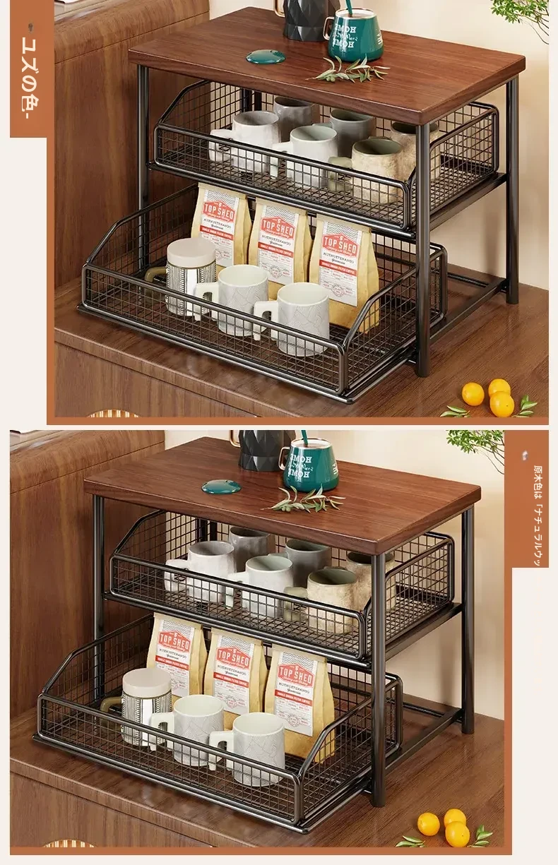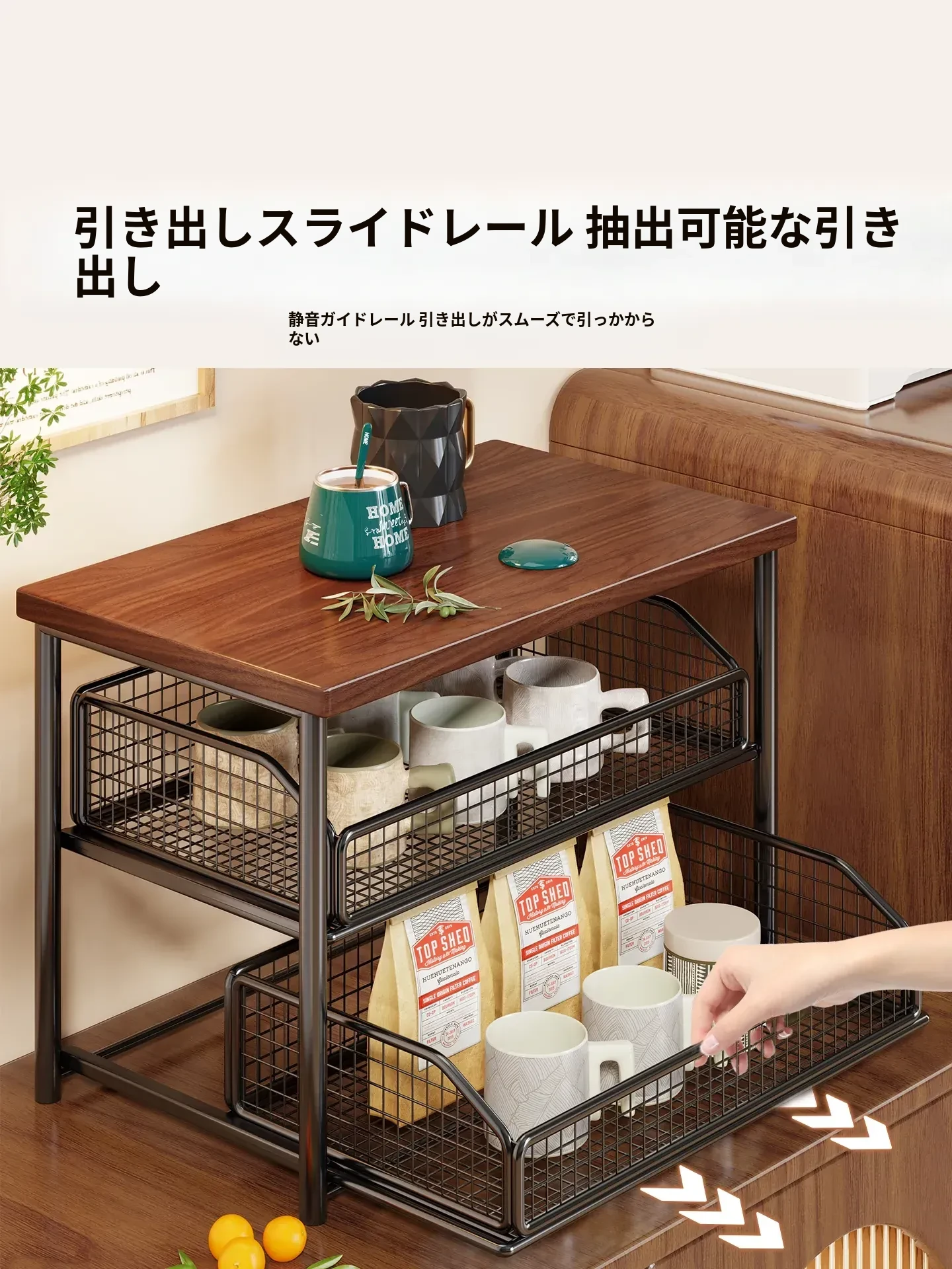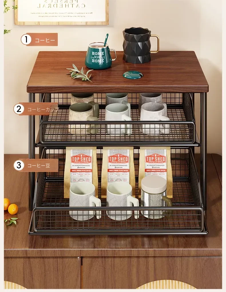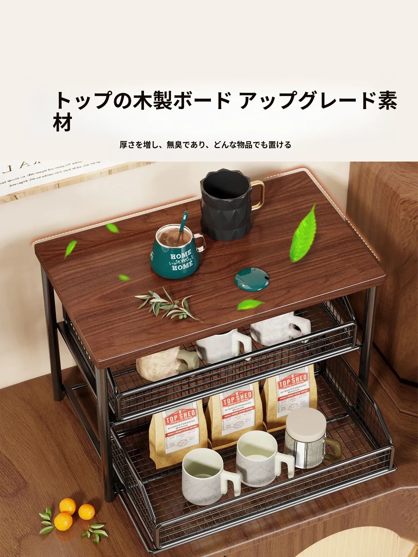 キッチン調味料ラック 多機能コーヒーメーカー引き出し整理棚 テーブル上の収納ラック 階層型デザインでスペースを有効活用!おしゃれで実用的なアイテムで、効率的なキッチンを実現します。