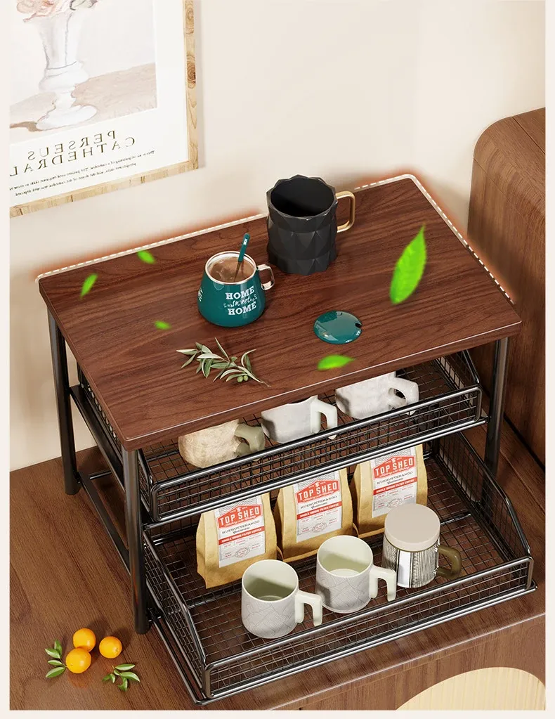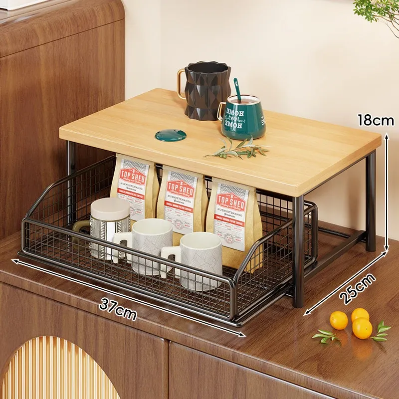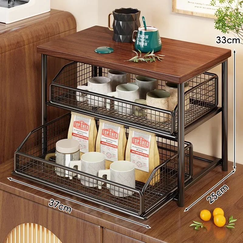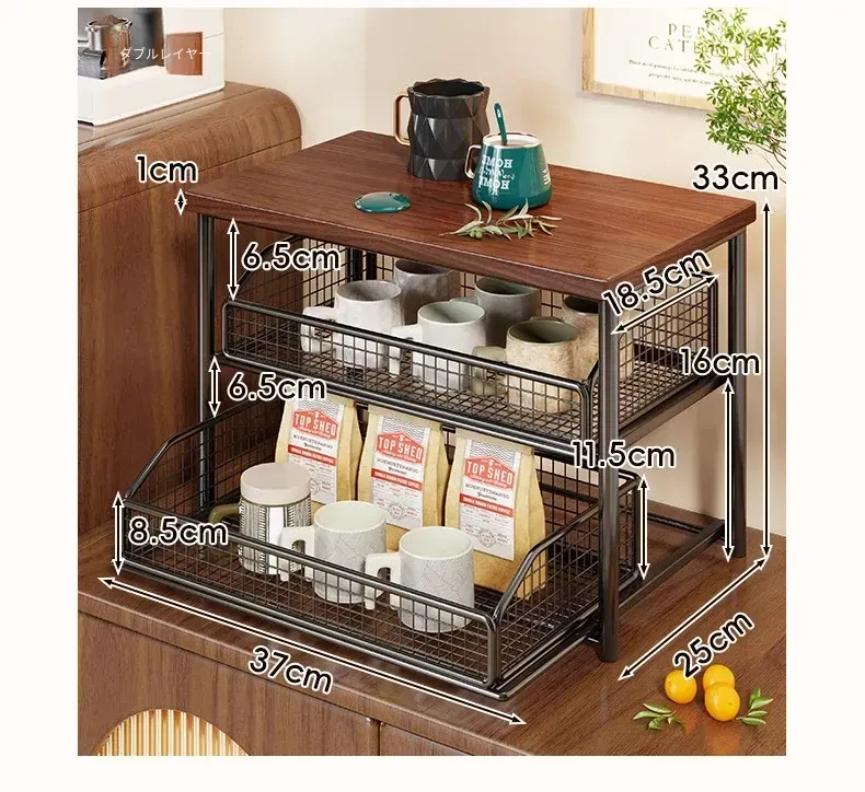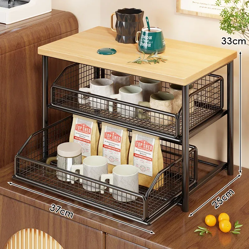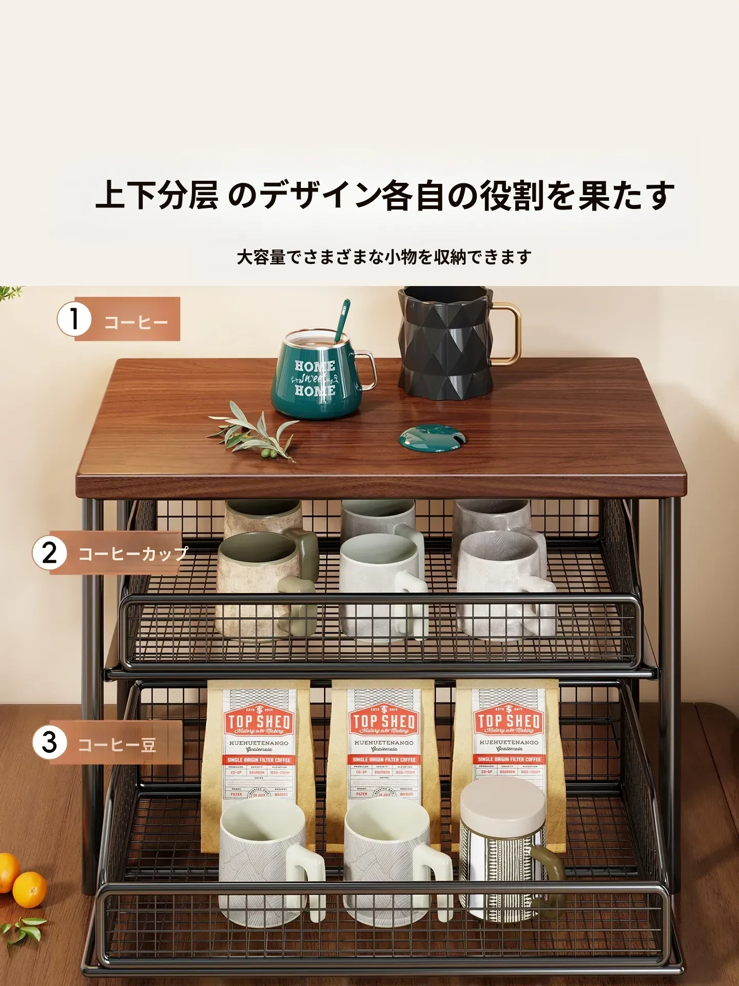 キッチン調味料ラック 多機能コーヒーメーカー引き出し整理棚 テーブル上の収納ラック 階層型デザインでスペースを有効活用!おしゃれで実用的なアイテムで、効率的なキッチンを実現します。
