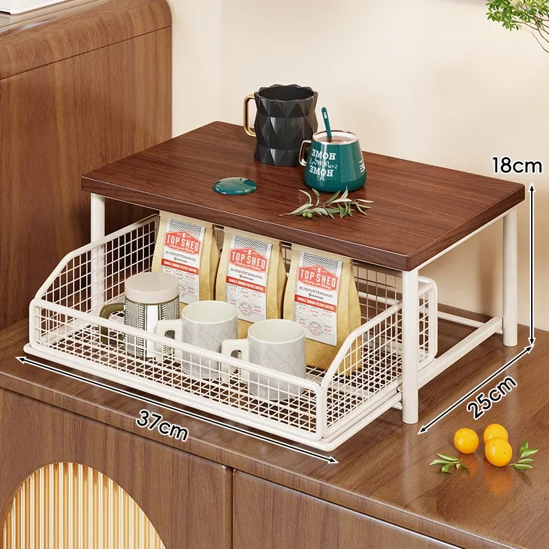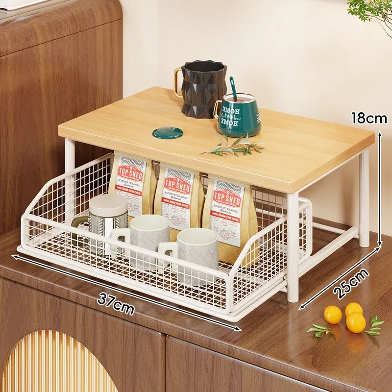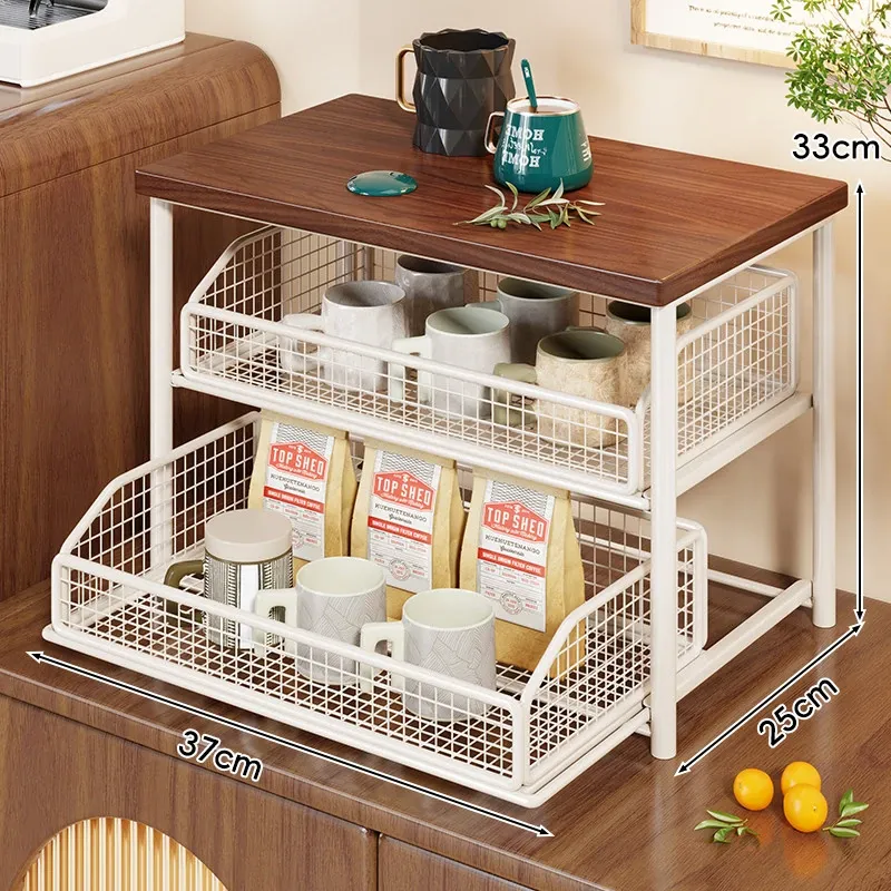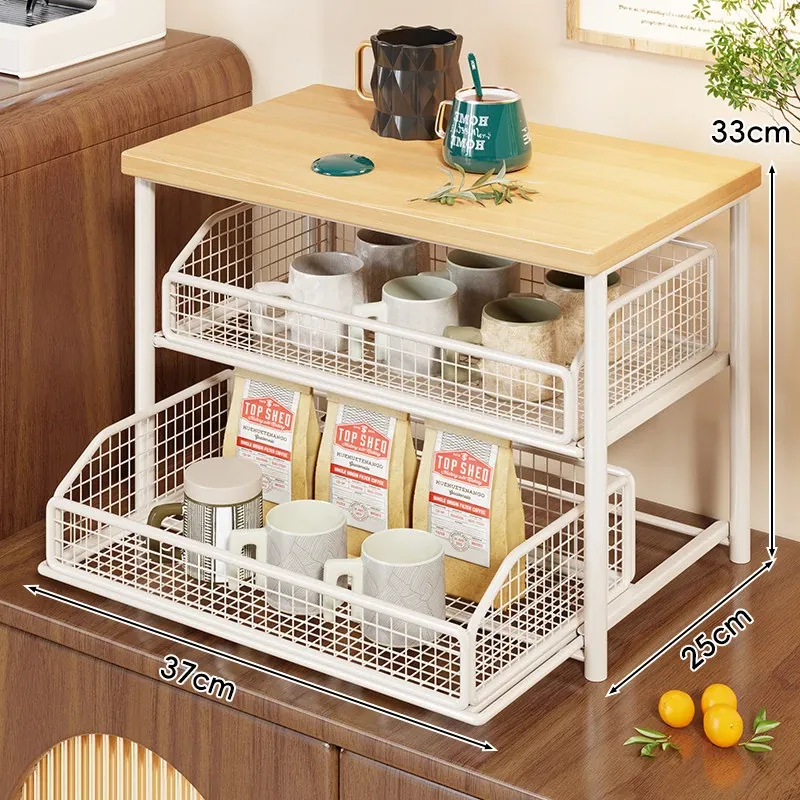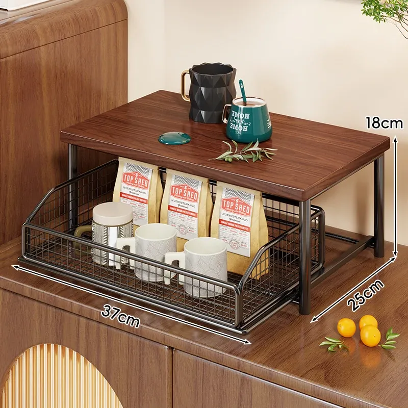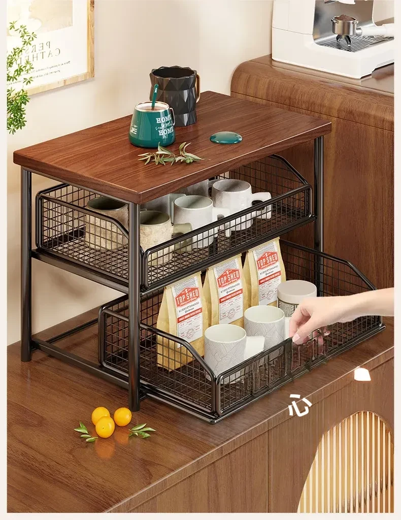 キッチン調味料ラック 多機能コーヒーメーカー引き出し整理棚 テーブル上の収納ラック 階層型デザインでスペースを有効活用!おしゃれで実用的なアイテムで、効率的なキッチンを実現します。