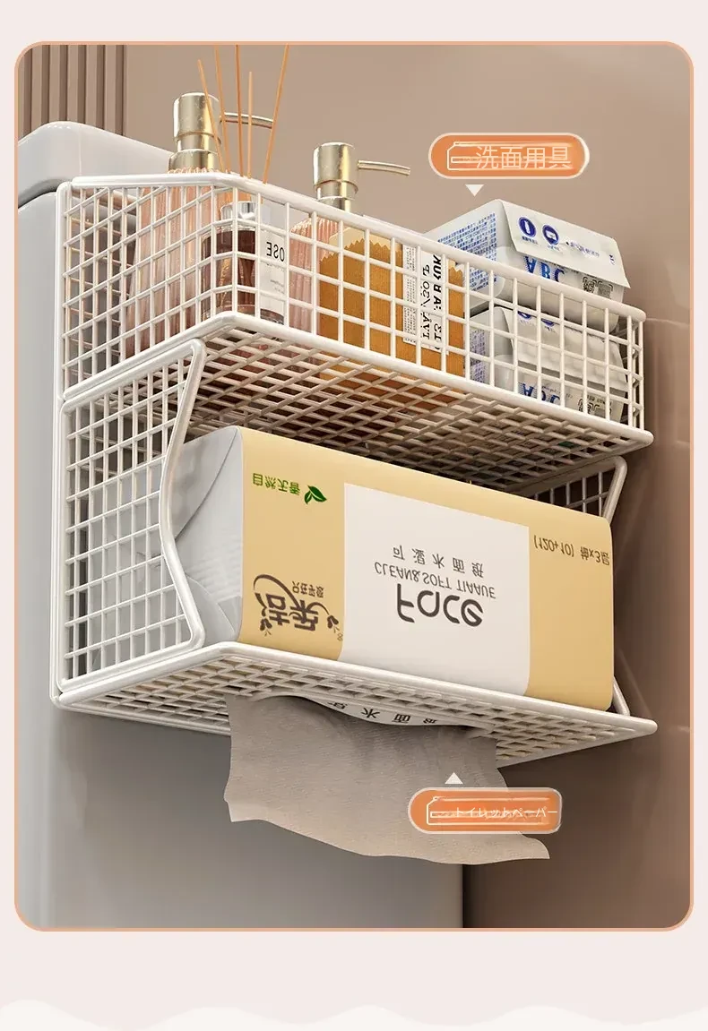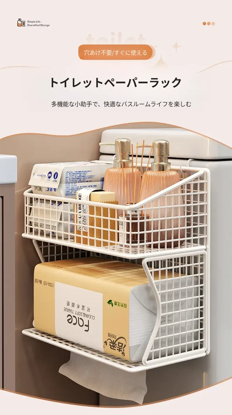 多機能壁掛け式トイレットペーパーボックス - ドリル不要で簡単取り付け!洗面所やバスルームにぴったりのスタイリッシュなデザインで、トイレットペーパーをすっきり収納。使いやすさとおしゃれを兼ね備えたアイテム!