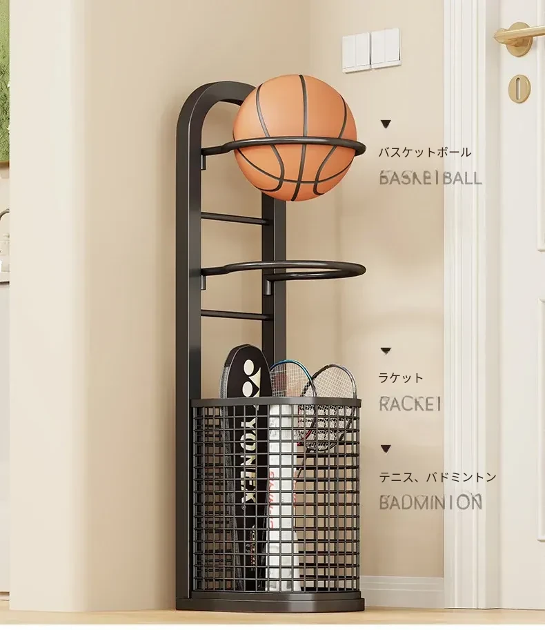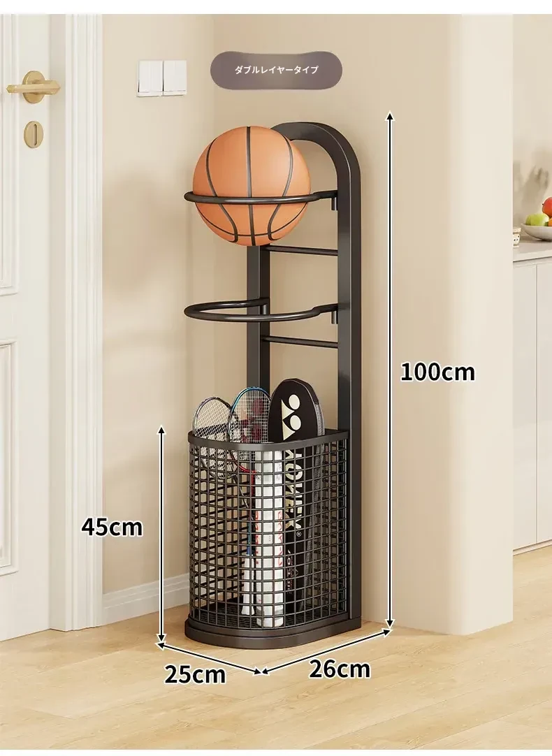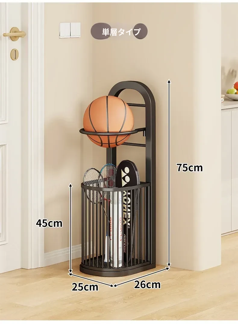バスケットボール収納ラック|家庭用多層大容量|室内簡易サッカー・バレーボール整理収納ボックス|スポーツ用品置き場に最適!お部屋をスッキリ整頓!