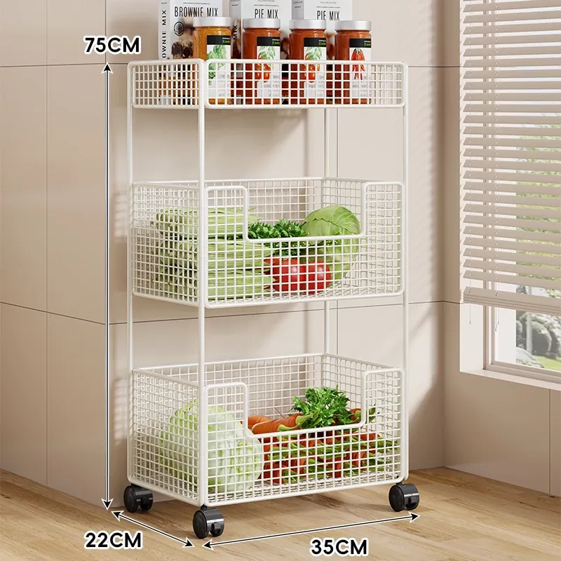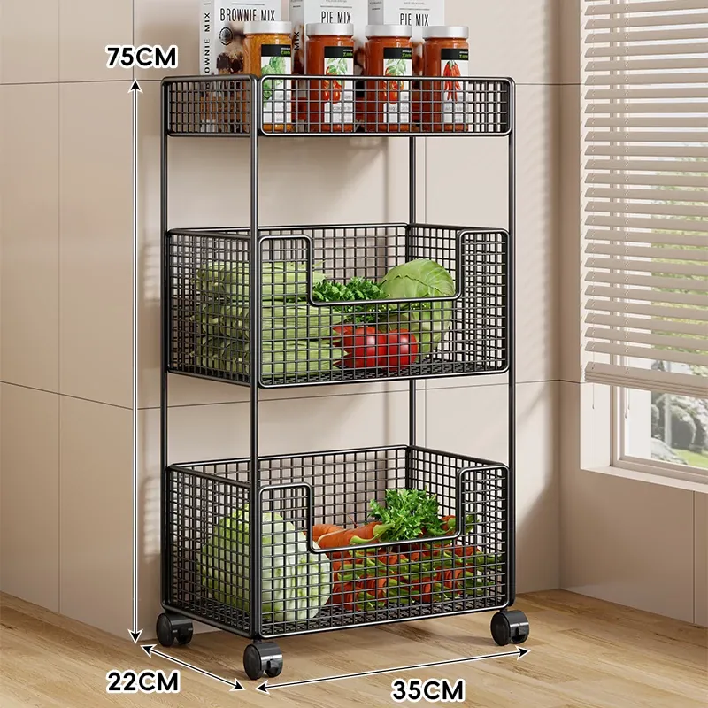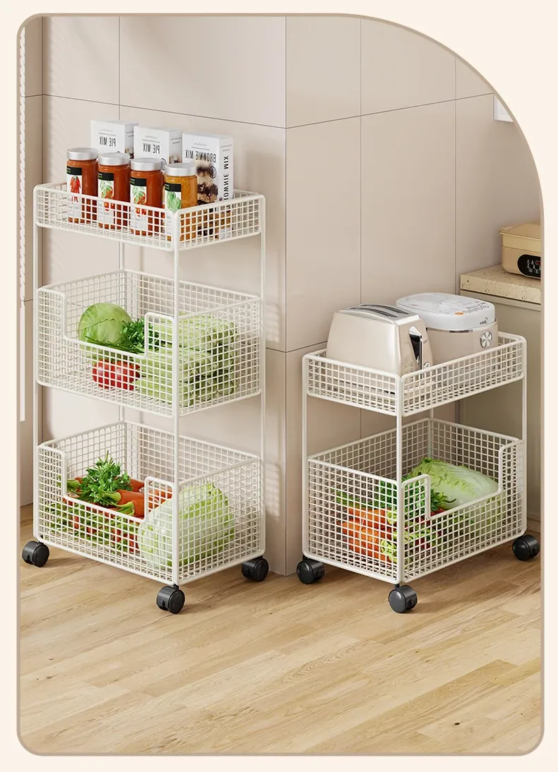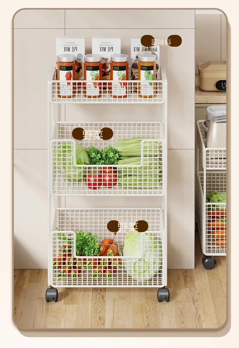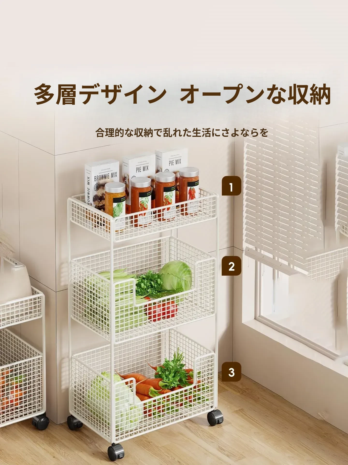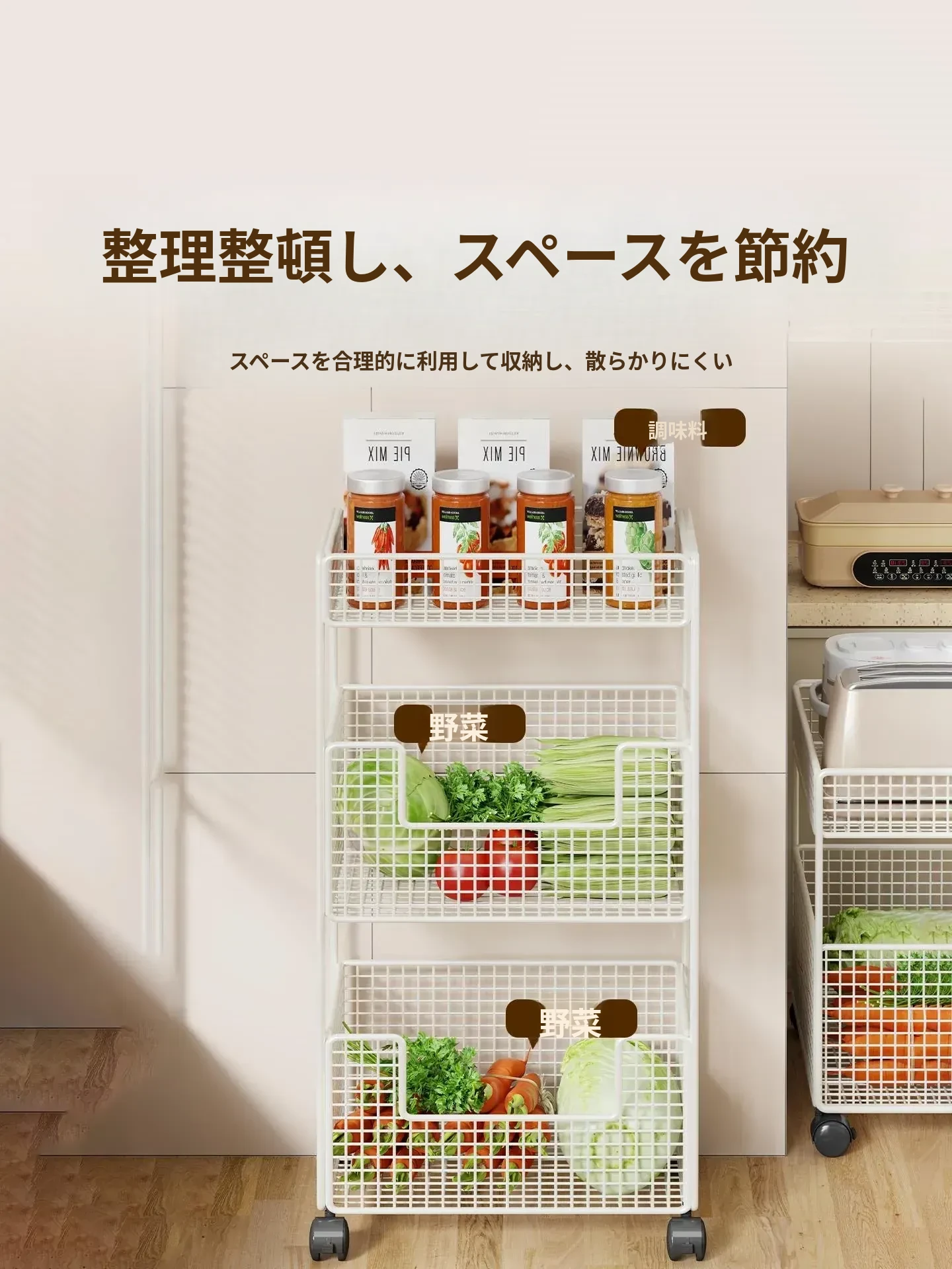 多機能キッチンラック - フルーツや野菜の収納に最適な多層型フロアスタンド!家庭用の便利なカートで、キッチンをスッキリ整理整頓。おしゃれで実用的な収納アイテムです!