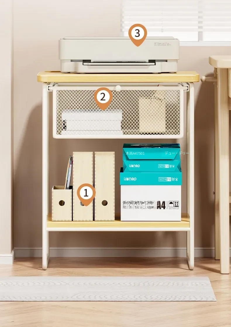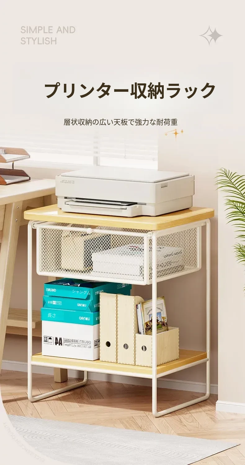 オフィス用プリンター棚 高さ調整可能な多段収納ラック コピー機やPC本体も安心設置できる便利な収納スペース!整理整頓をサポートするスタイリッシュなデザインです。