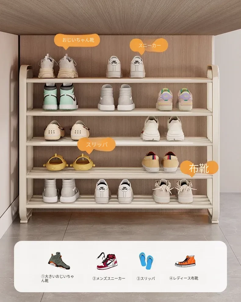 玄関用シューズラック - 多層収納で大容量!簡単組み立ての靴収納棚、ドア前にぴったりなスリッパスタンド。宿泊施設や家庭に最適な整理整頓を実現!