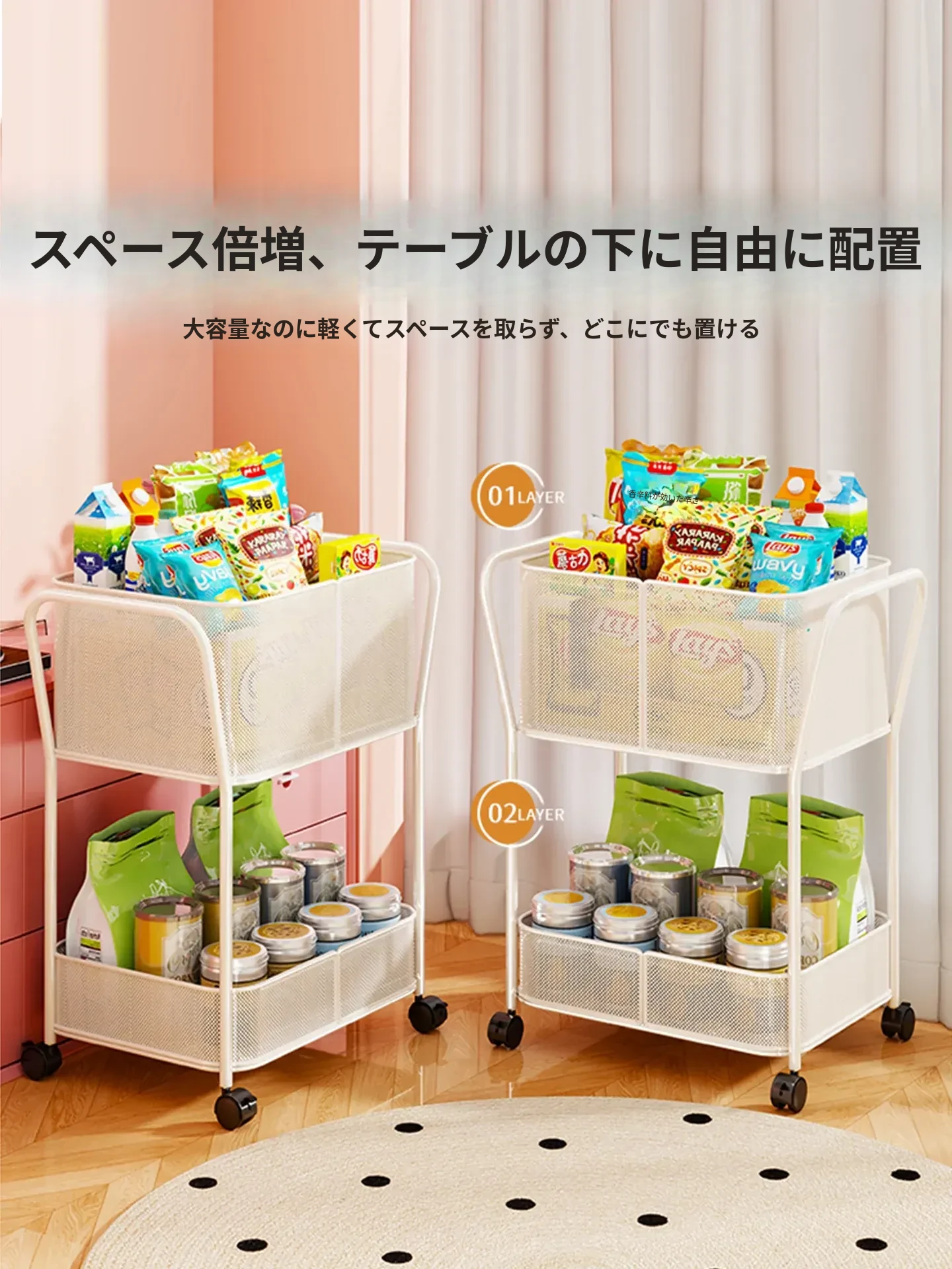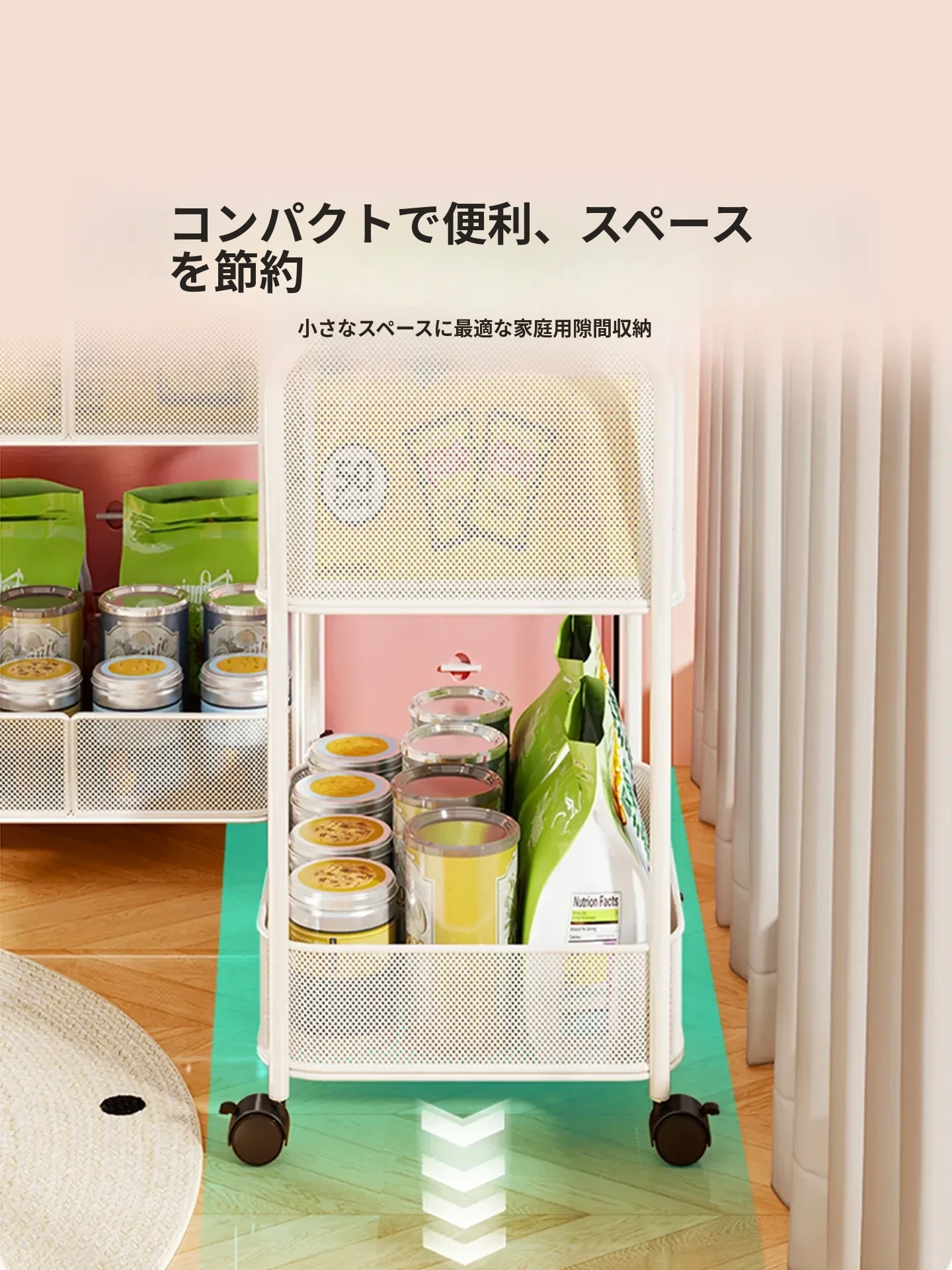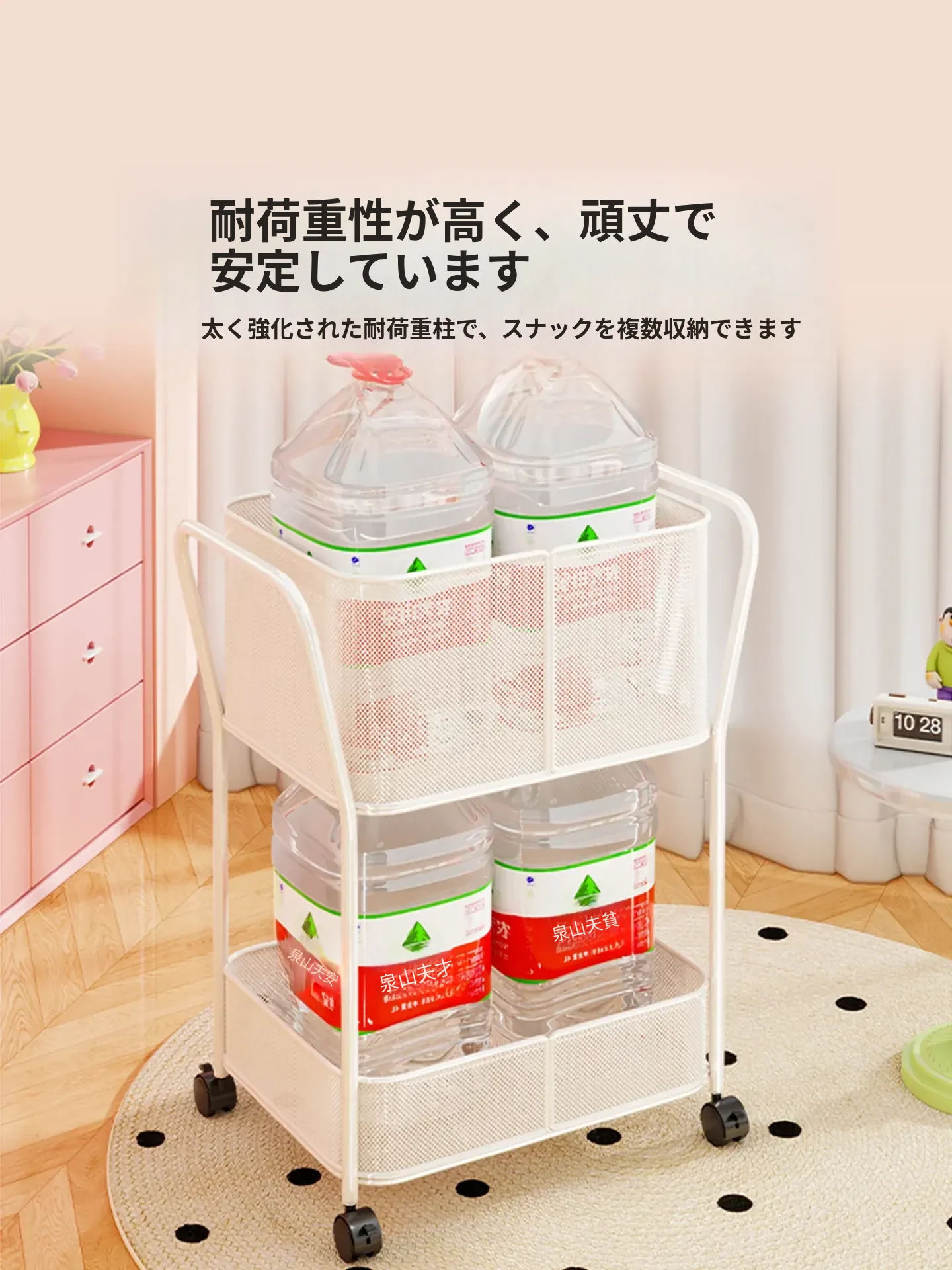 おしゃれな多層収納ラック!お菓子やおもちゃ、本の整理に最適な地面置き型の便利な収納キャリー。家中をスッキリさせる実用的なアイテムです!