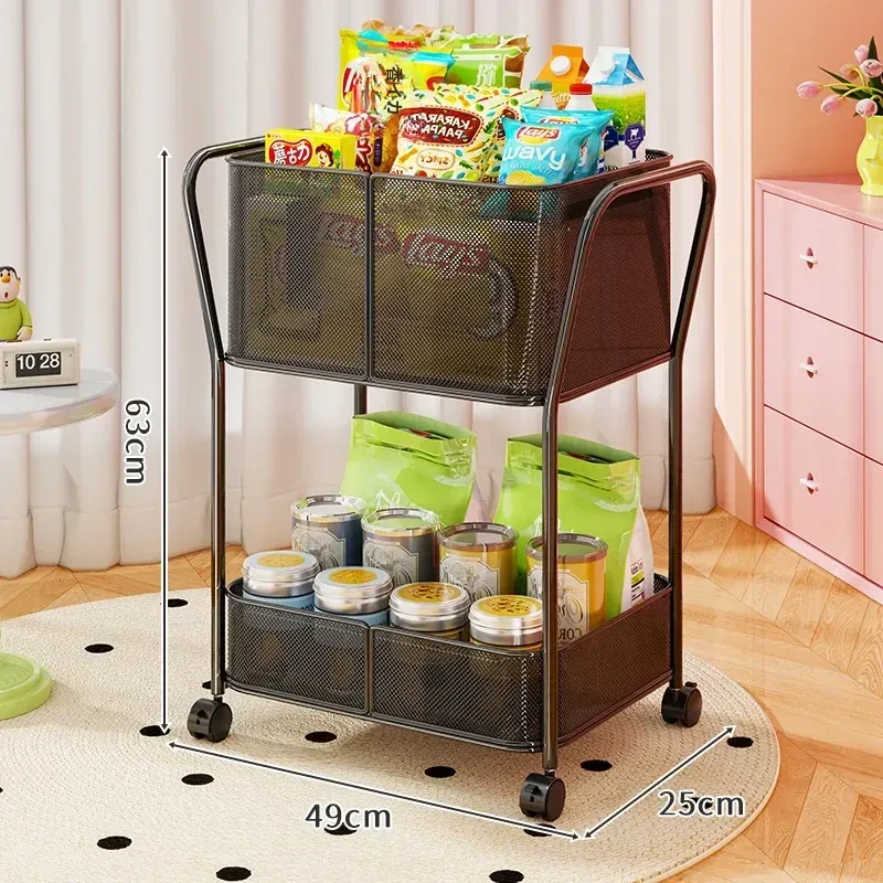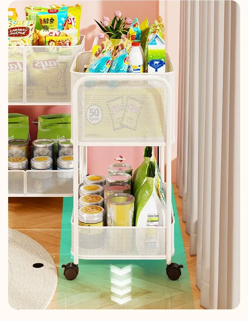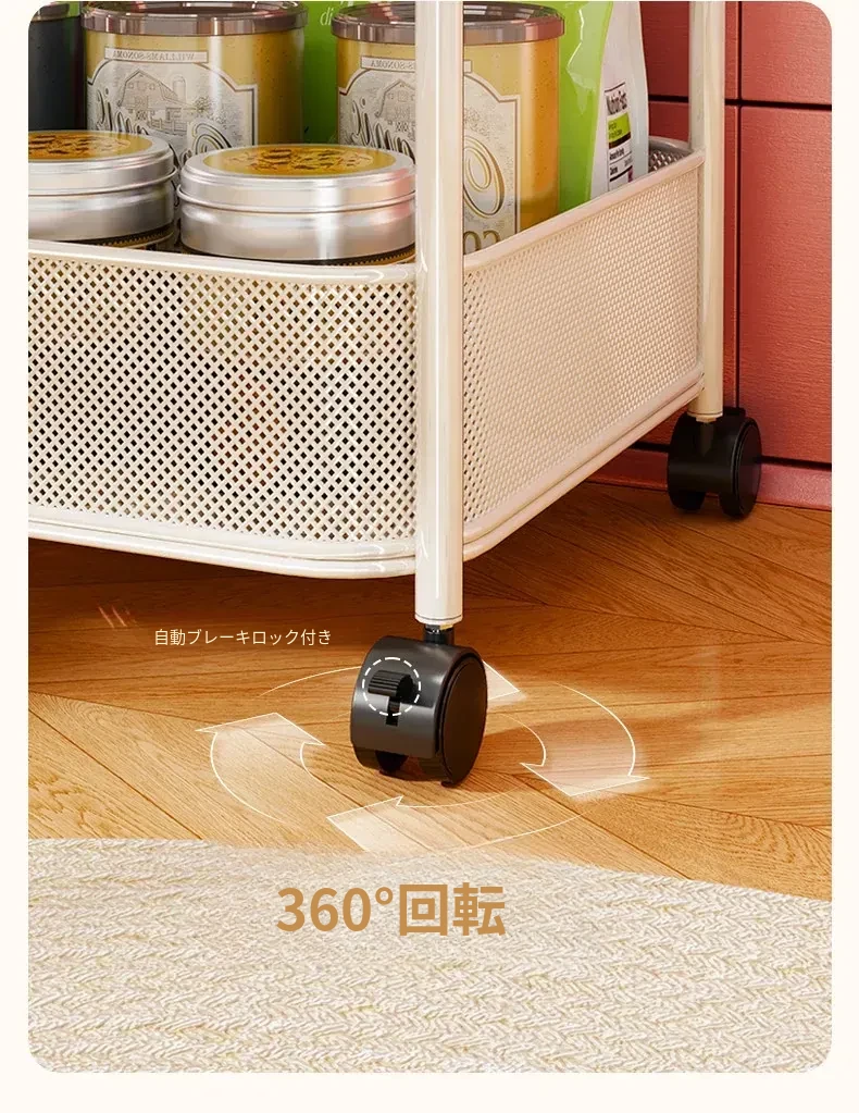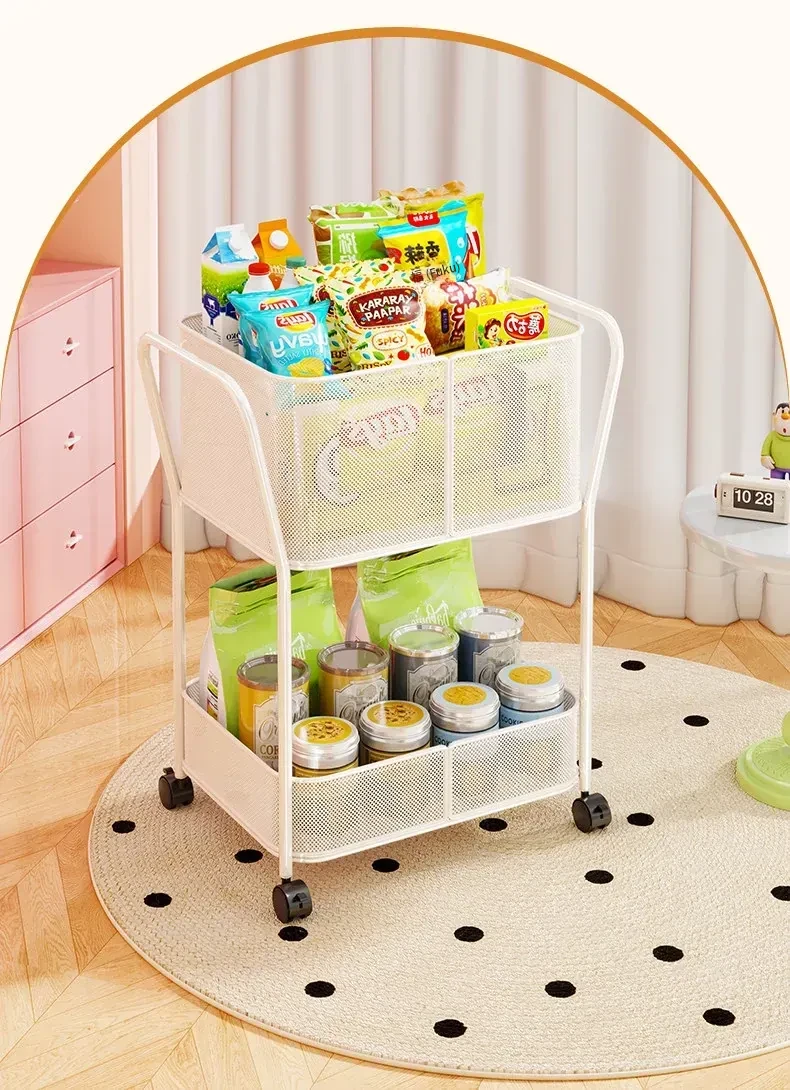 おしゃれな多層収納ラック!お菓子やおもちゃ、本の整理に最適な地面置き型の便利な収納キャリー。家中をスッキリさせる実用的なアイテムです!
