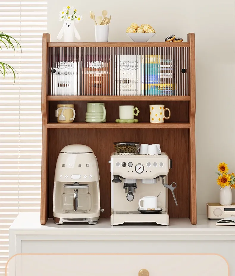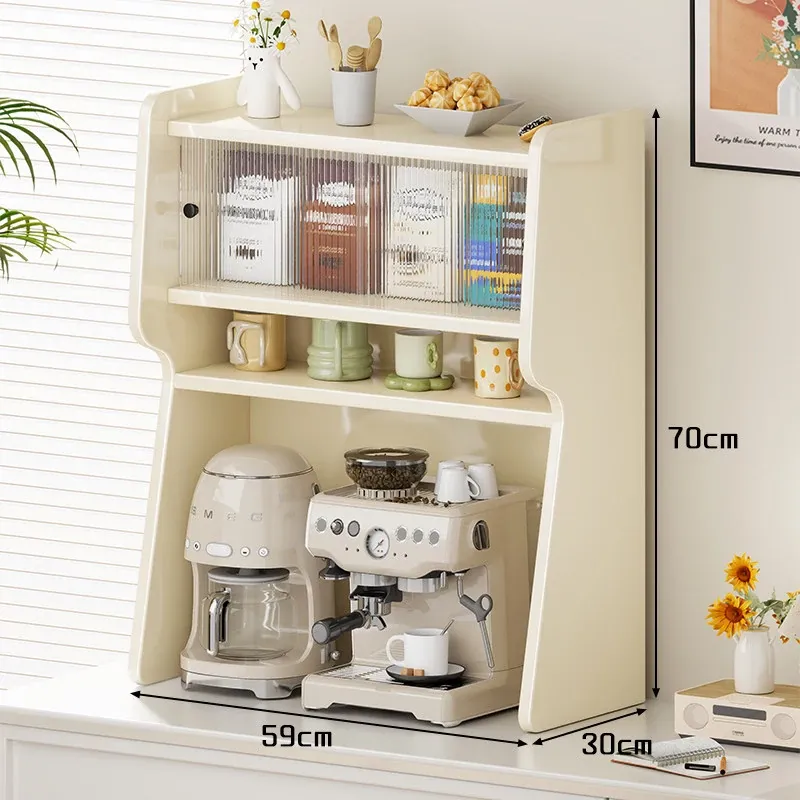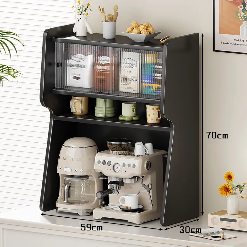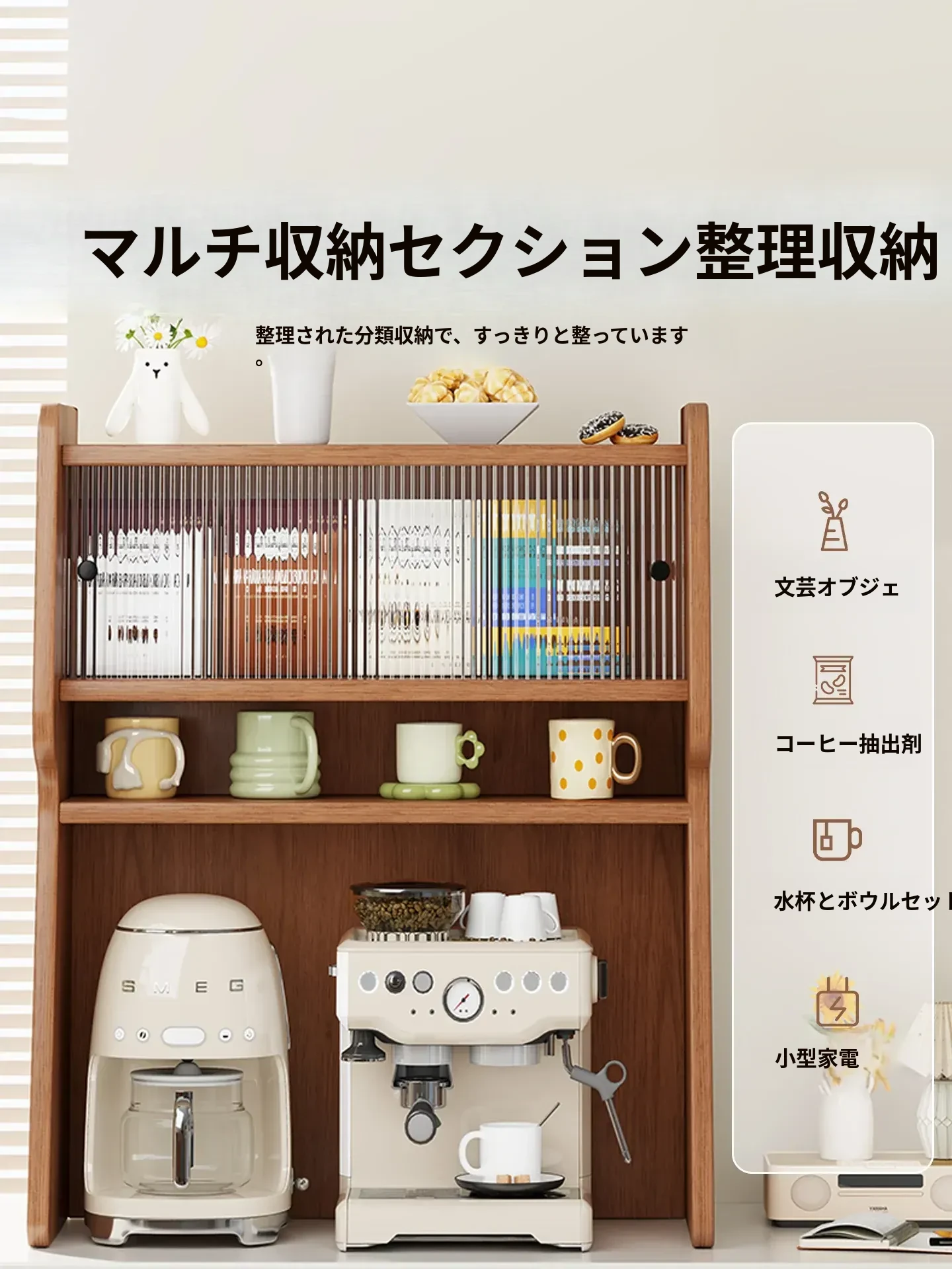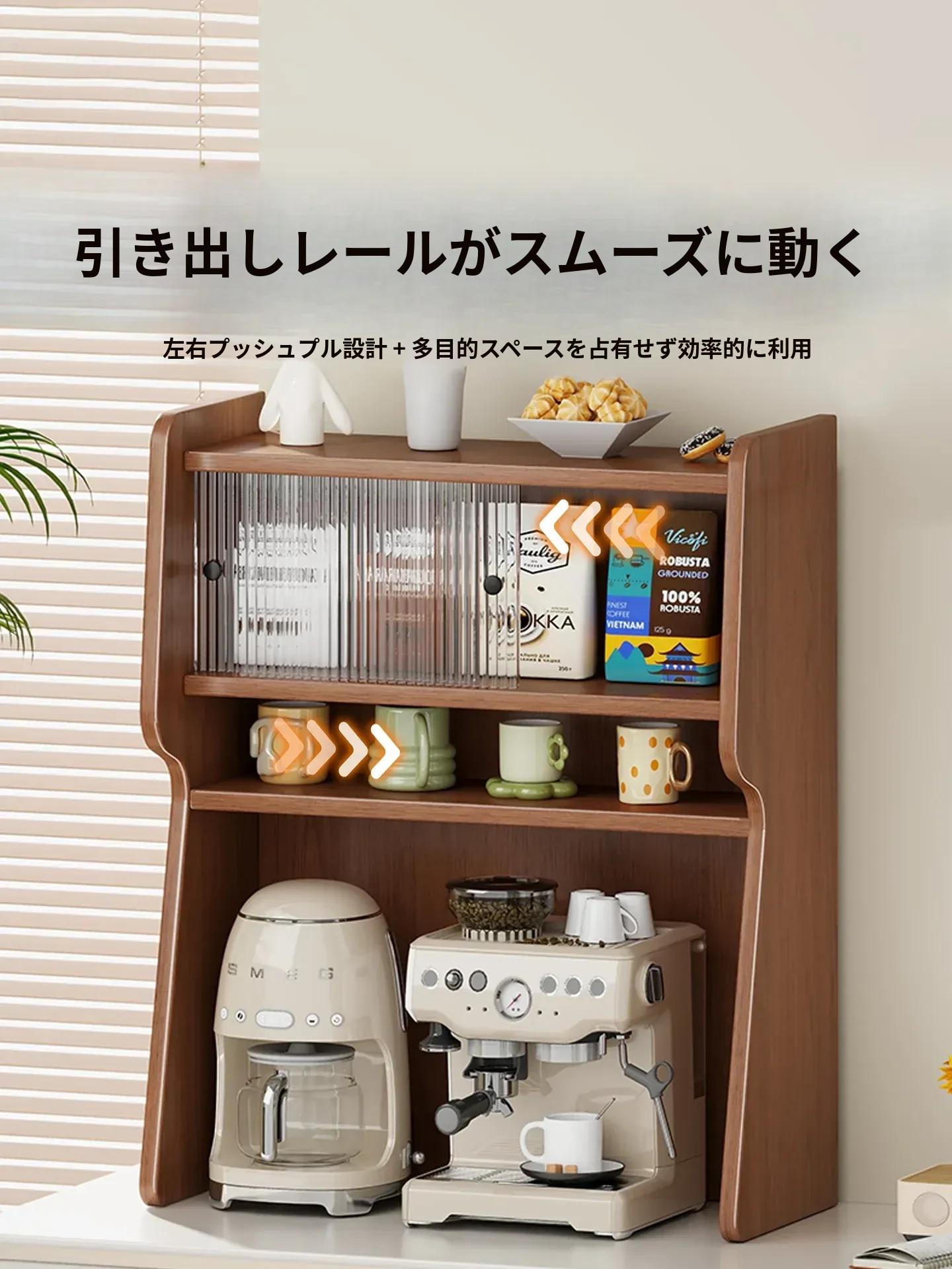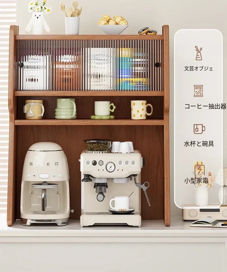 デスクトップコーヒーメーカー用収納ラック - おしゃれなダイニングテーブル用コーヒー器具スタンド、水杯ホルダー、マルチレイヤー収納キャビネットで、あなたのコーヒータイムをスタイリッシュに演出!