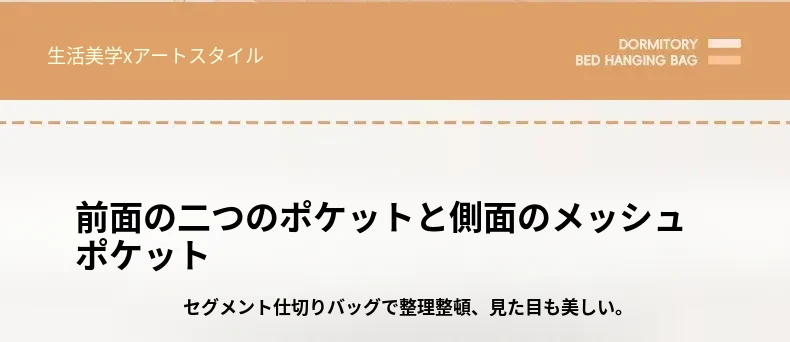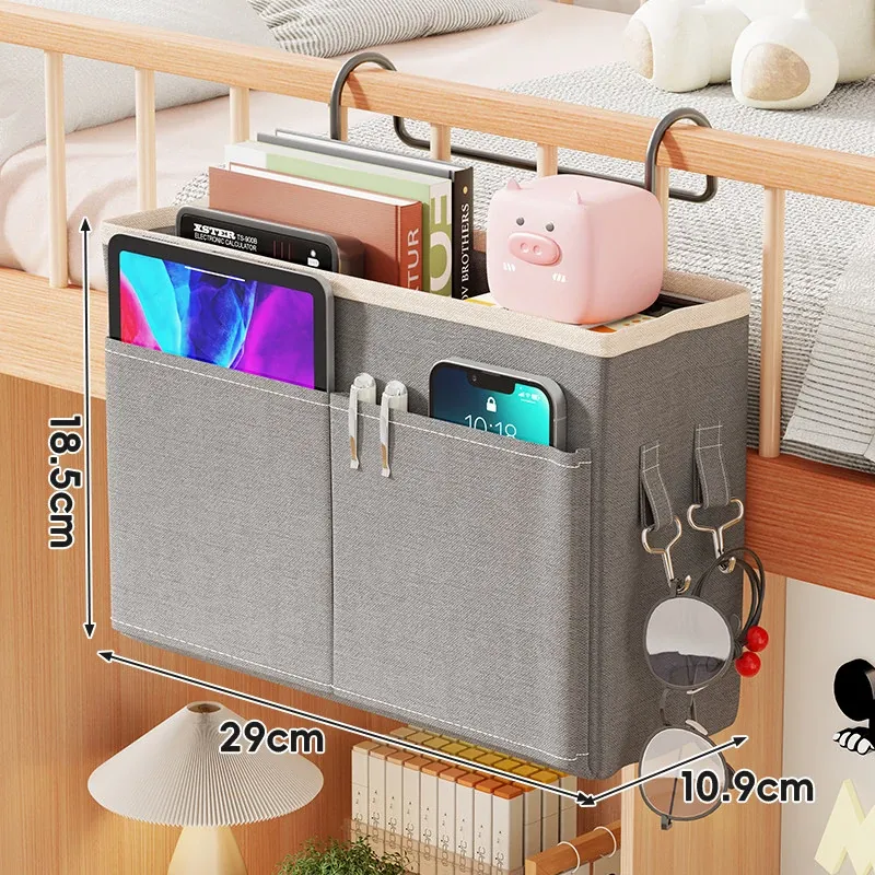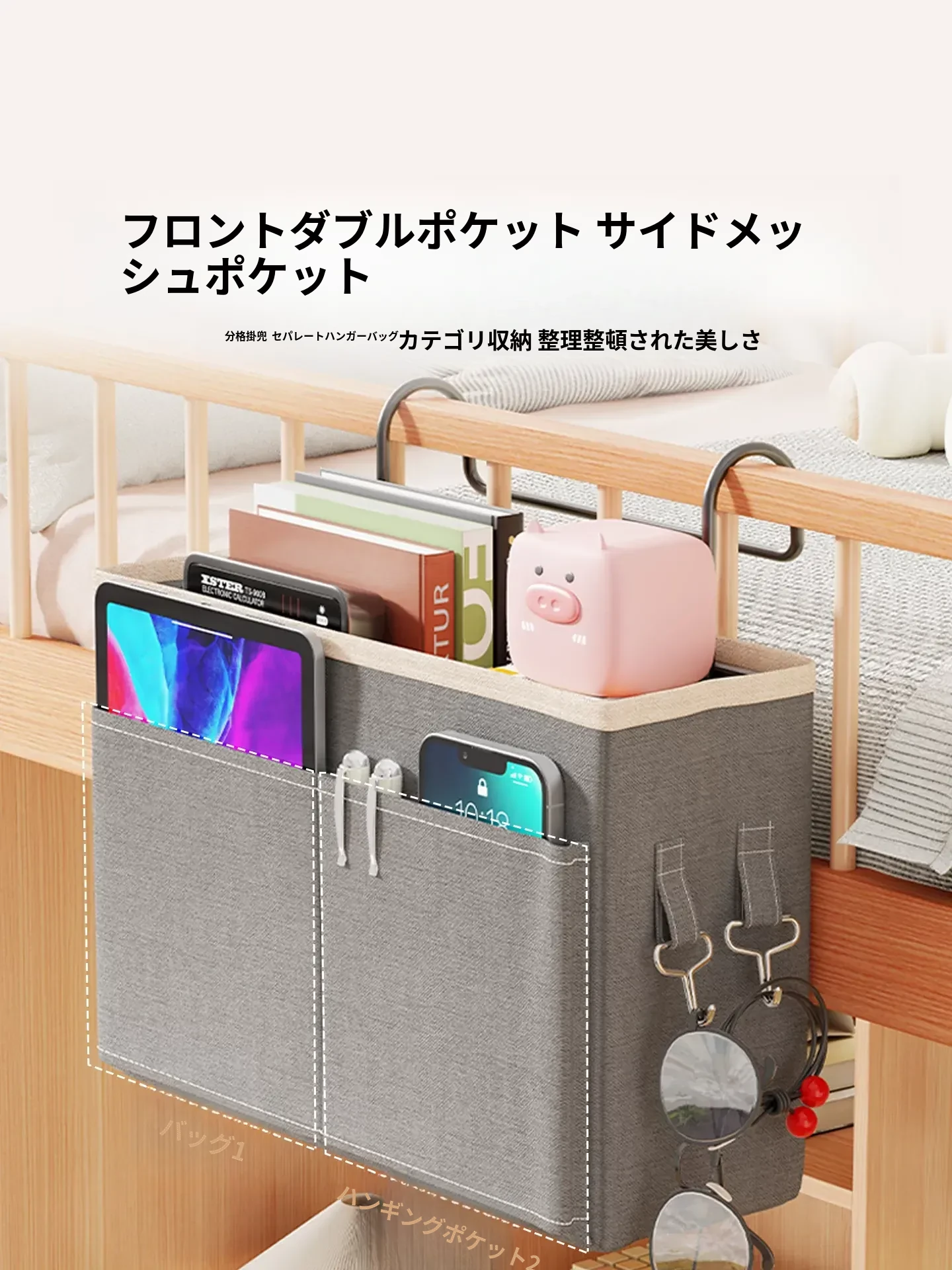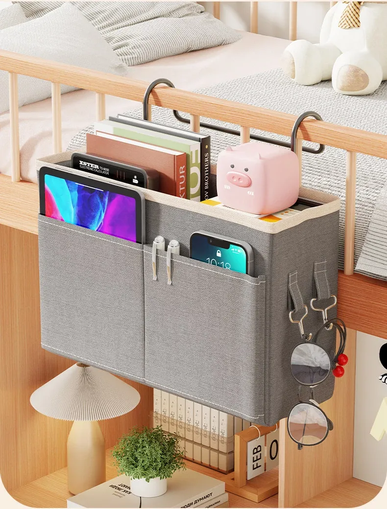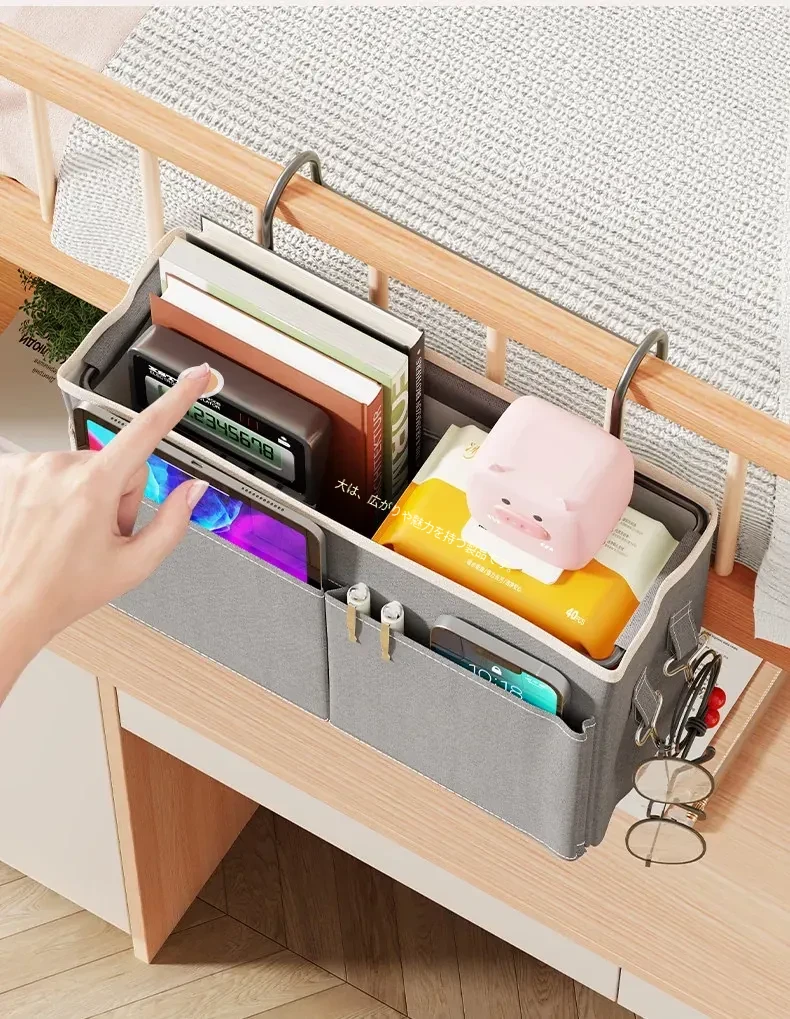 宿舎用ベッドサイド収納ポケット - 穴を開けずに簡単取り付け!上段用の分割式ハンギングファブリック収納バッグで、寝室をスッキリ整理!