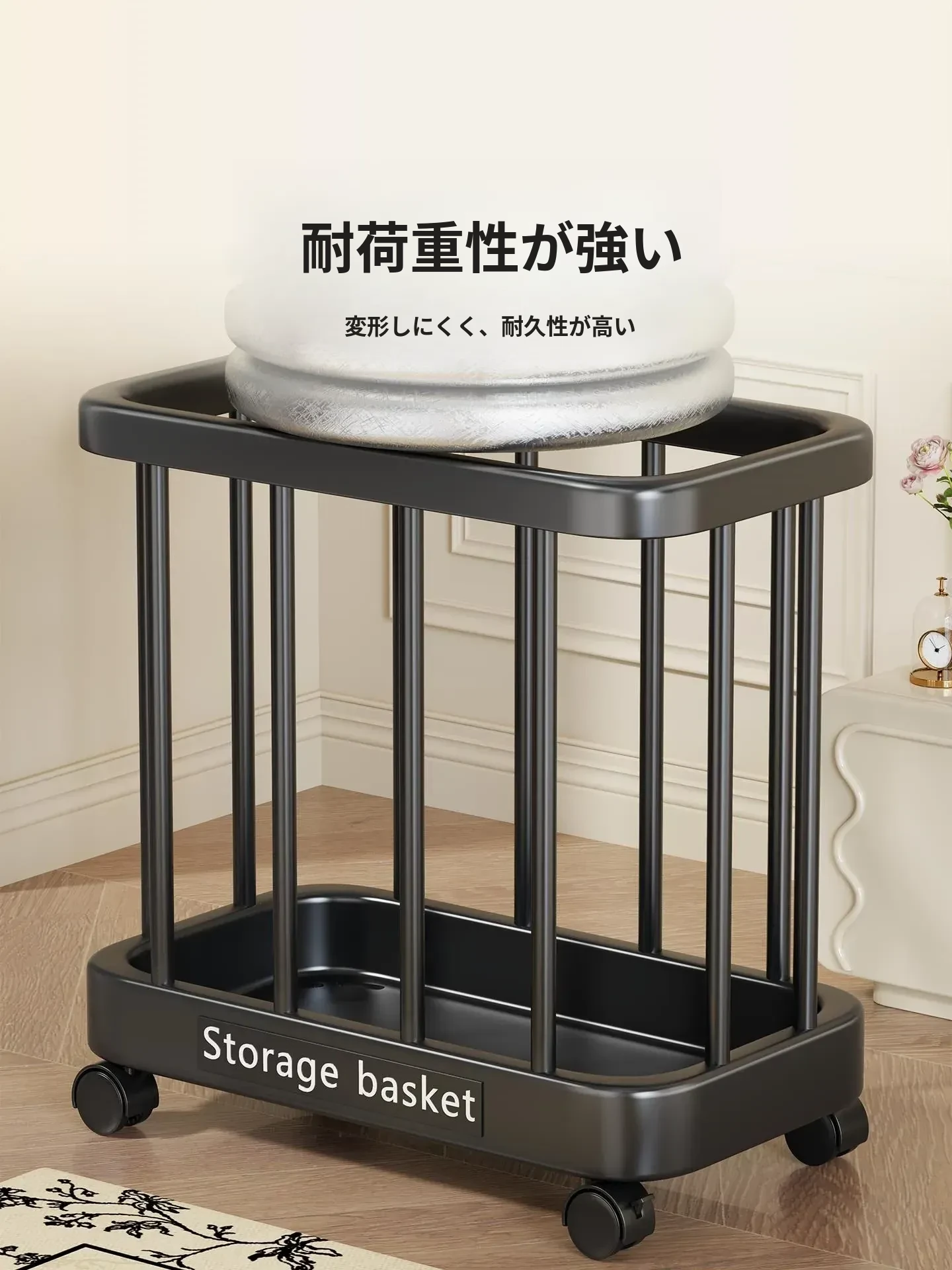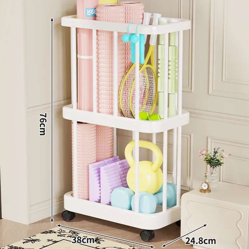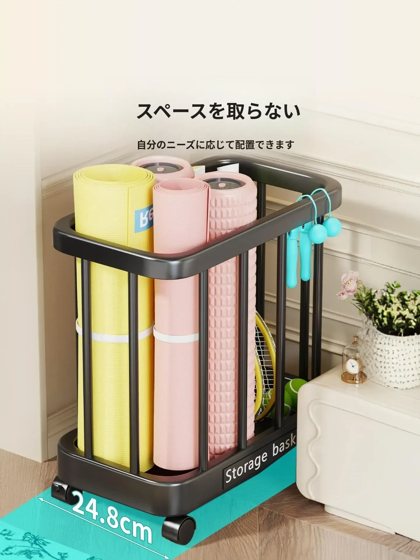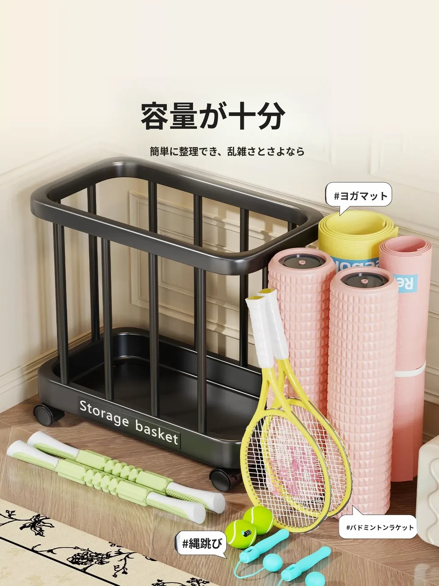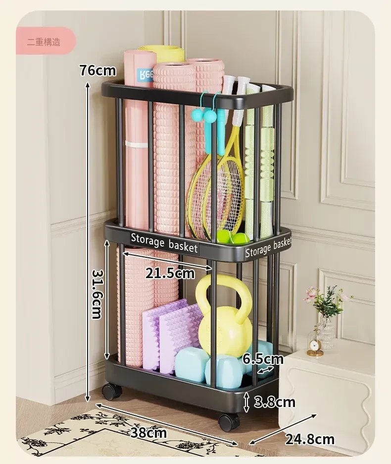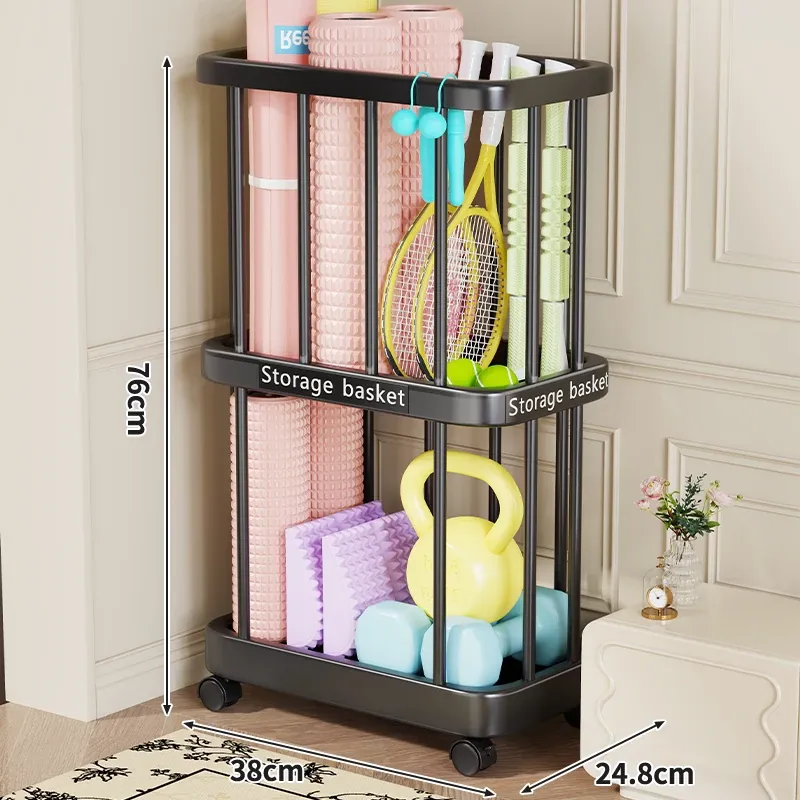 ヨガマット収納バスケット - 移動可能なキャスター付き!家庭用スポーツ用品、フィットネス機器、バドミントンラケット収納に最適!整理整頓が簡単で、運動をより快適にサポートします。