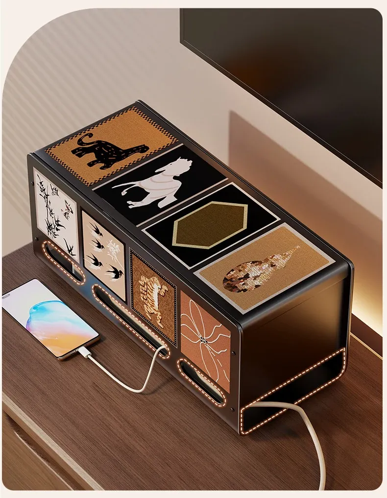 デスク周りをすっきり整理!電源タップ収納ボックス - 充電器・データケーブルも隠せる便利アイテム!あなたの作業スペースを美しく保ちます。