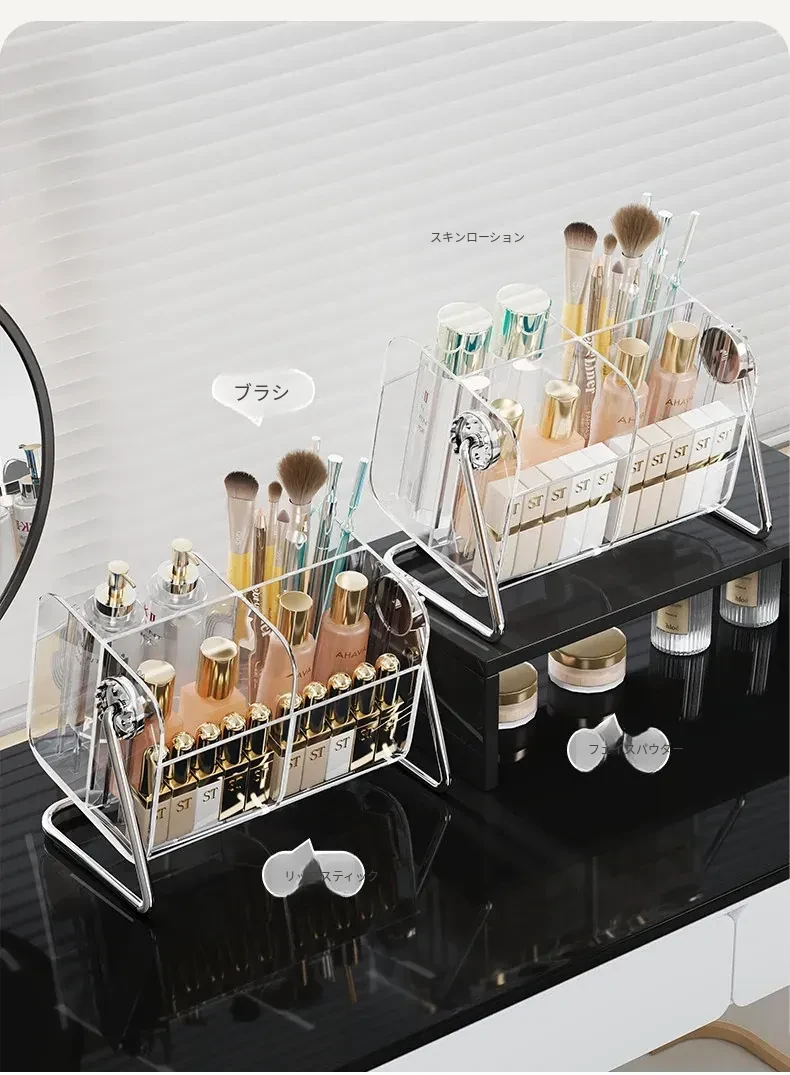 回転式化粧品収納ボックス 防塵パフ 卓上美妝スポンジ 多層透明収納ラック 大容量整理ボックスで、あなたのメイクをスッキリ整理!使いやすく、どんな化粧品も美しく収納できる魅力的なアイテムです。