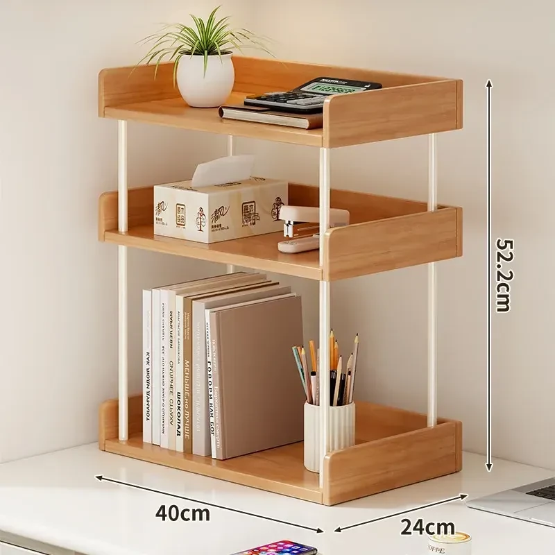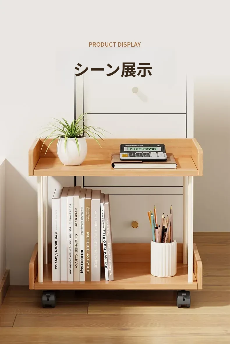 天然木製のフロア書棚 - おしゃれな収納ラック!リビングの壁際にぴったり、コンパクトで移動可能な多段式収納キャビネット。雑貨や書籍をスマートに整理整頓!お部屋をスタイリッシュに演出します。