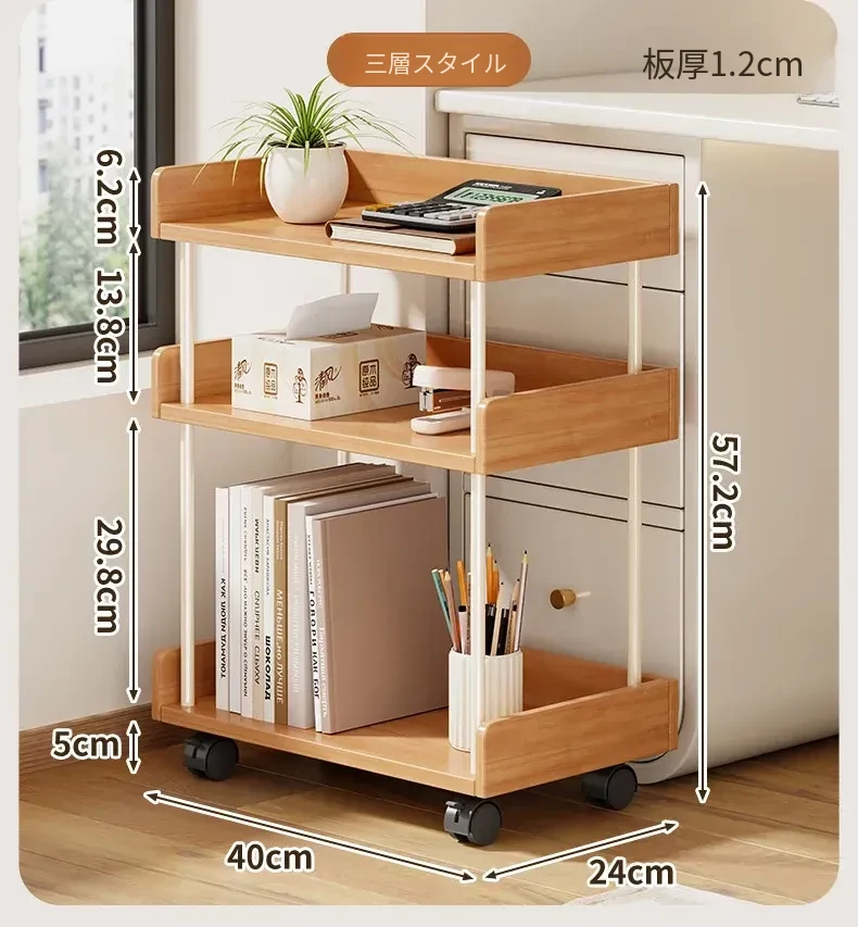 ナチュラルウッドカラーキャスター付き(3層)【輸入無垢材】