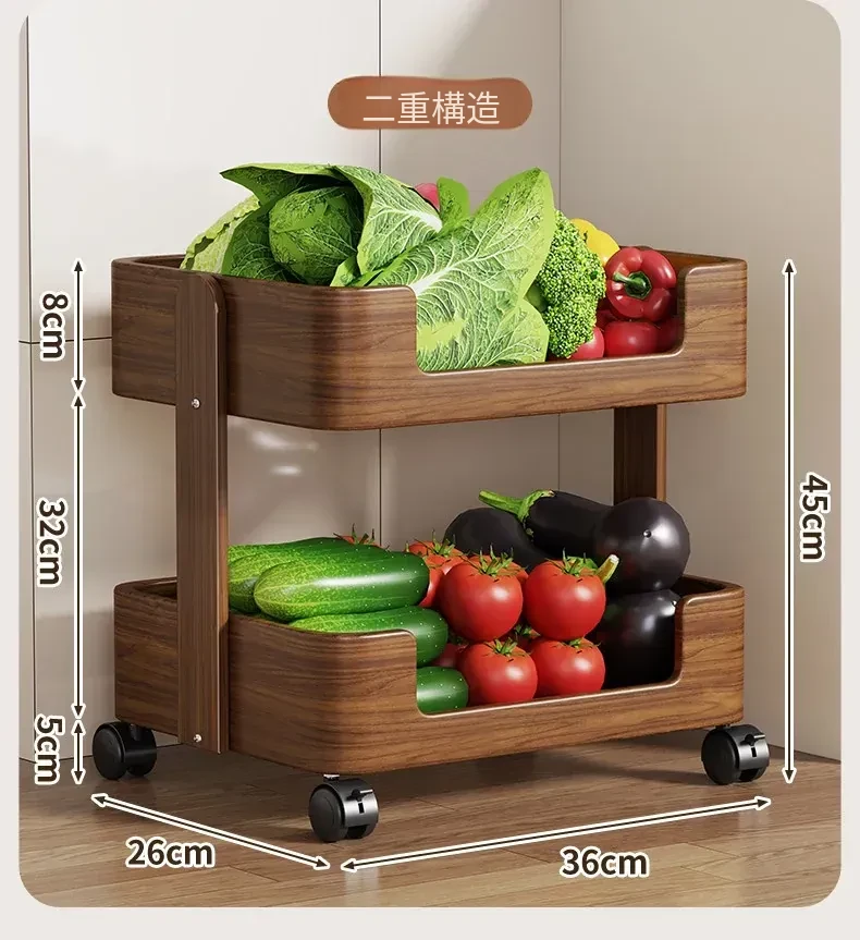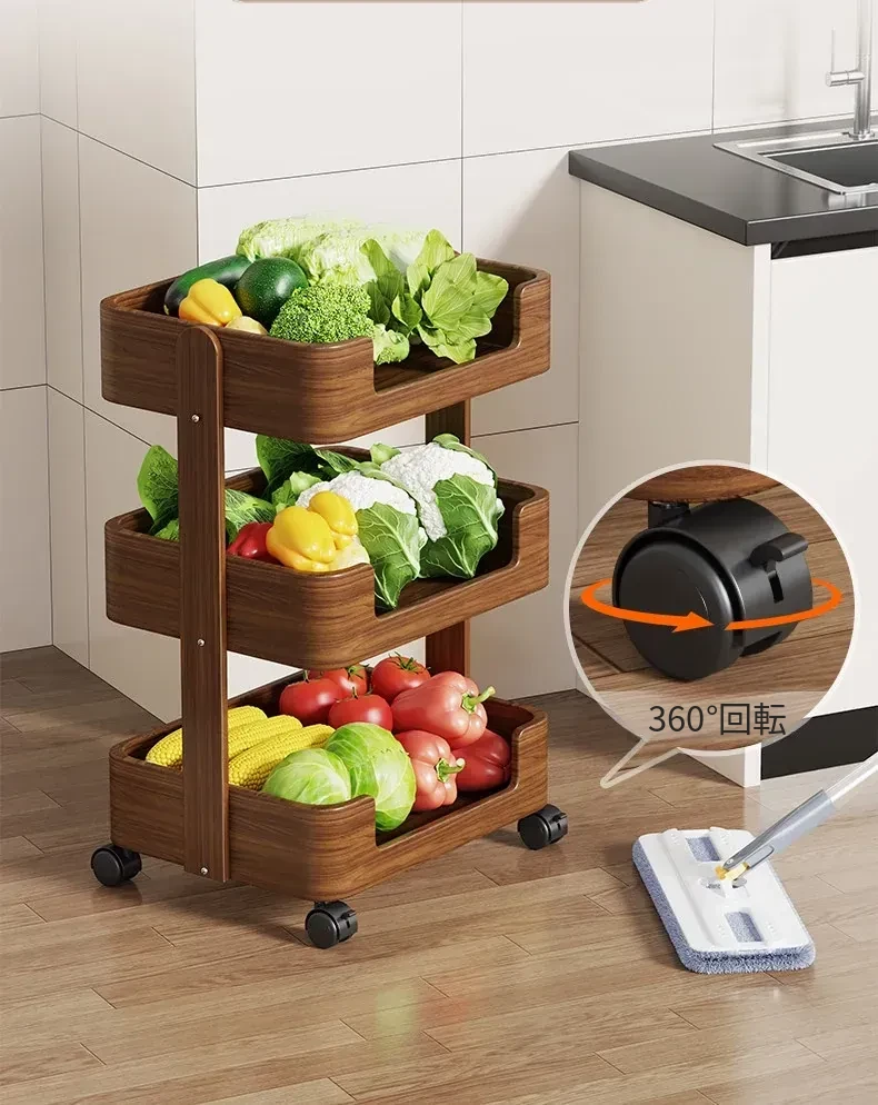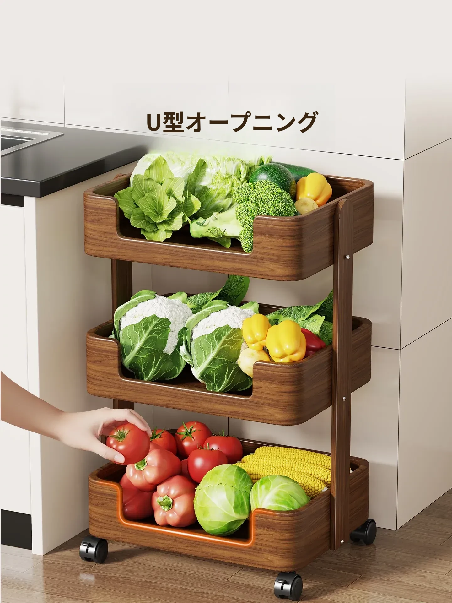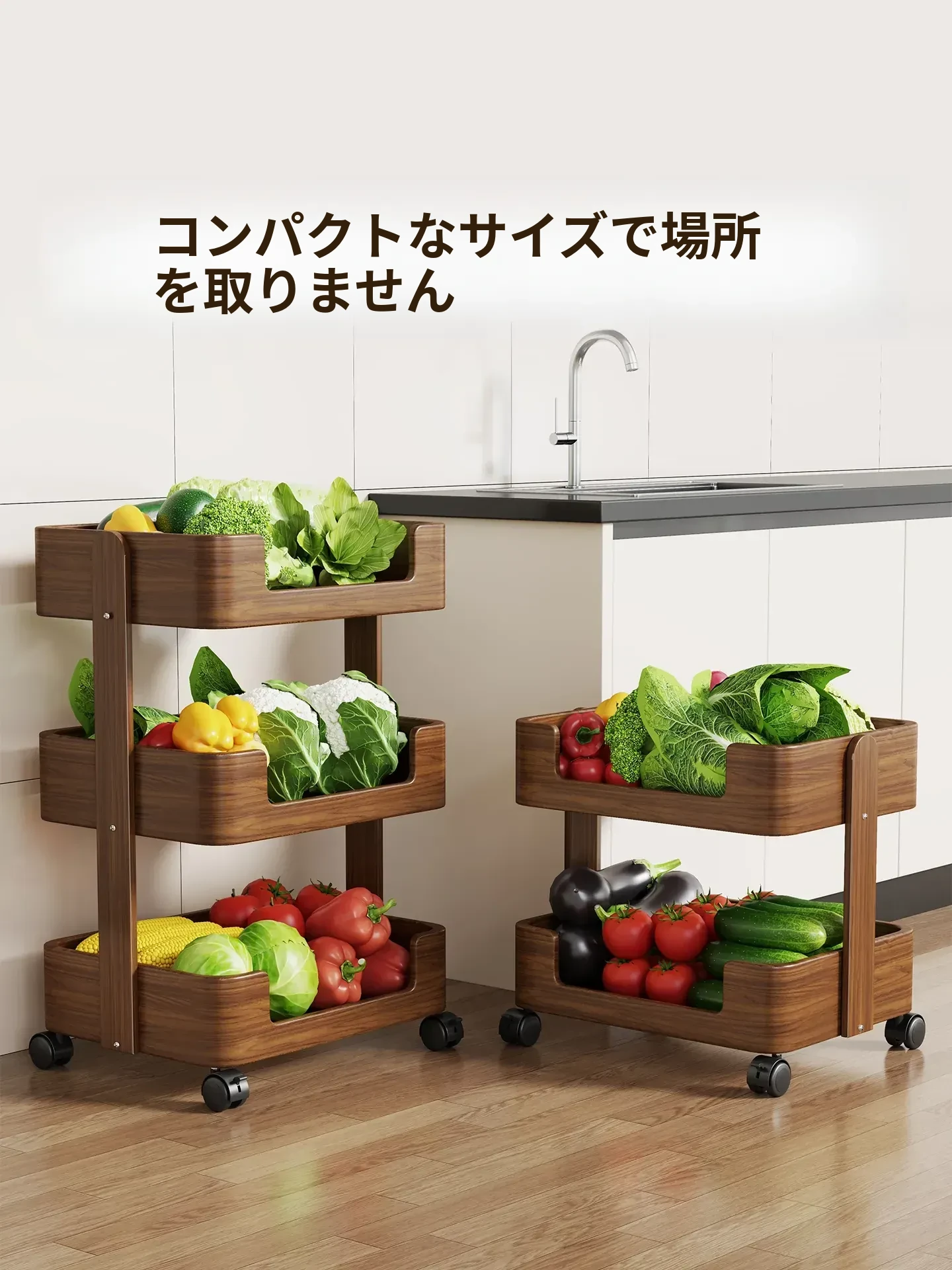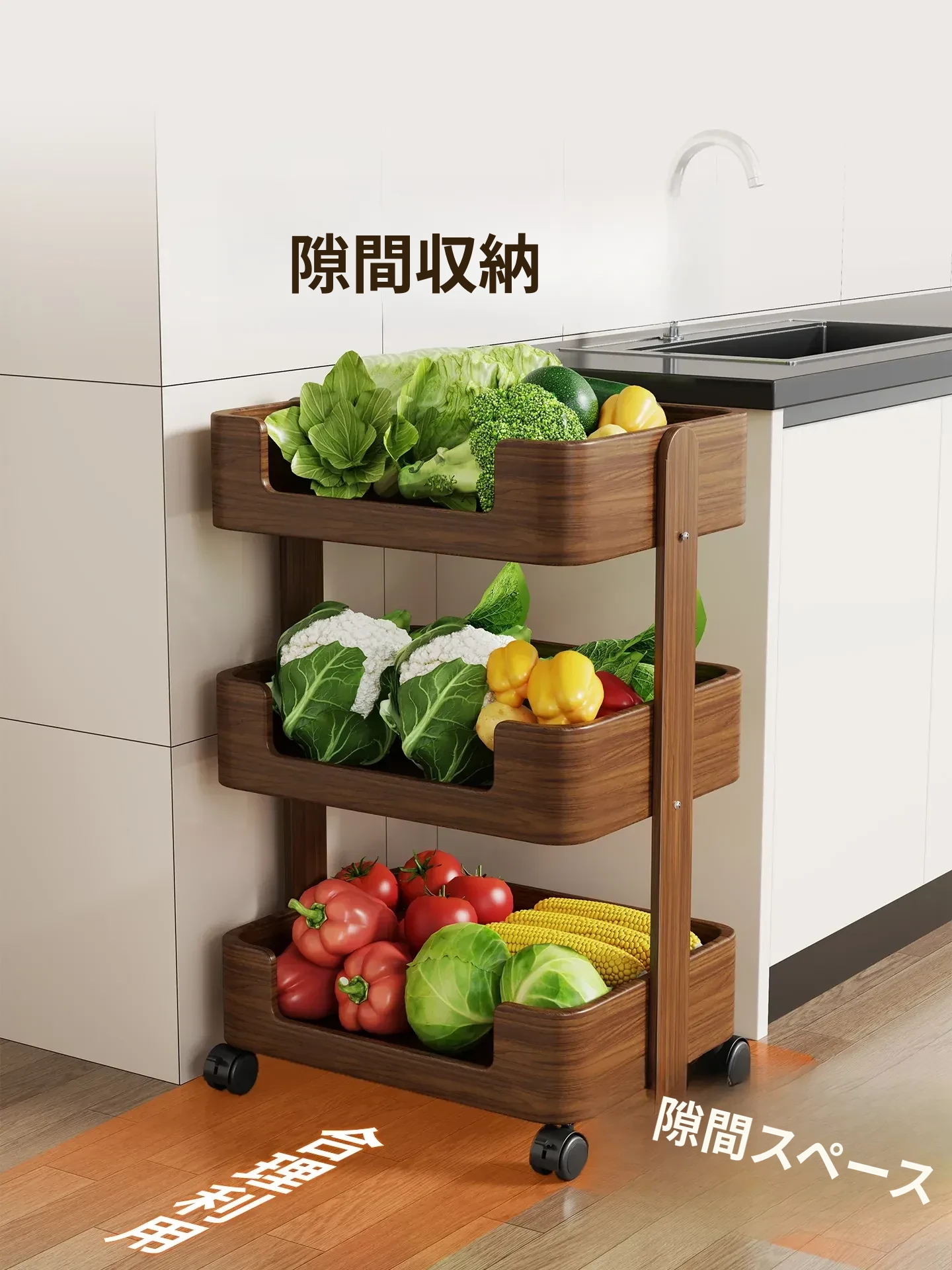 木製キッチン収納ラック - 家庭用の多段式スナックボックス、リビングの玩具や果物・野菜を収納できる小型カート。スタイリッシュで実用的、整理整頓をサポートします!
