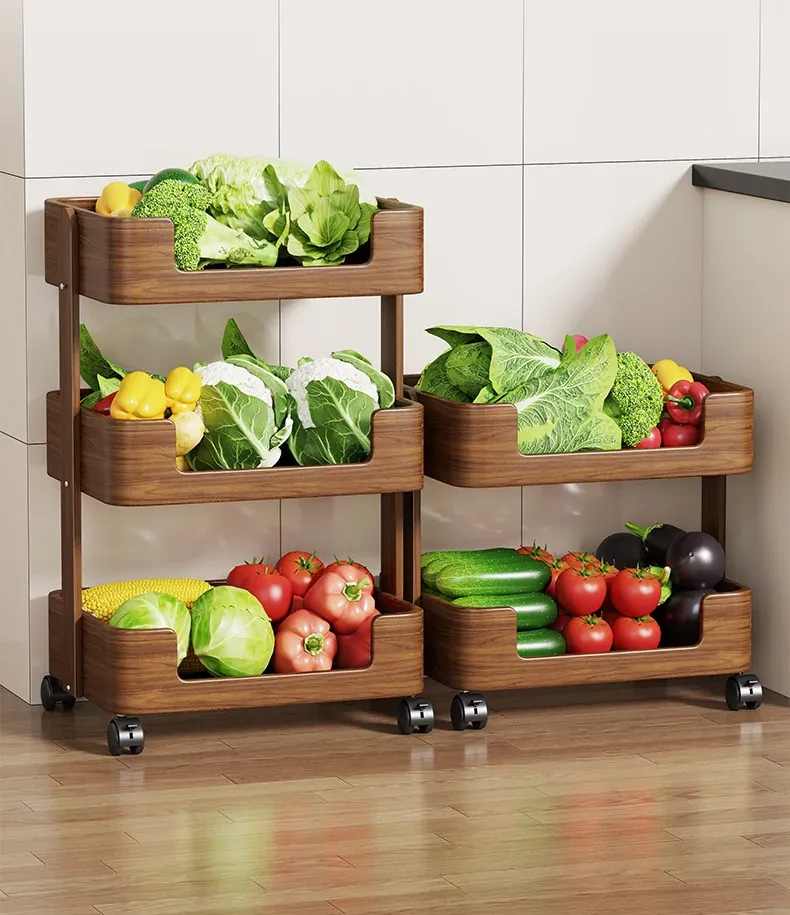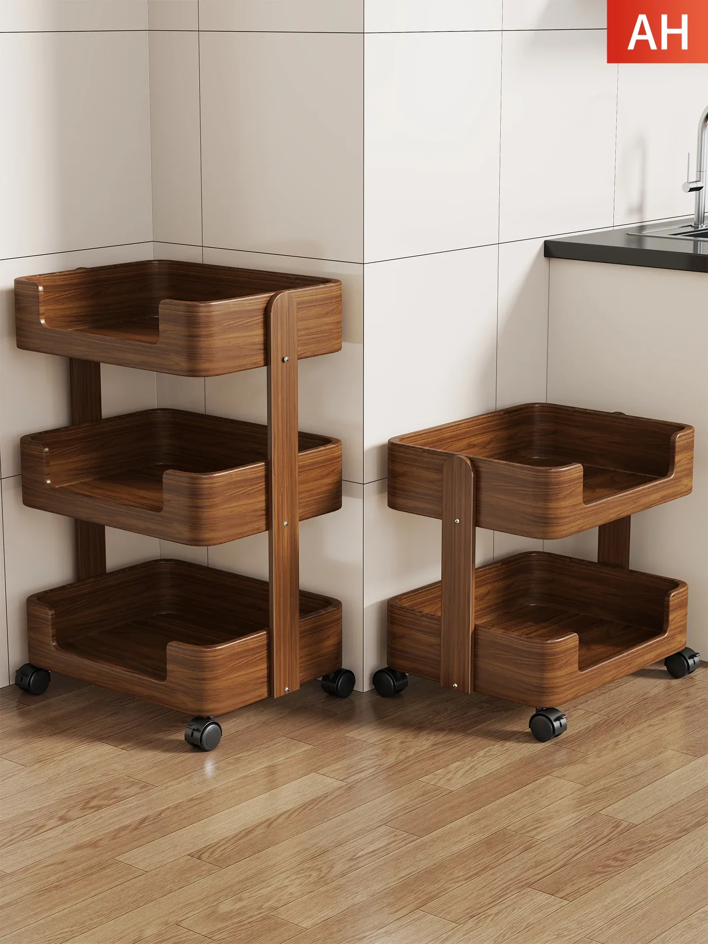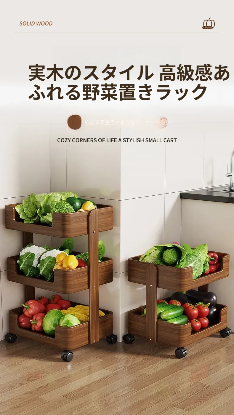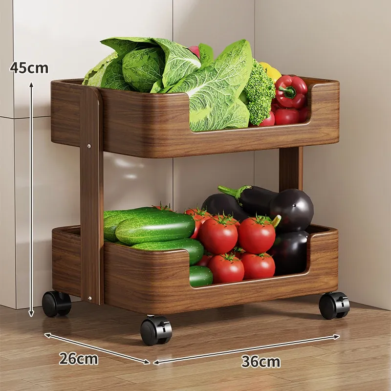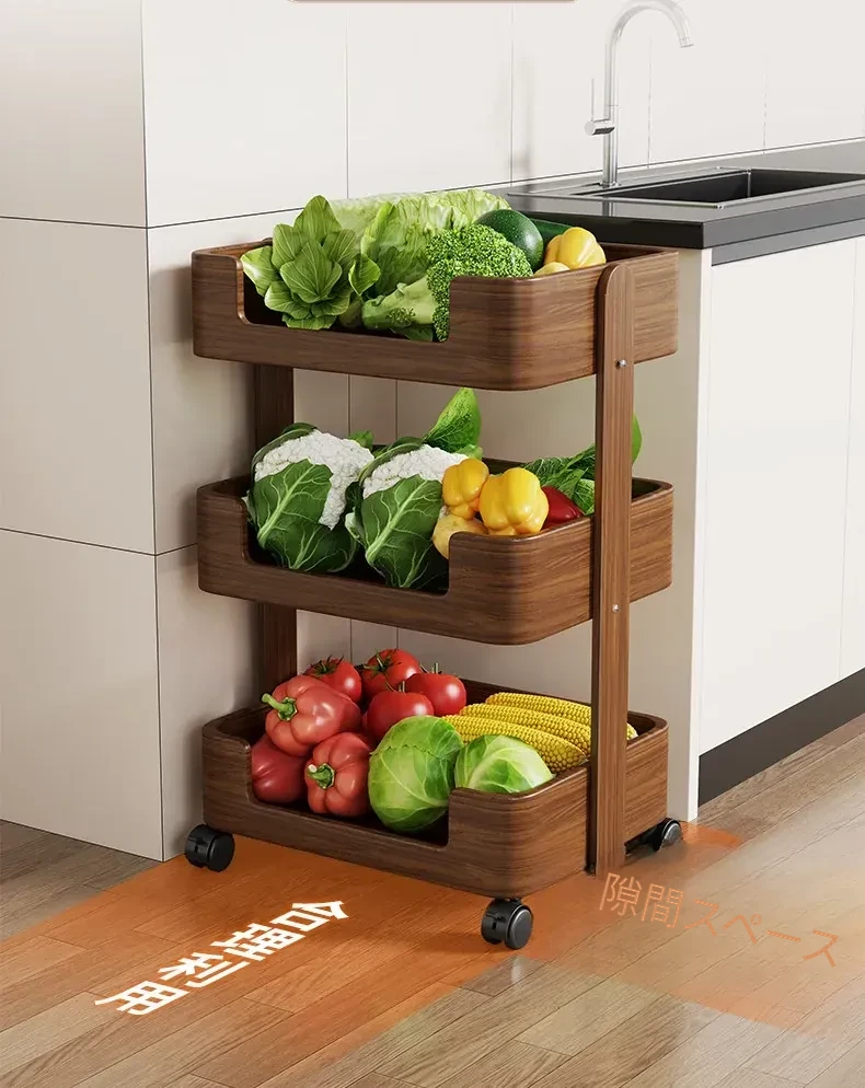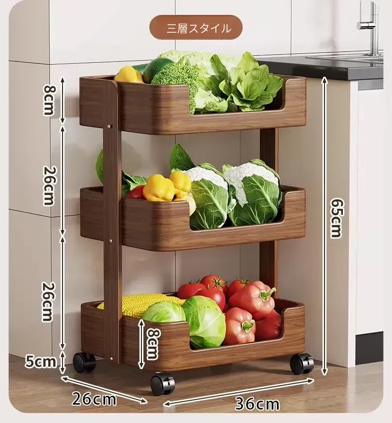 木製キッチン収納ラック - 家庭用の多段式スナックボックス、リビングの玩具や果物・野菜を収納できる小型カート。スタイリッシュで実用的、整理整頓をサポートします!