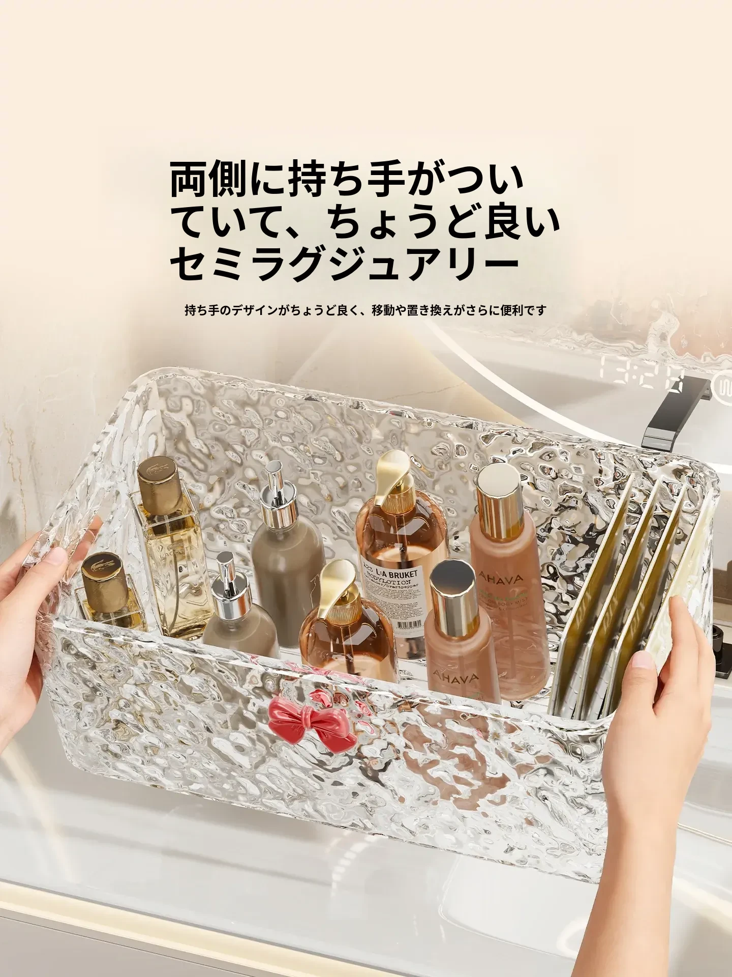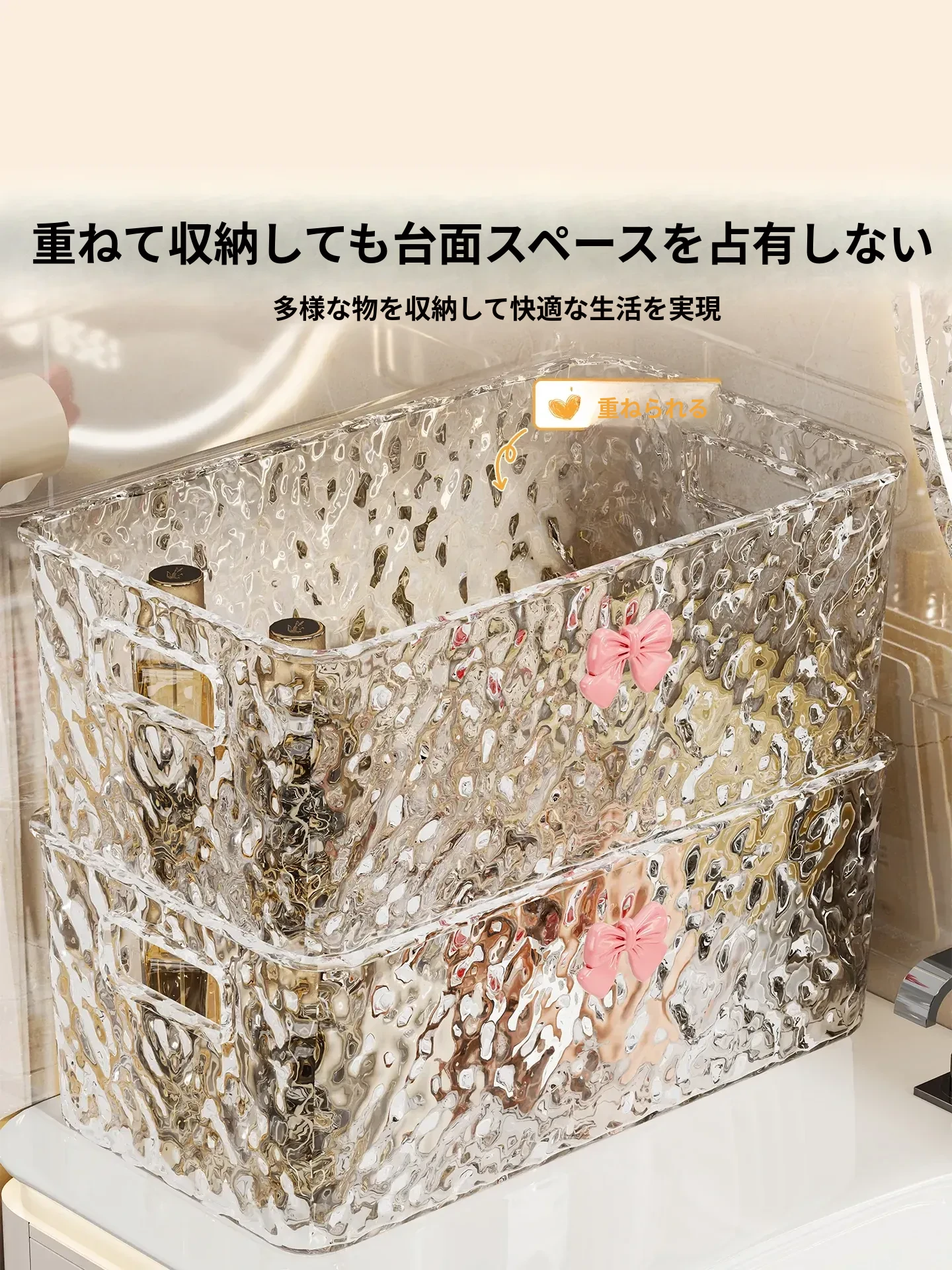 洗面台の化粧品収納ボックス|デスクトップ用スキンケア・マスク整理の便利アイテム|バスルームで重ねて使えるリップ収納ラック!美しさをスマートに管理!