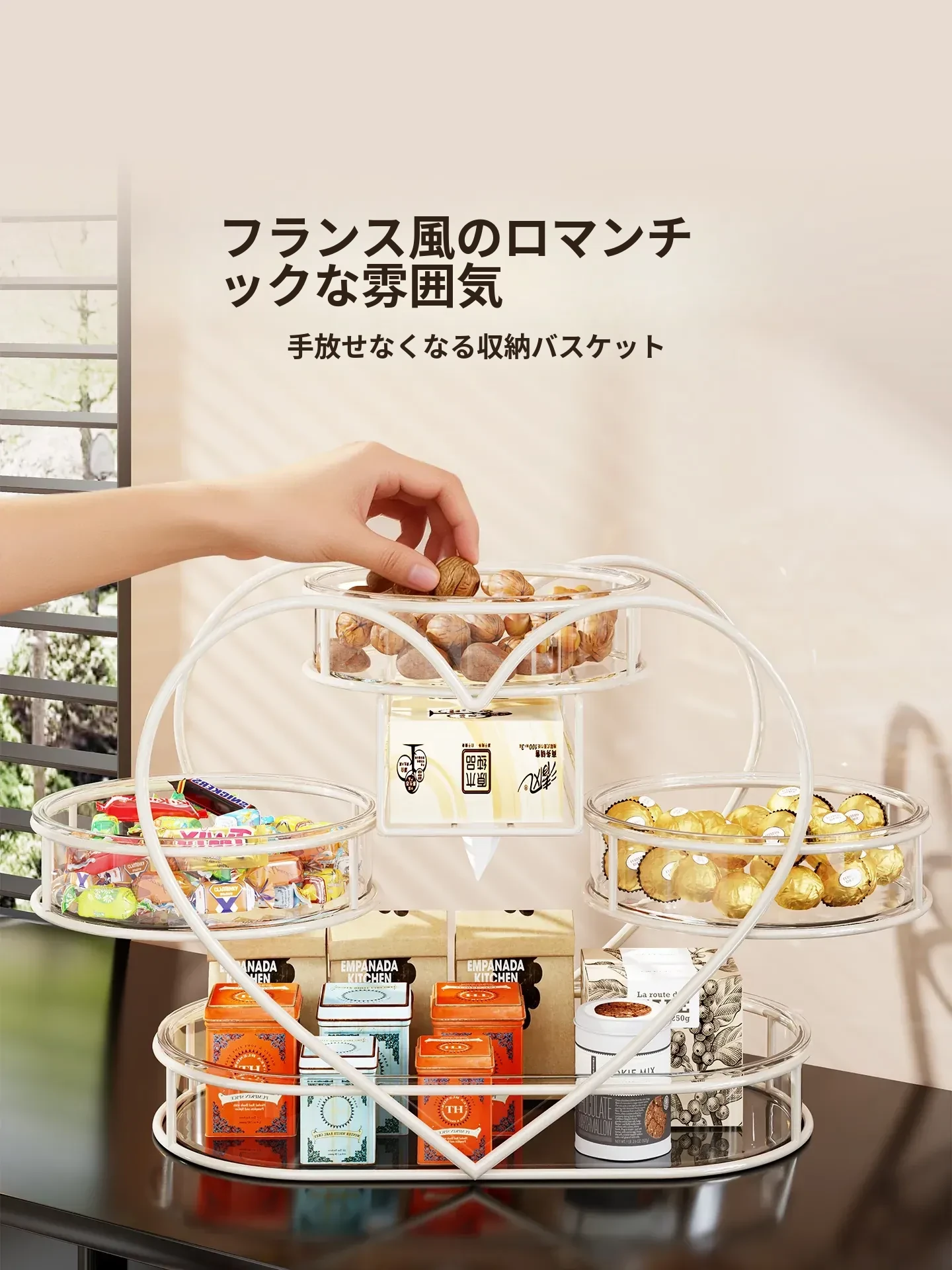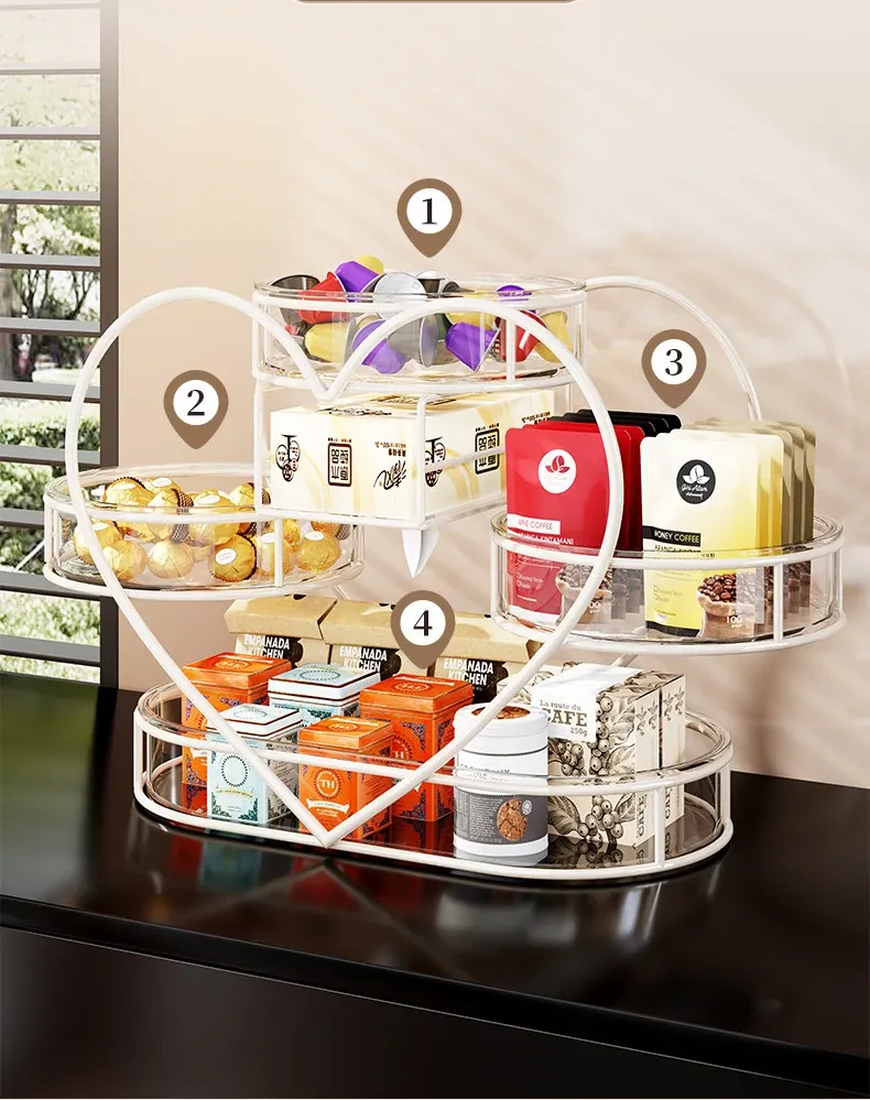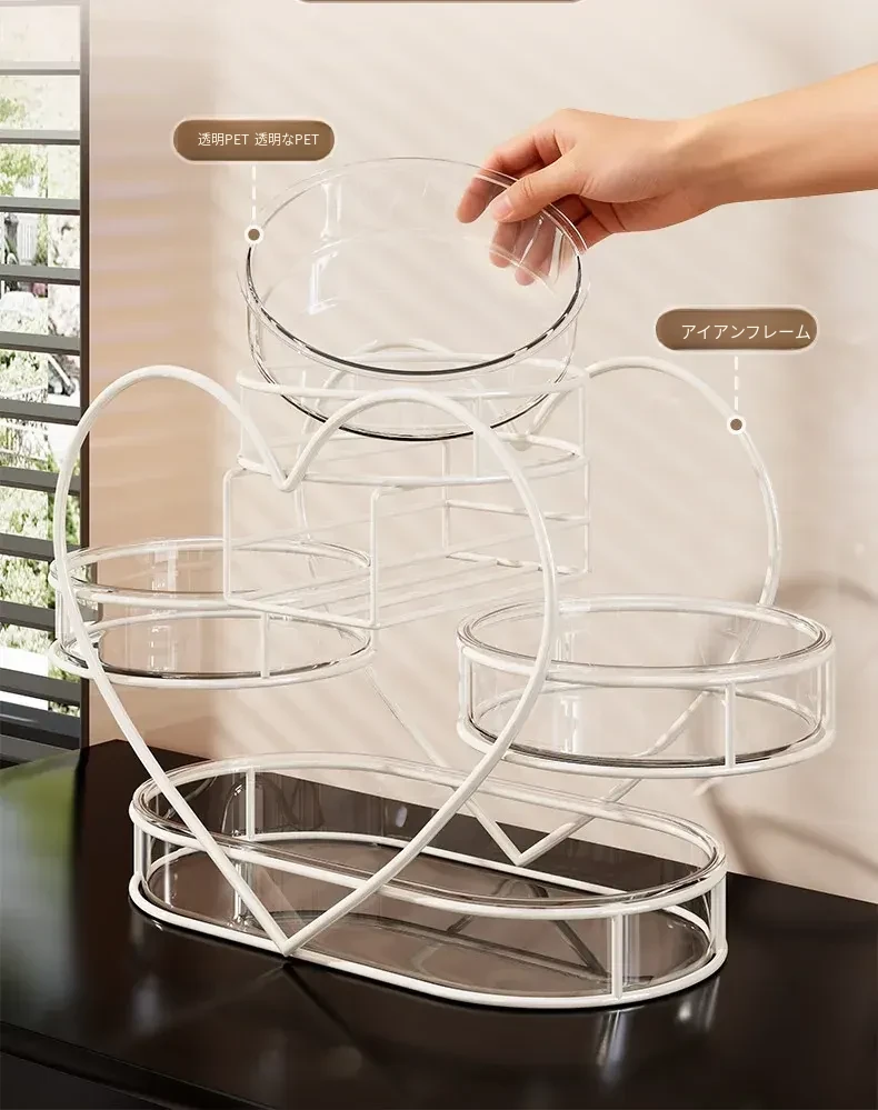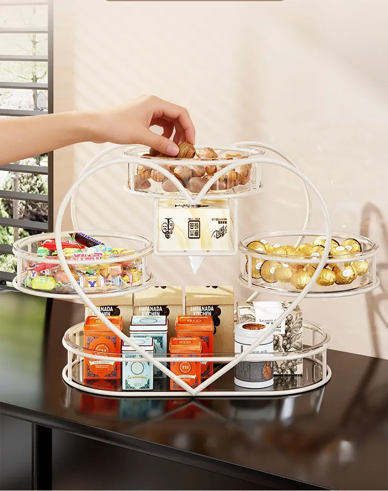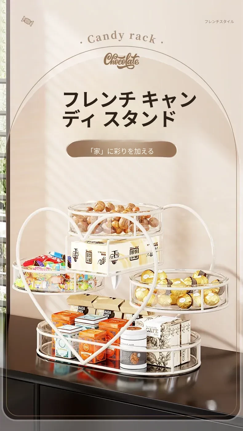 おしゃれなリビングにぴったり!フルーツプレート・お菓子ボックス・キャンディーバスケットが一体化した多機能収納ラック。家族や友人との楽しいひとときを演出し、スッキリとした空間を保つフルーツ収納バスケットです。