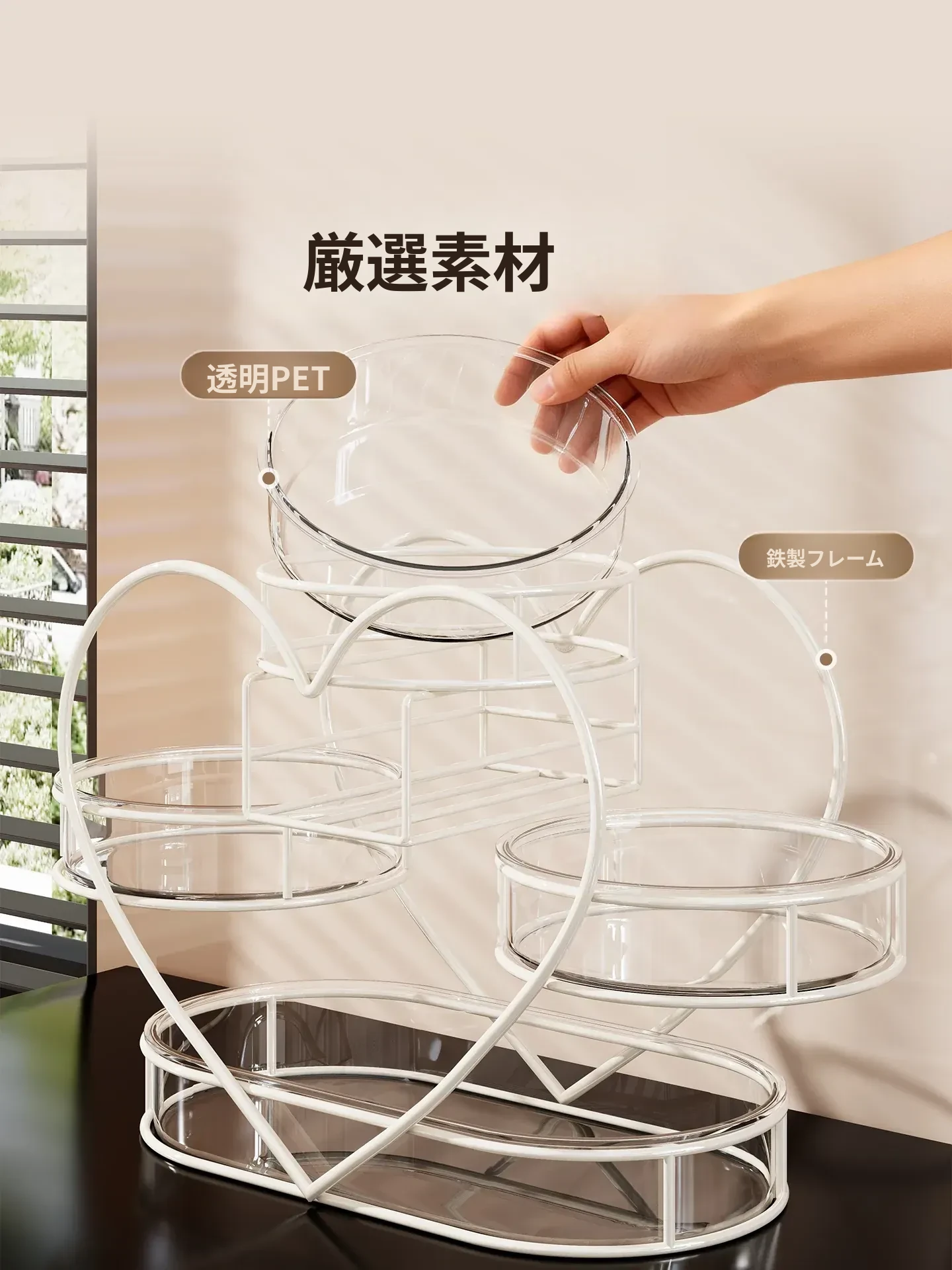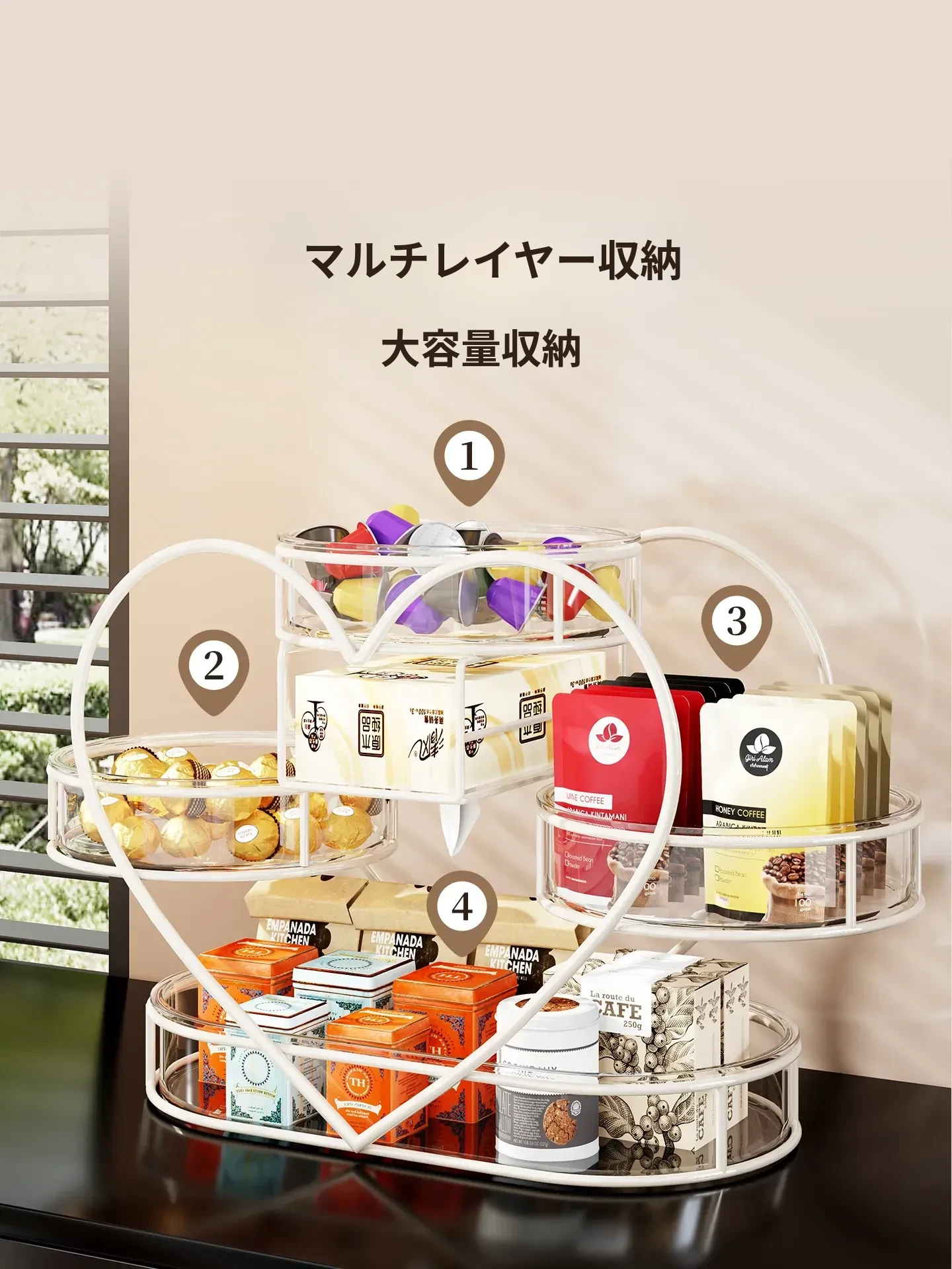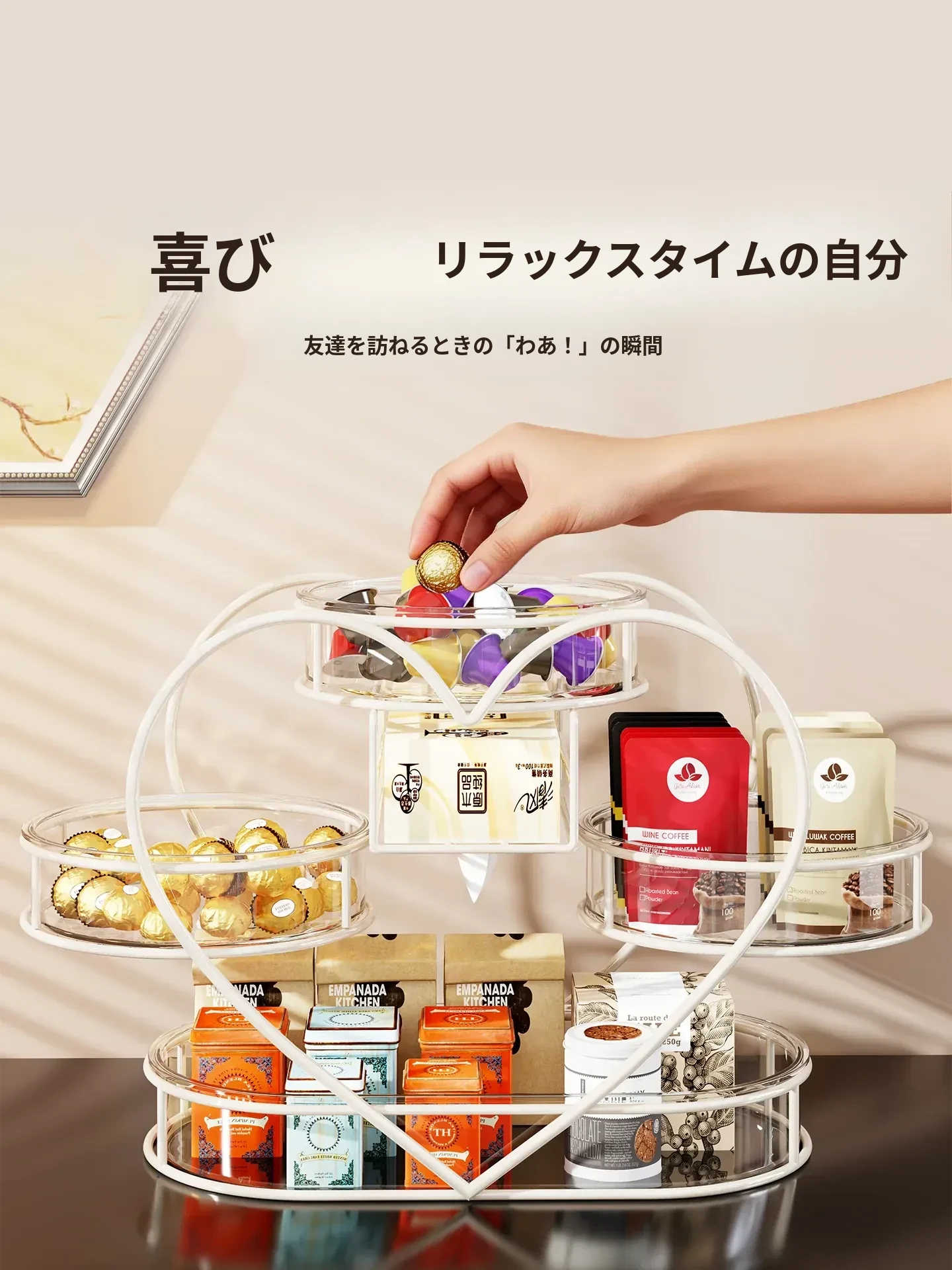 おしゃれなリビングにぴったり!フルーツプレート・お菓子ボックス・キャンディーバスケットが一体化した多機能収納ラック。家族や友人との楽しいひとときを演出し、スッキリとした空間を保つフルーツ収納バスケットです。