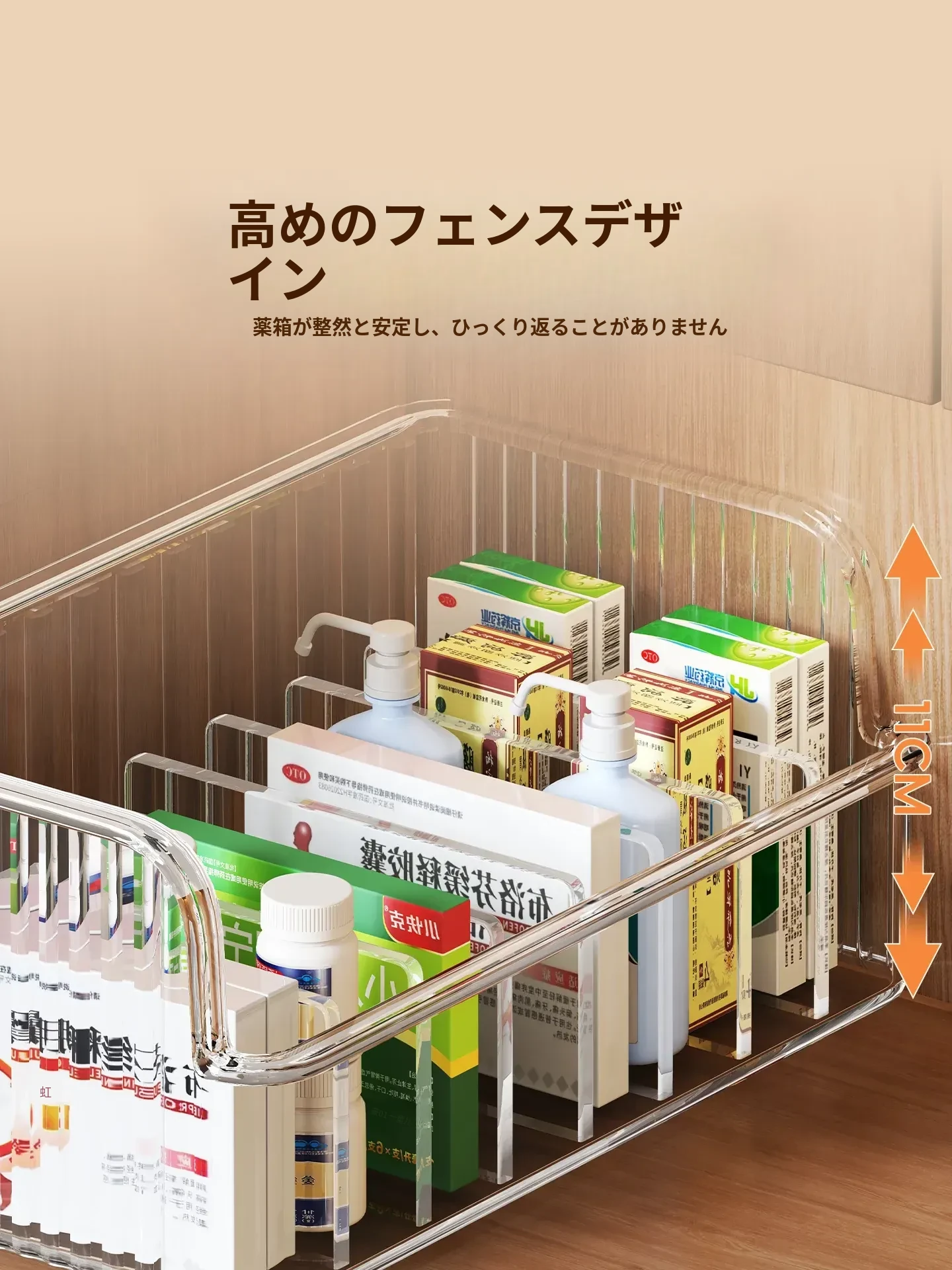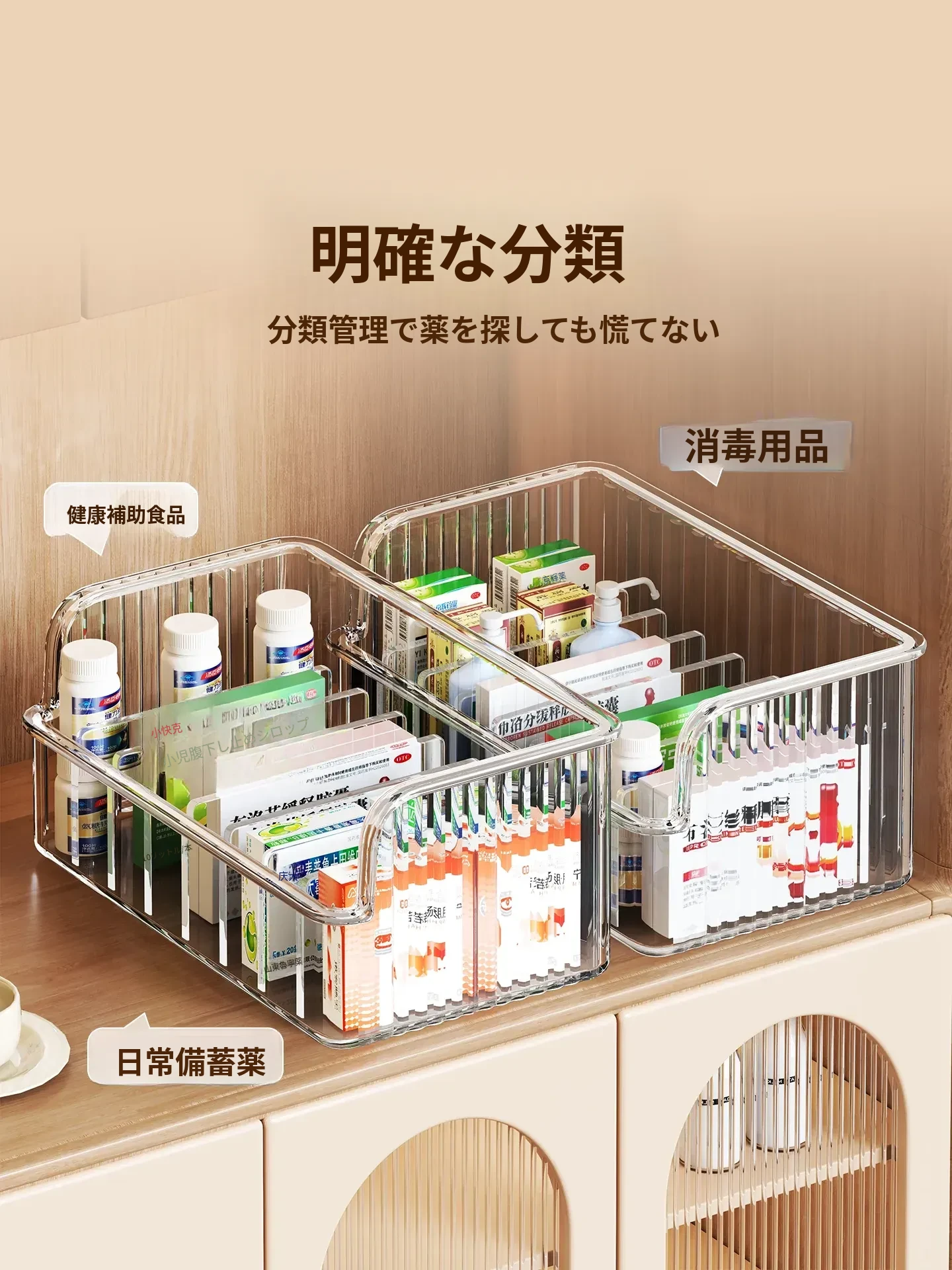 家庭用医薬品収納ボックス - 透明で分格された救急薬・健康補助食品保管ケース、整理整頓に最適!