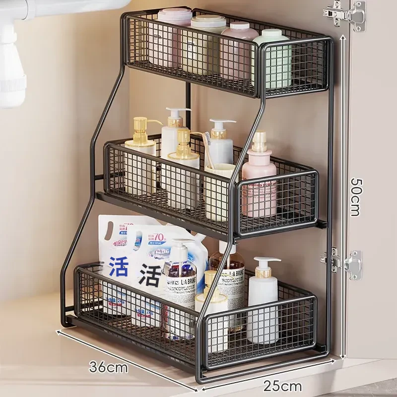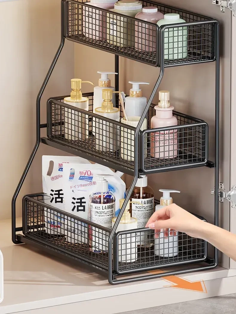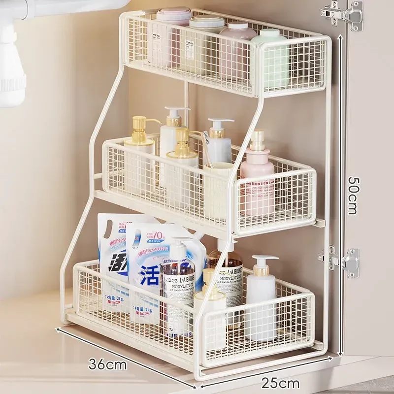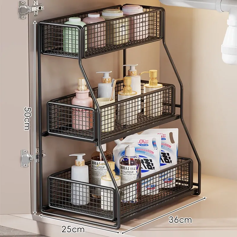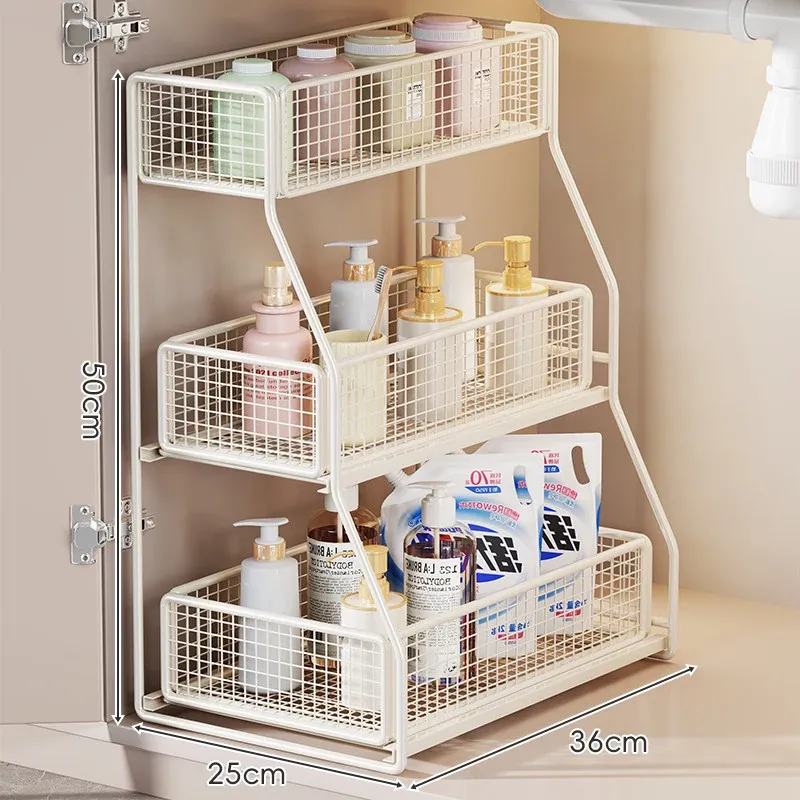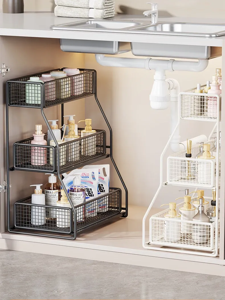 洗面台下収納ラック 引き出し式多層棚 お風呂のキャビネット用 便利な収納ボックス&バスケット 清潔感あふれるバスルームづくりに最適!