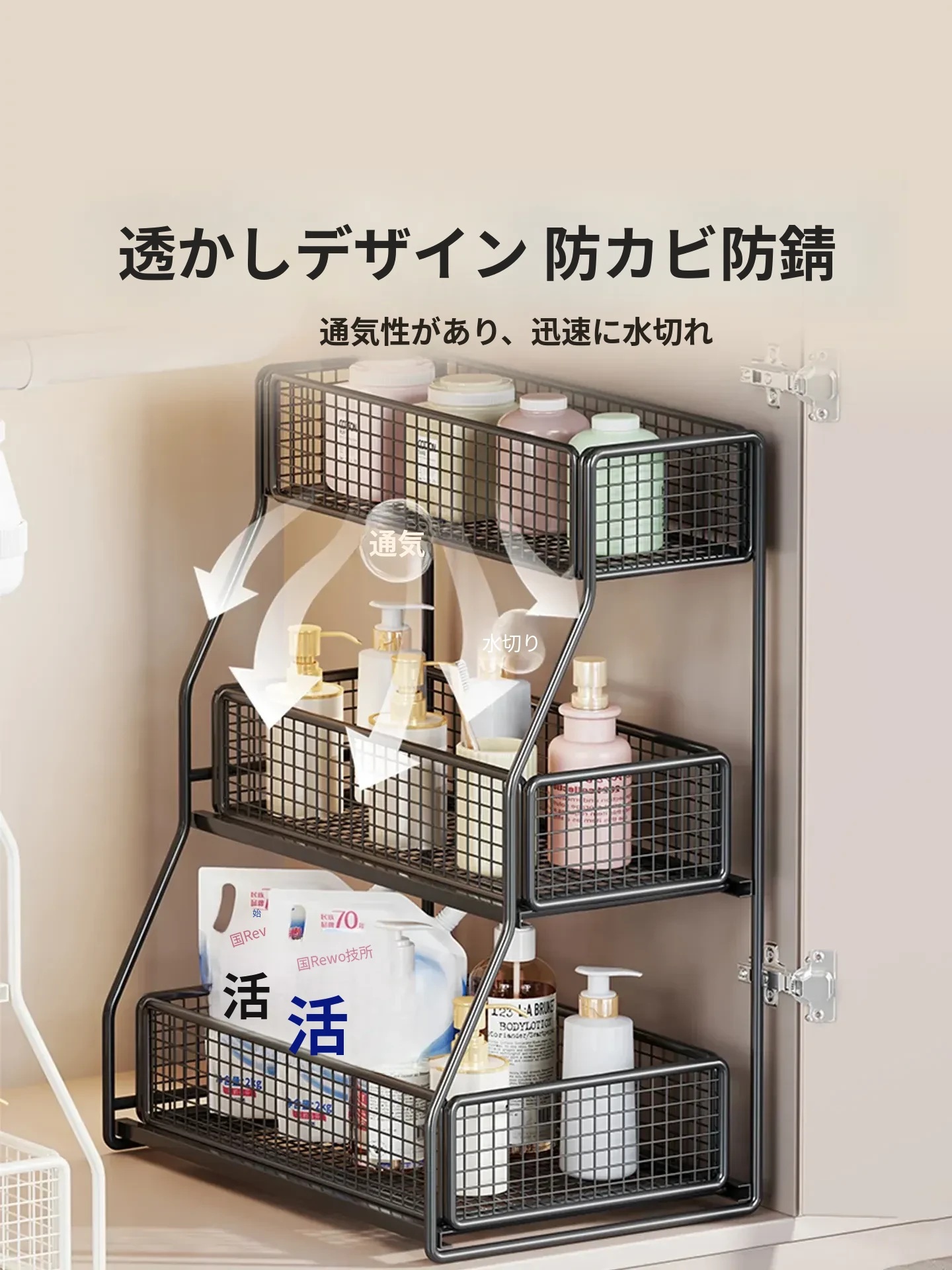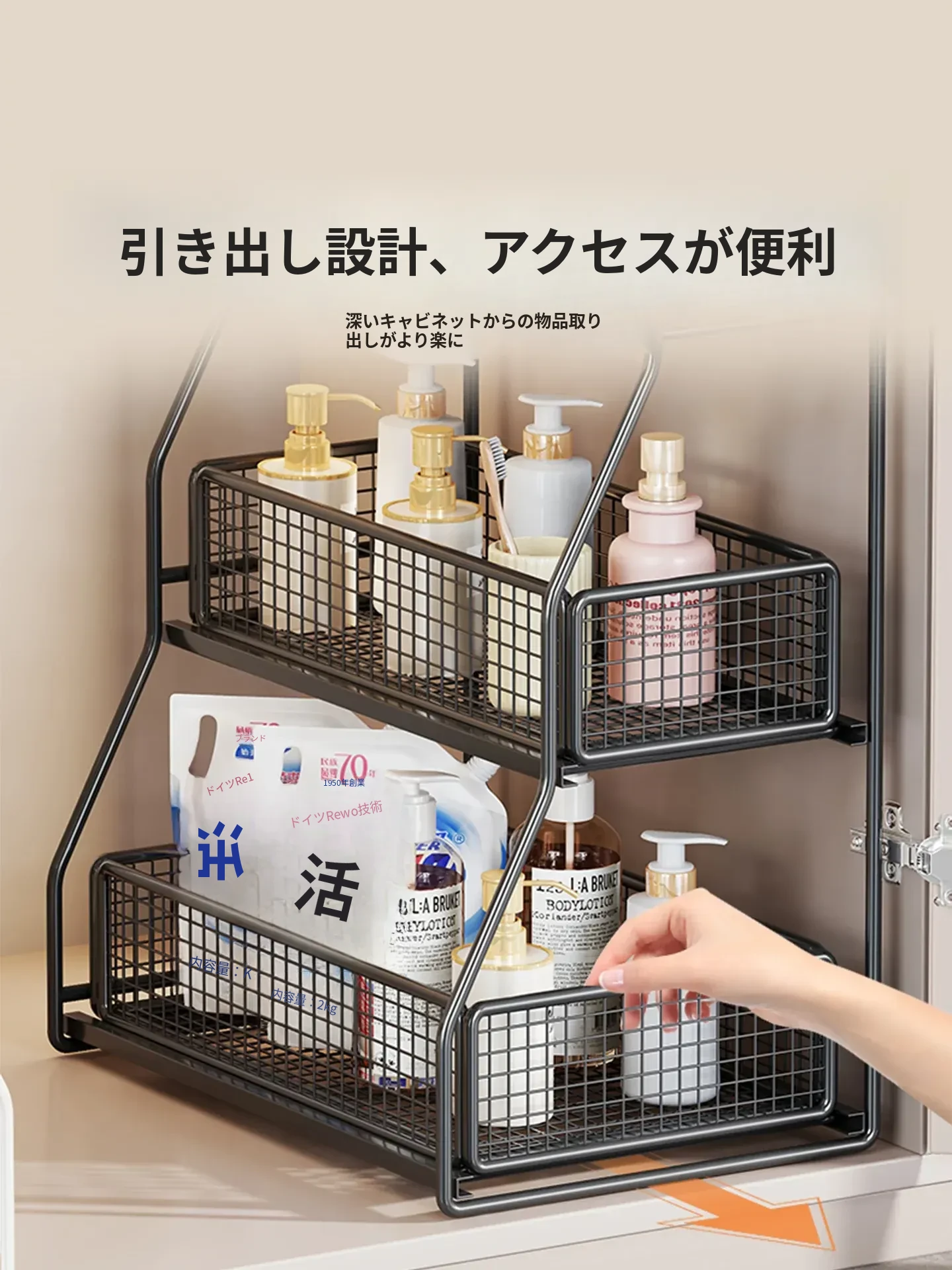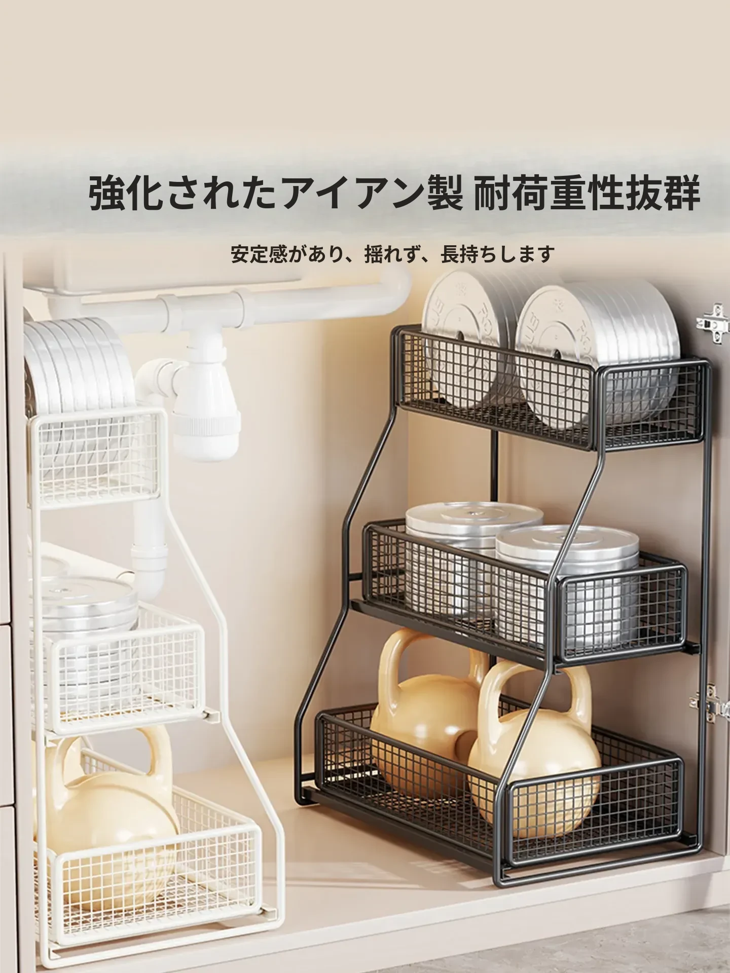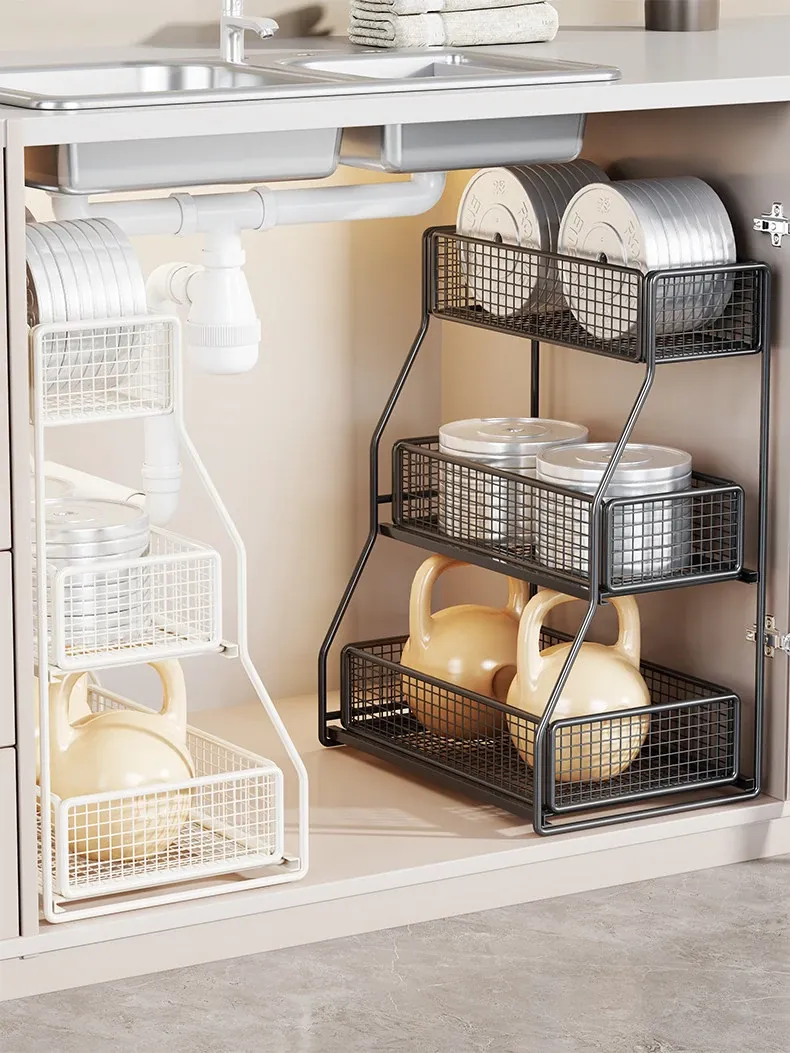 洗面台下収納ラック 引き出し式多層棚 お風呂のキャビネット用 便利な収納ボックス&バスケット 清潔感あふれるバスルームづくりに最適!