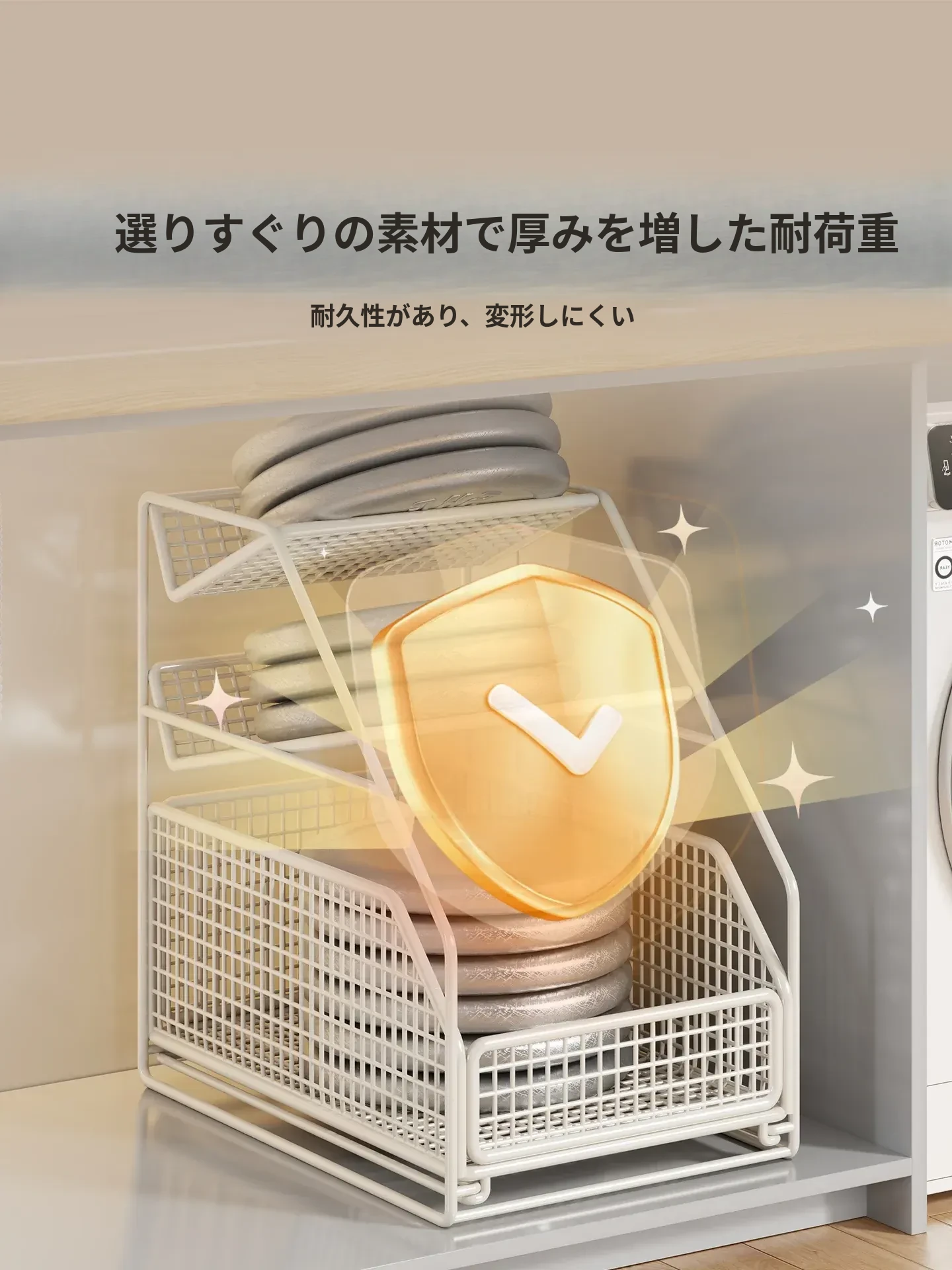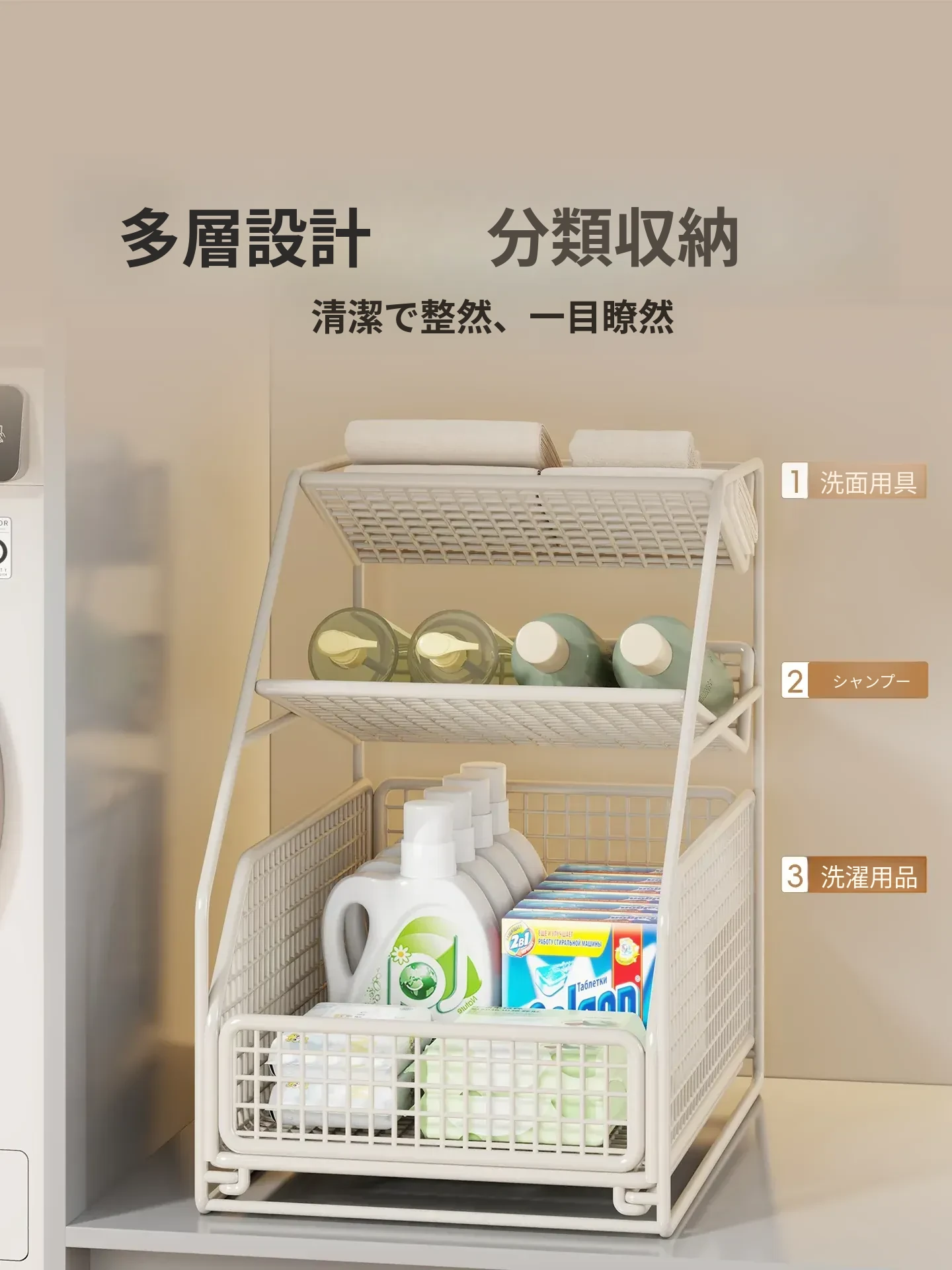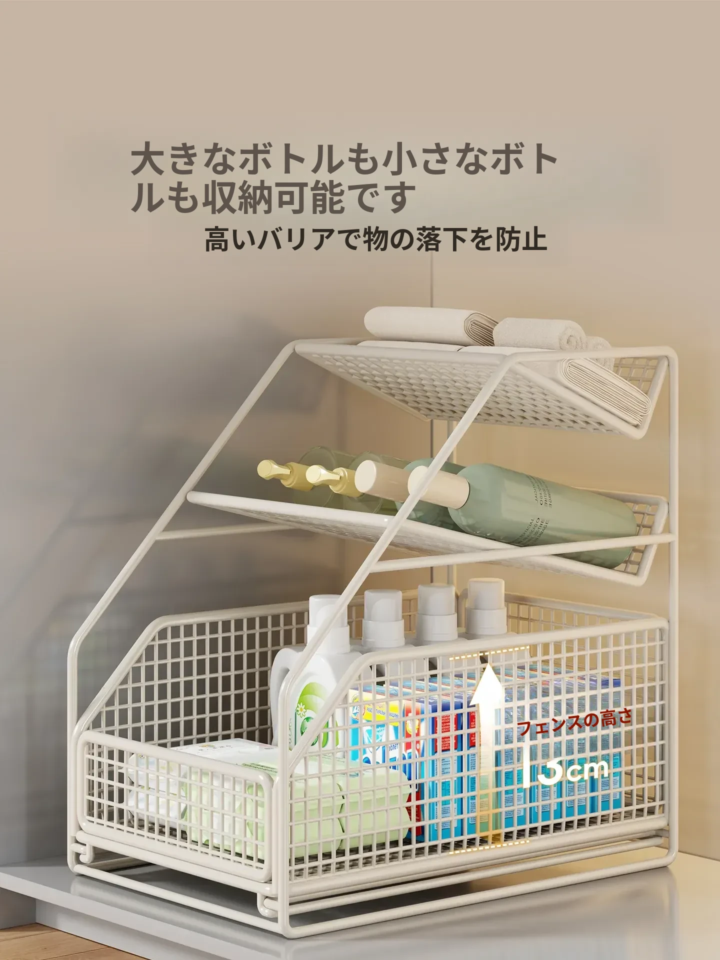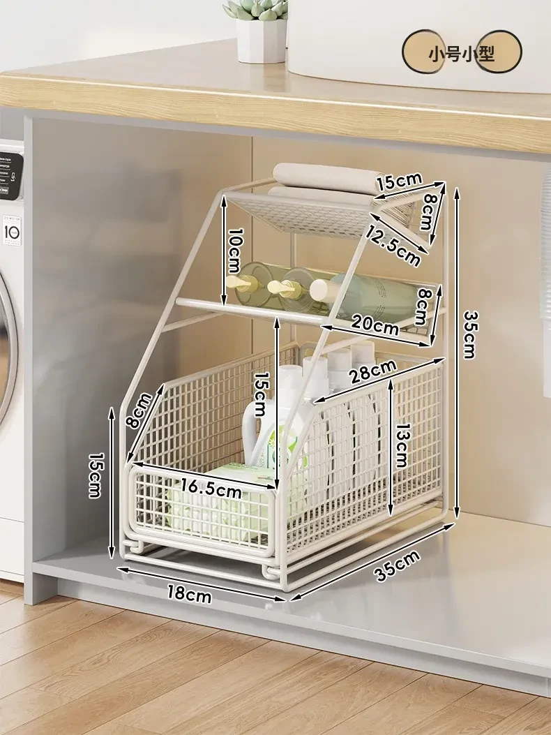 下水槽収納ラック - バスルームや洗面台に最適!引き出し式の多段ラックで、トイレもスッキリ整理。スペースを有効活用し、必要なものがすぐに取り出せる便利な収納アイテムです!