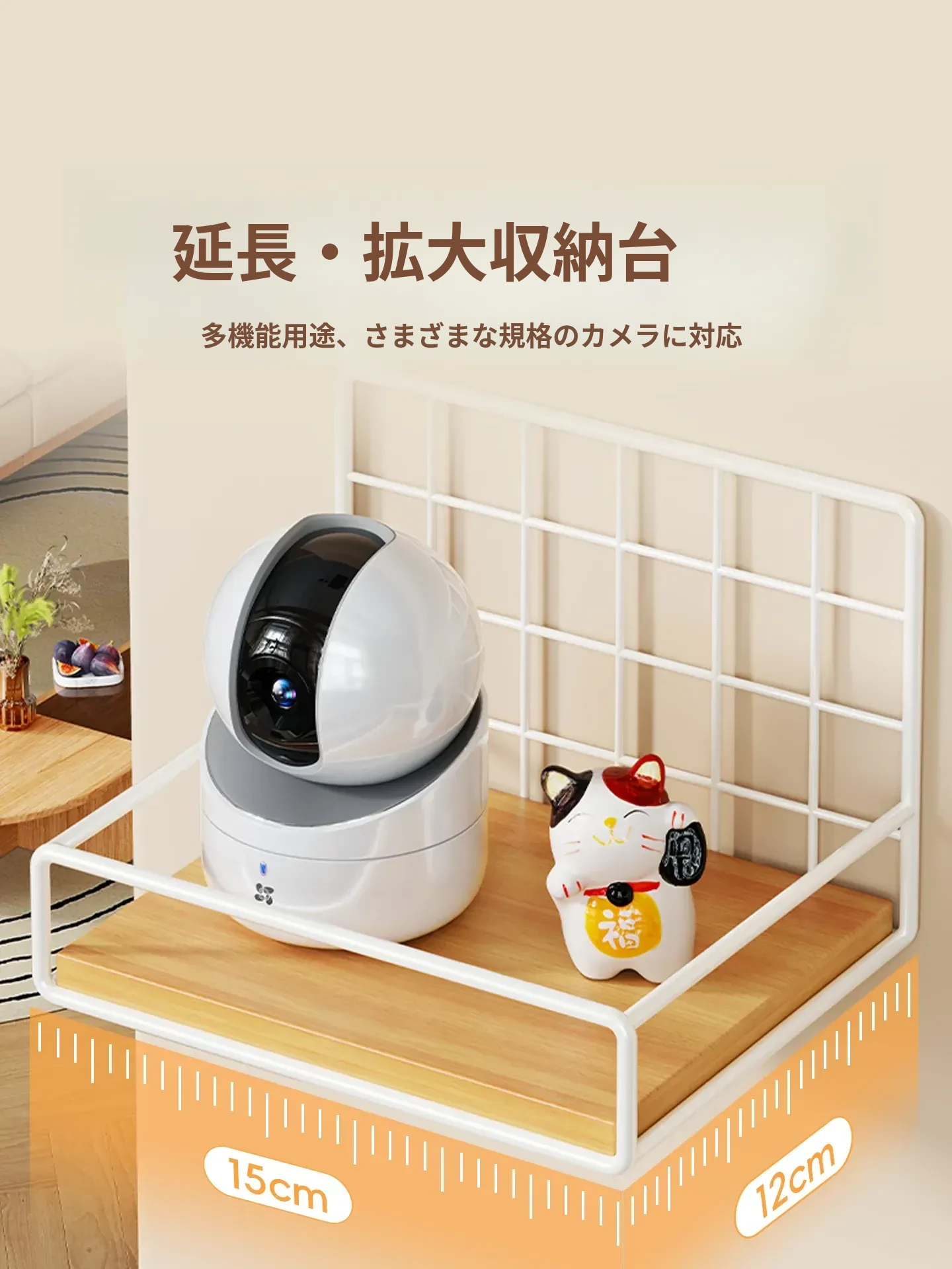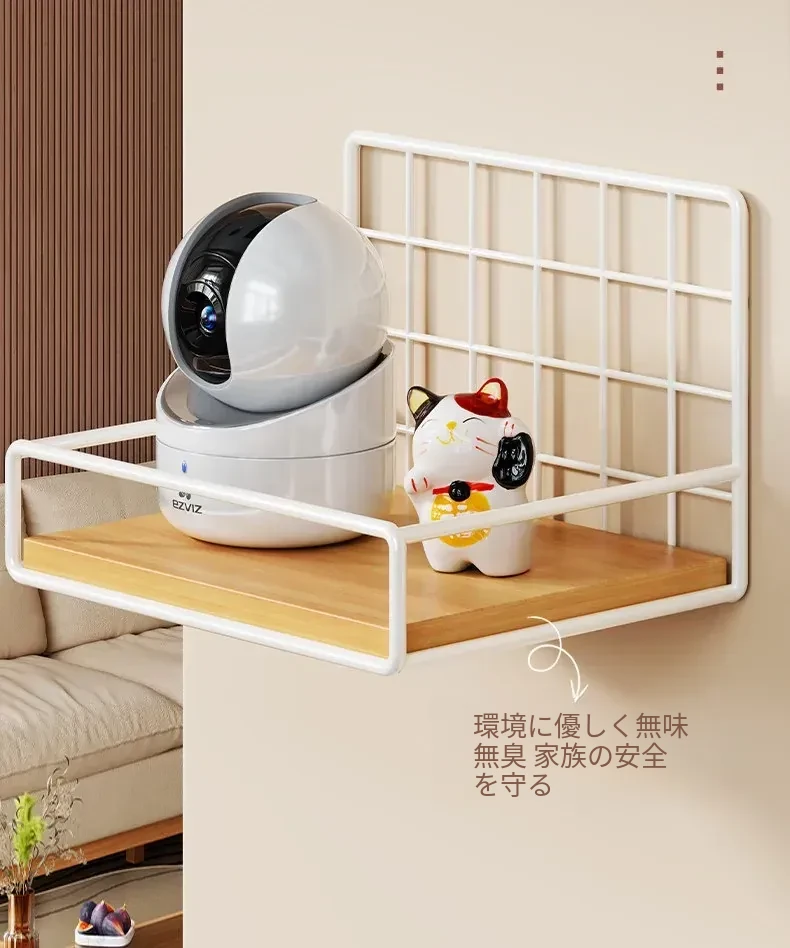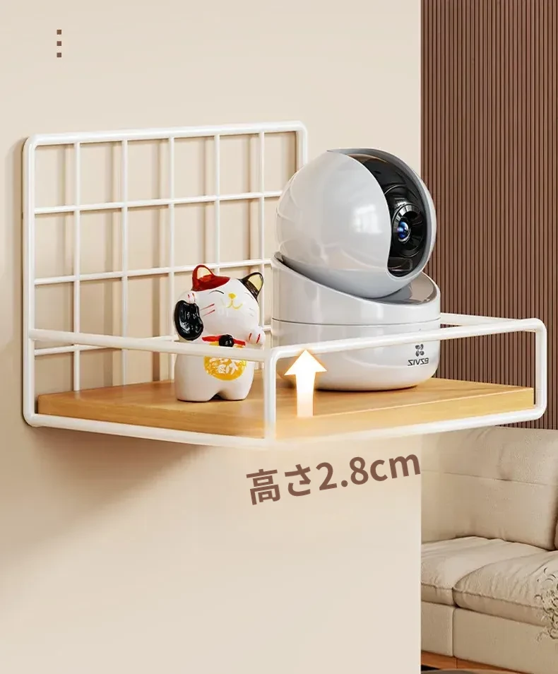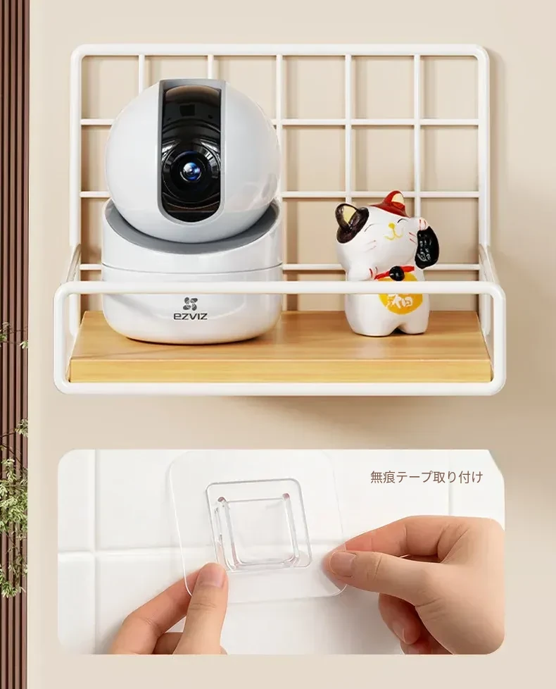 カメラ用ウォールシェルフ - 家庭用・穴あけ不要のルーター・セットトップボックススタンド、室内外監視器に最適!おしゃれで便利な収納で、スッキリとした空間を実現!