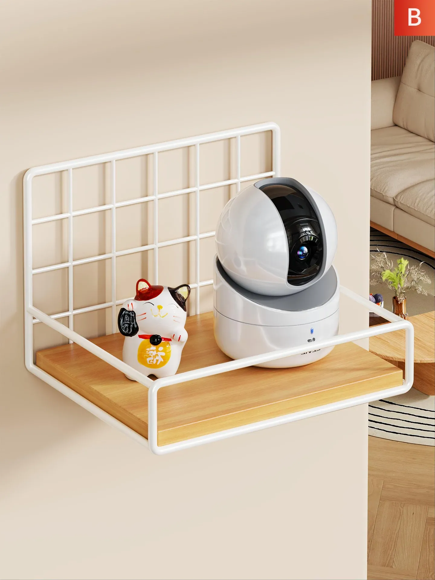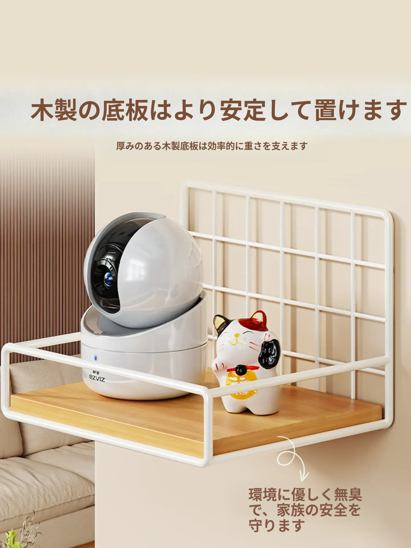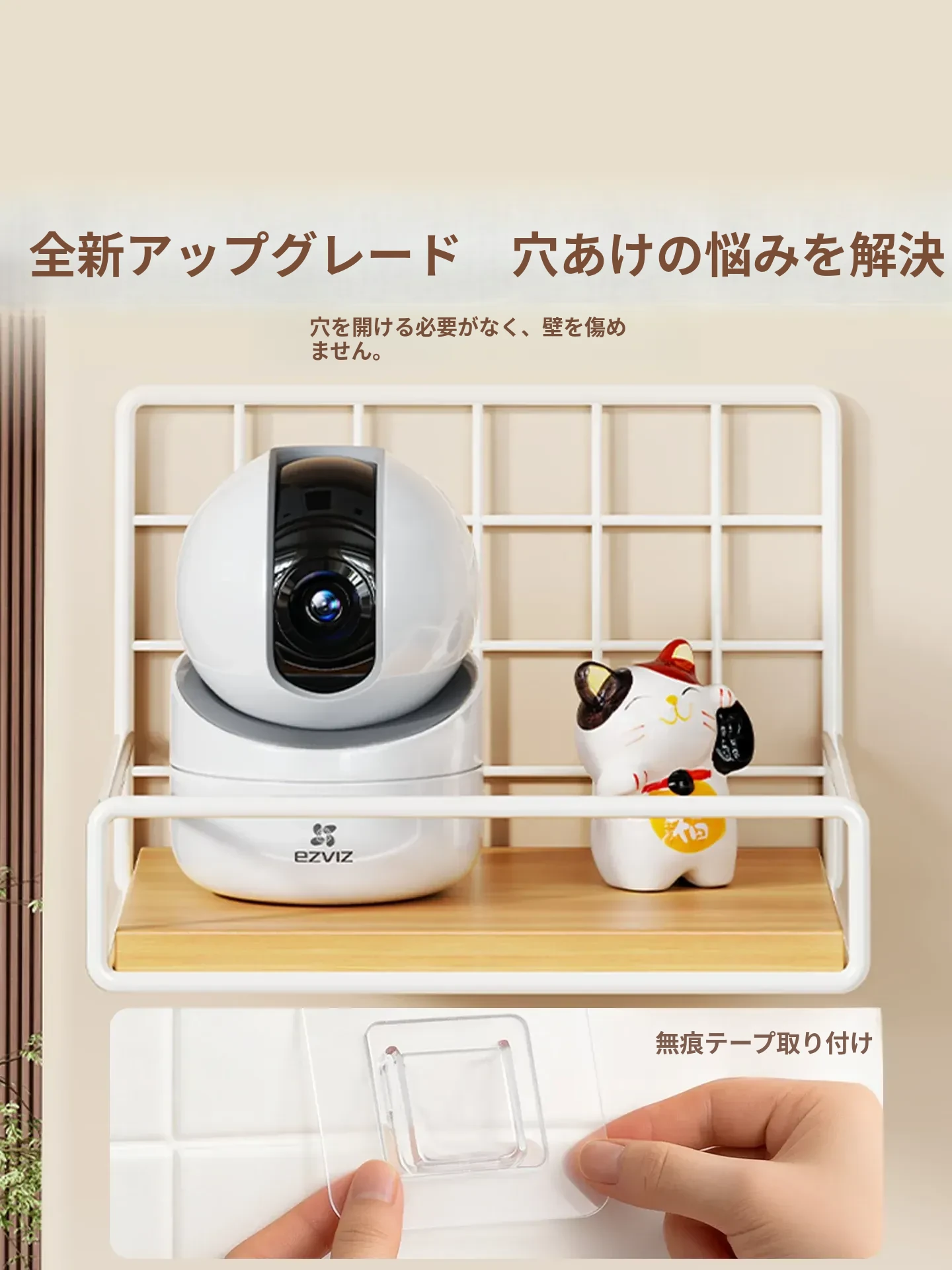 カメラ用ウォールシェルフ - 家庭用・穴あけ不要のルーター・セットトップボックススタンド、室内外監視器に最適!おしゃれで便利な収納で、スッキリとした空間を実現!