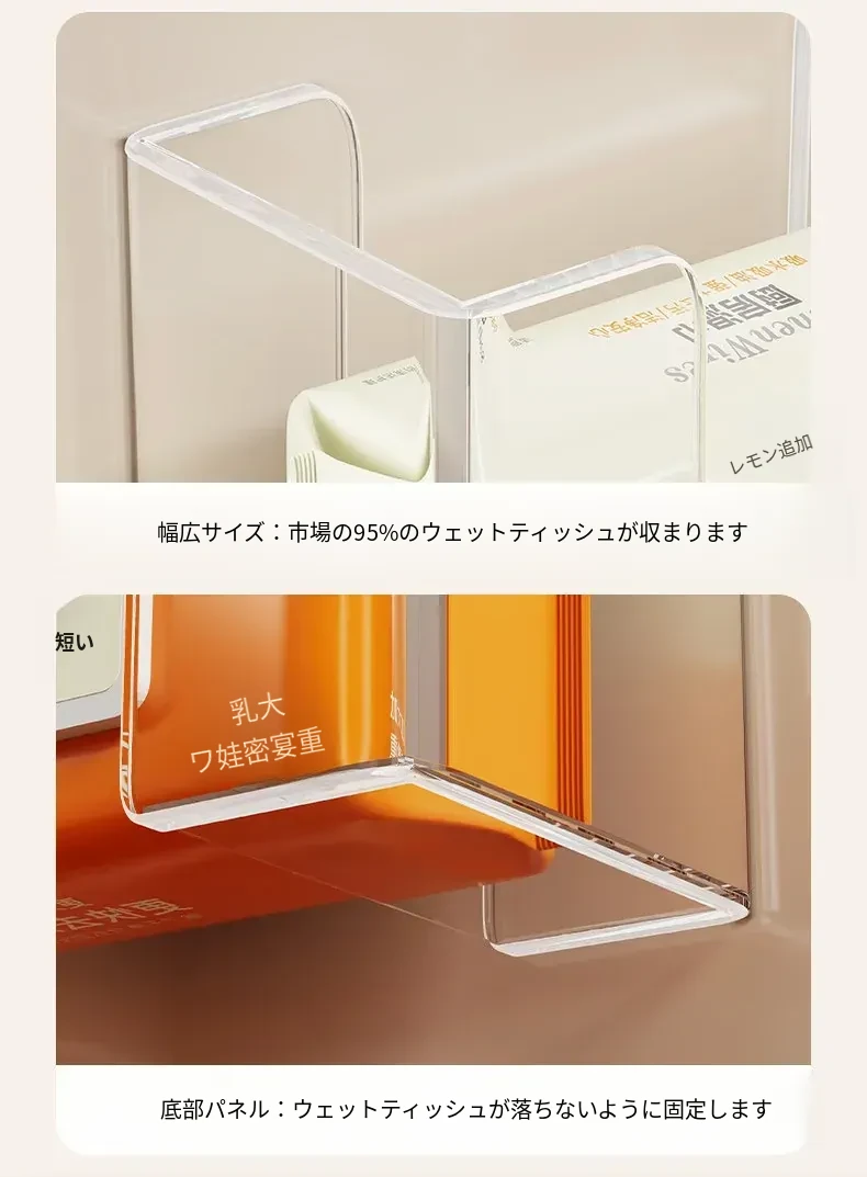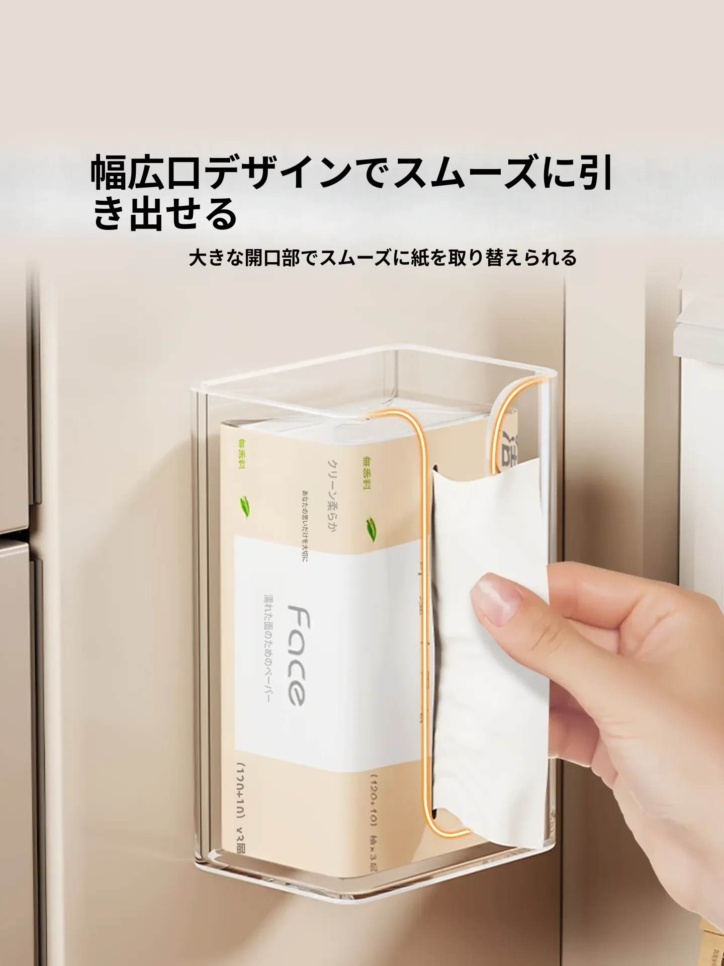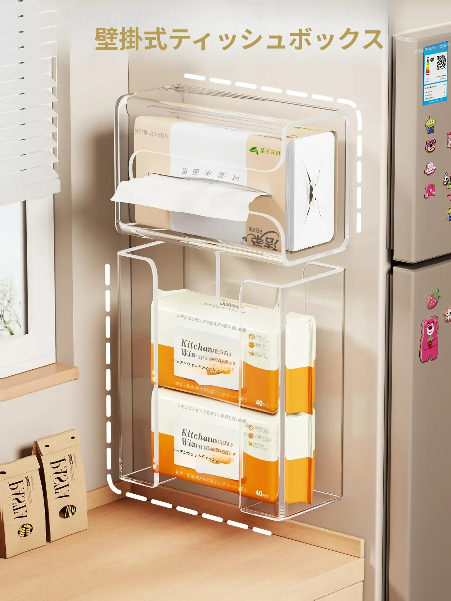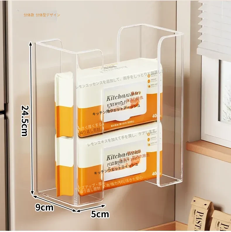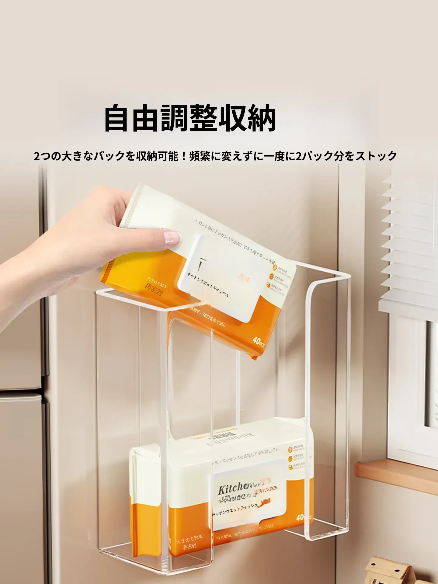 キッチンペーパーケース 壁掛け分離式 ウェットティッシュ収納ラック 透明で穴を開けずに取り付け可能!フェイスタオルやティッシュもスッキリ収納できる便利なアイテムです。おしゃれで機能的な収納で、キッチンをもっと快適に!