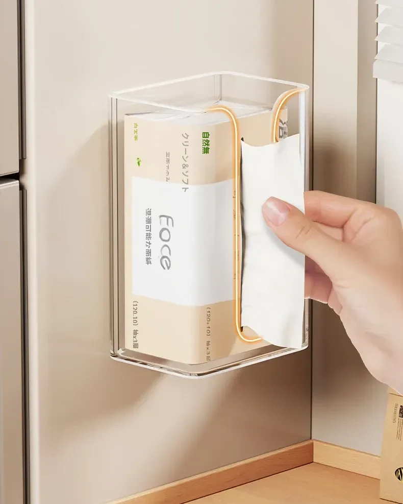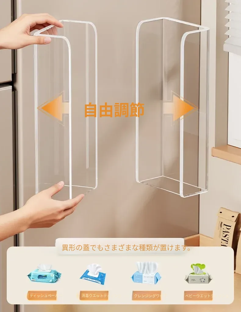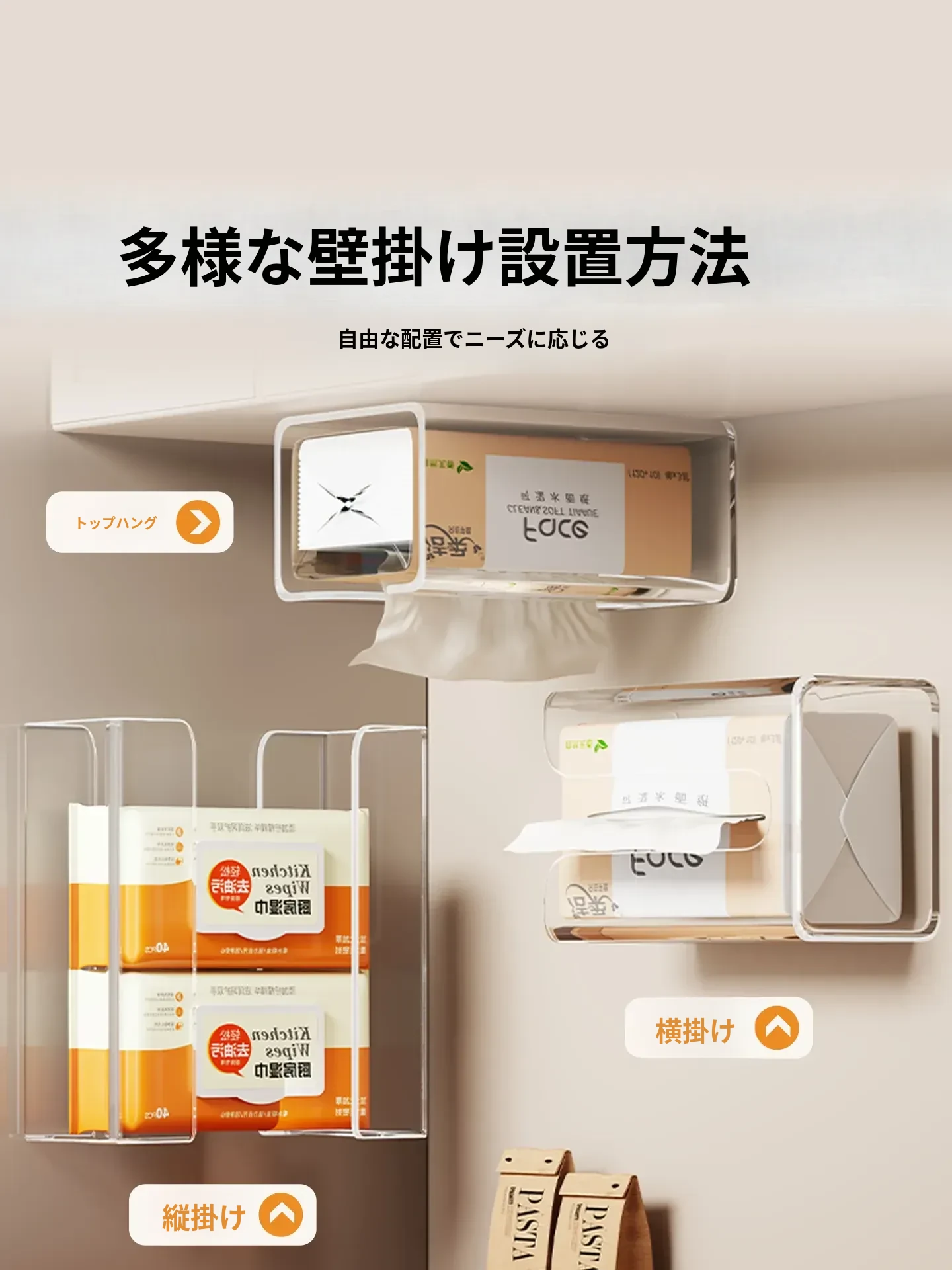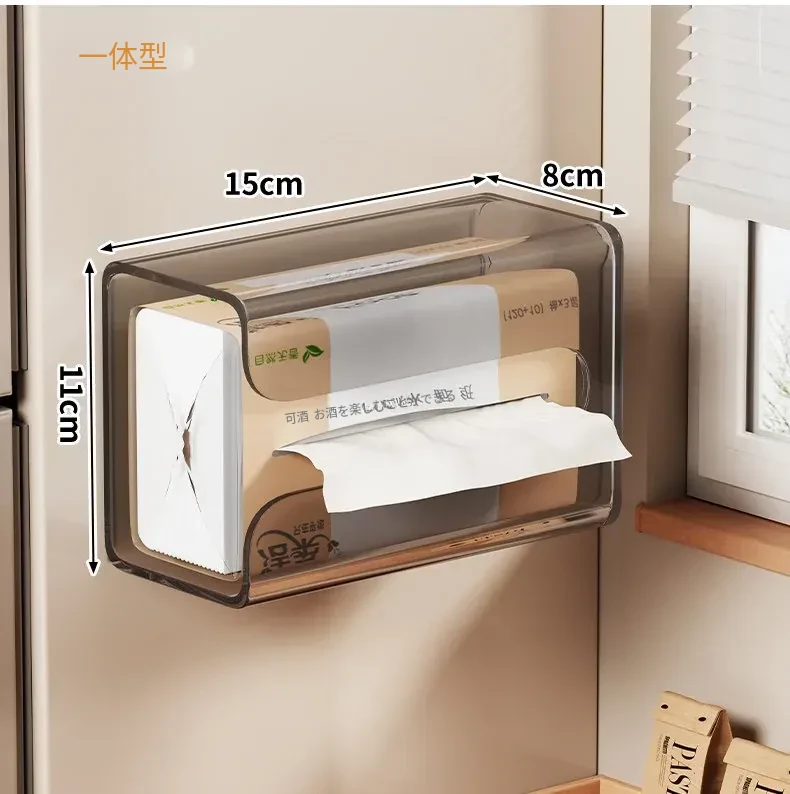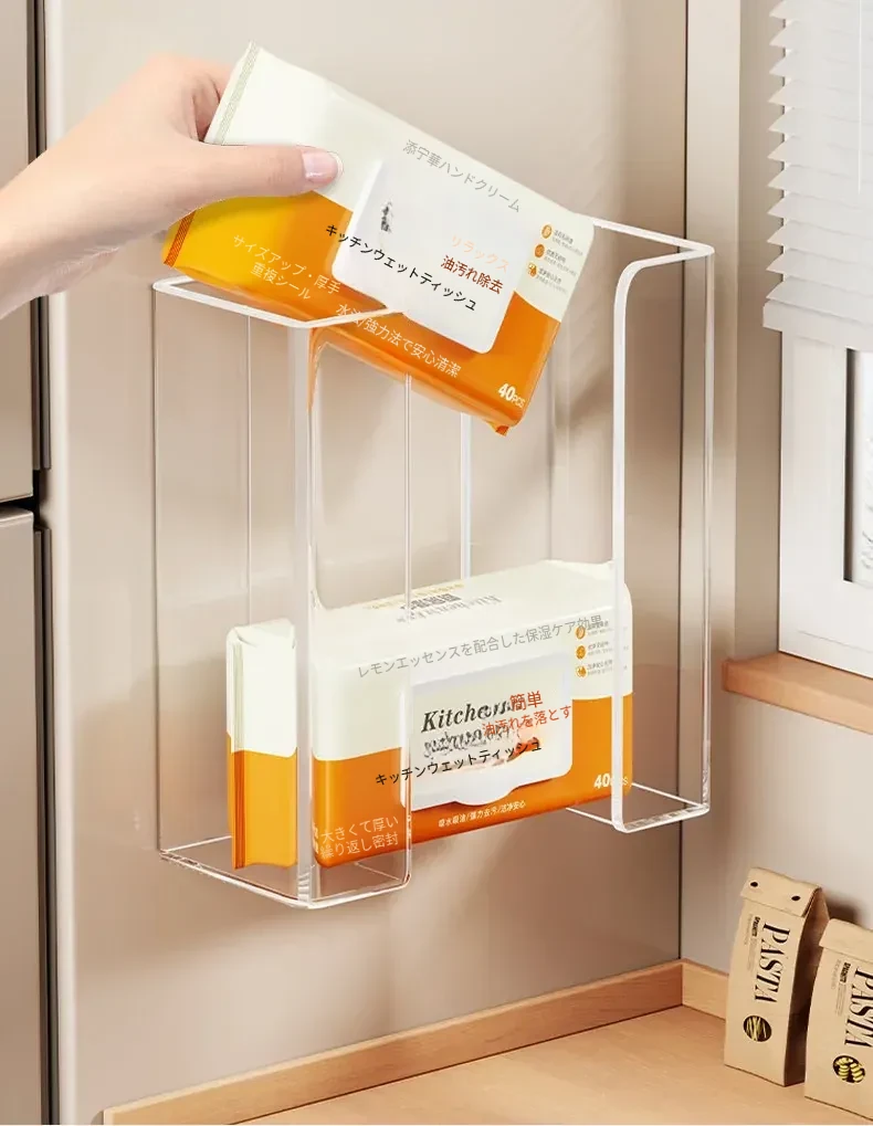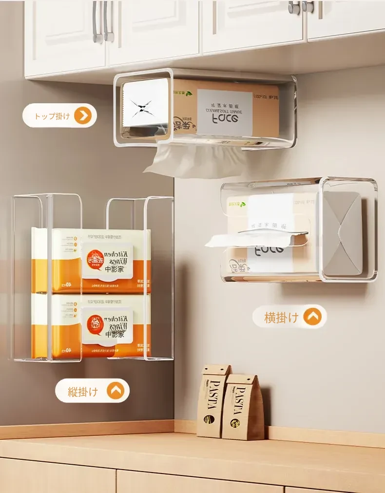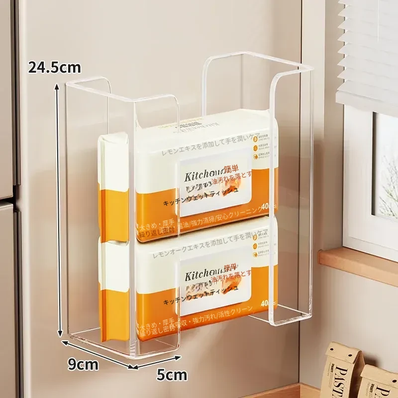 キッチンペーパーケース 壁掛け分離式 ウェットティッシュ収納ラック 透明で穴を開けずに取り付け可能!フェイスタオルやティッシュもスッキリ収納できる便利なアイテムです。おしゃれで機能的な収納で、キッチンをもっと快適に!
