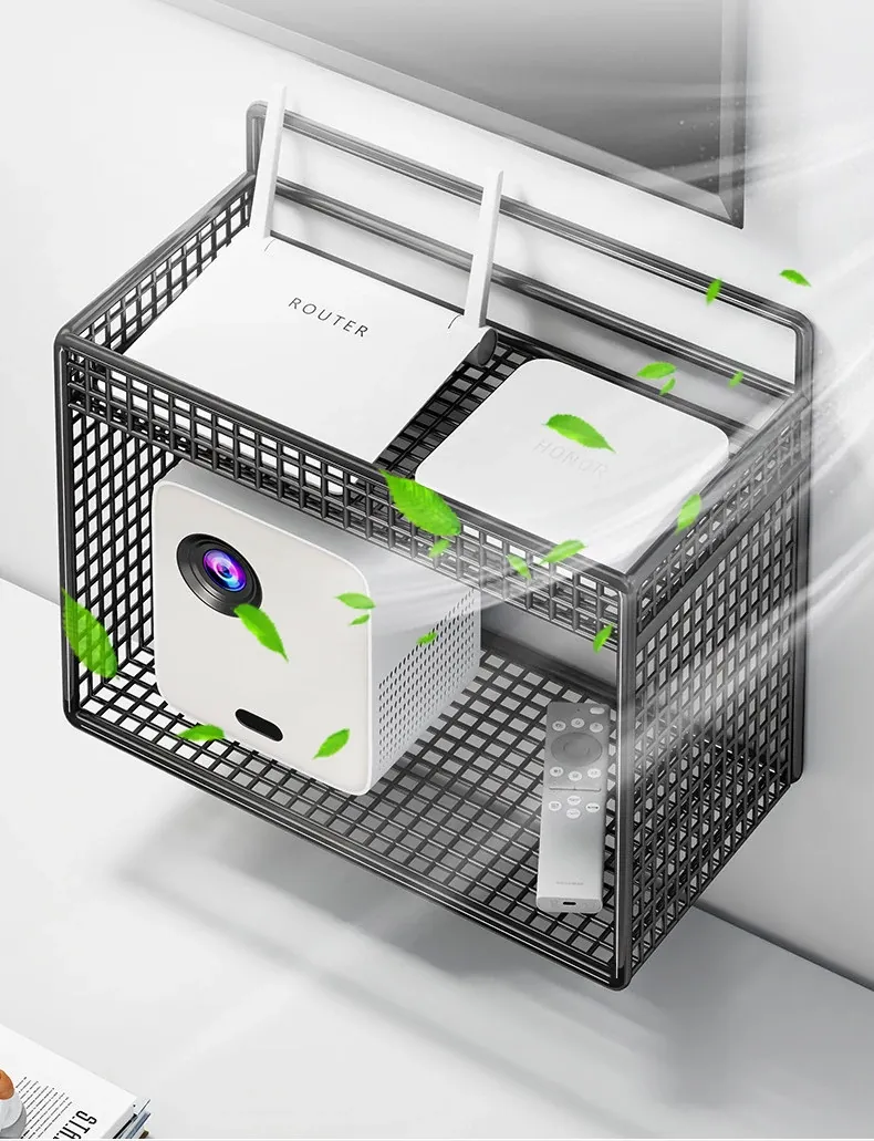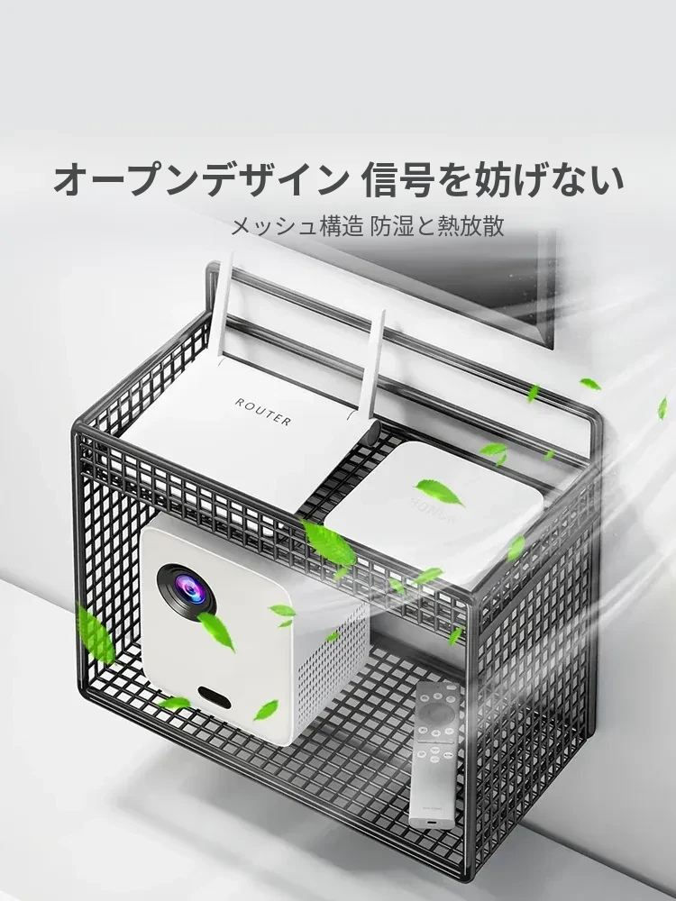 Wi-Fiルーター用壁掛け収納ラック|二段式耐荷重設計で、スペースを有効活用!穴を開けずに取り付け可能な収納ボックスで、すっきりとしたお部屋を実現!