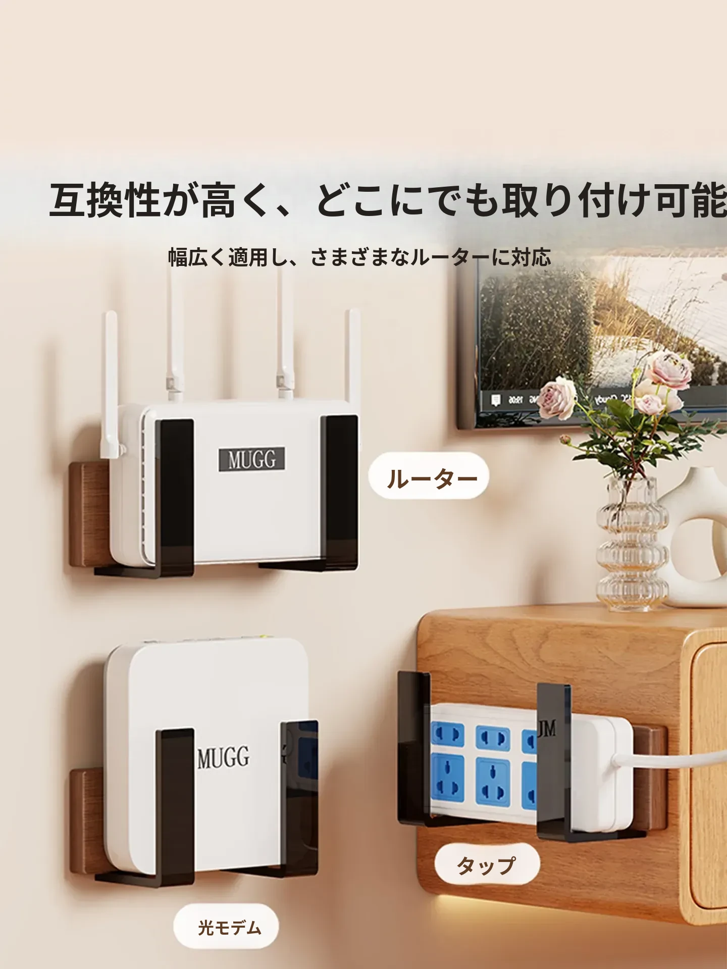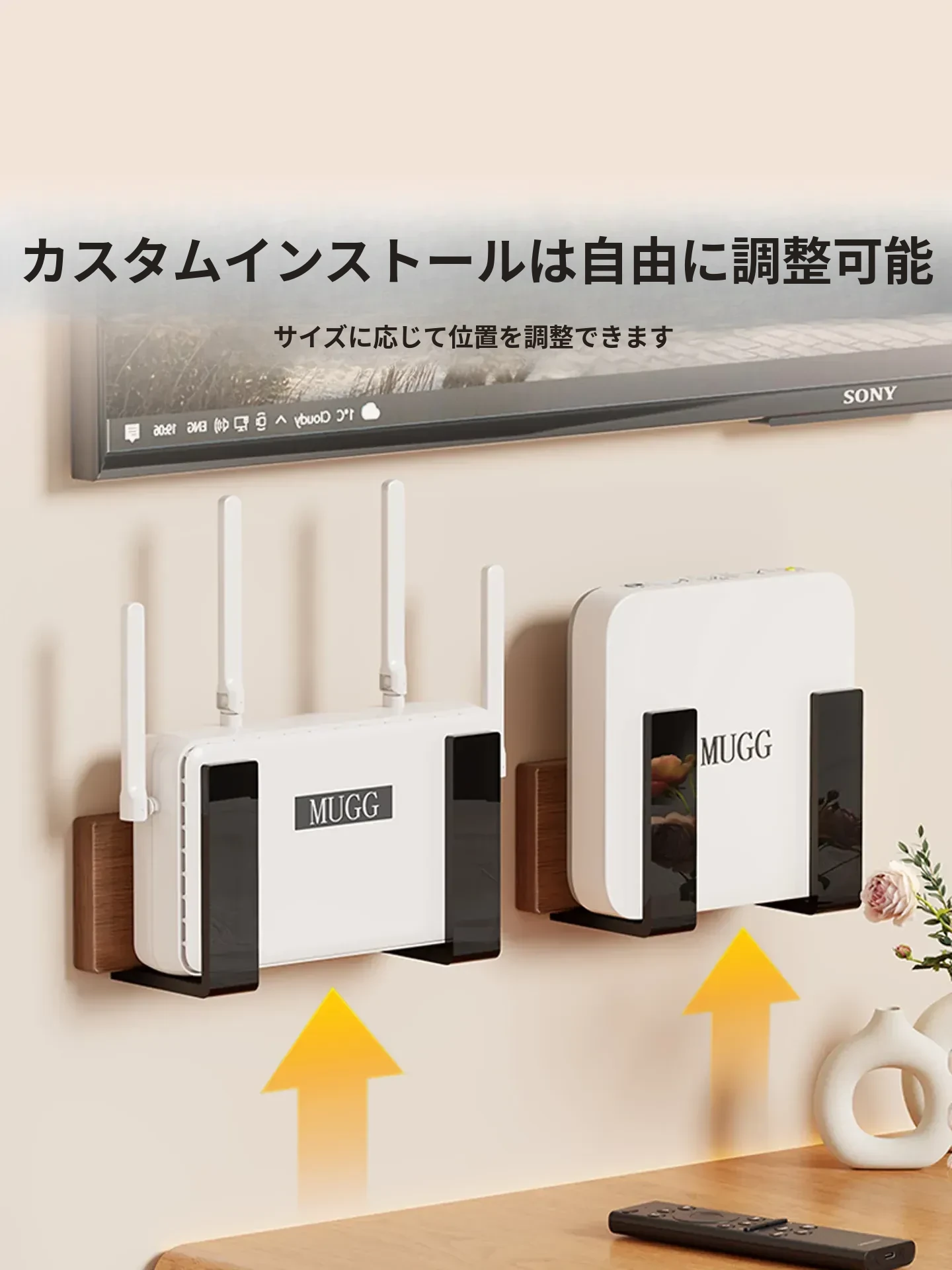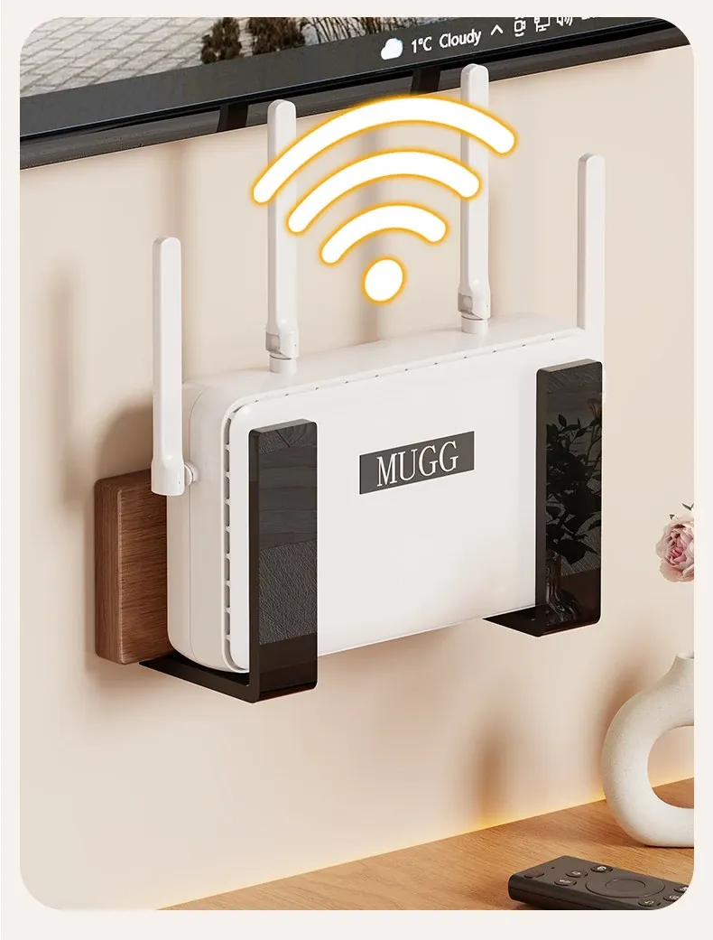 壁掛けルーター収納ラック - 簡単取り付け、穴あけ不要!機器ボックスやWi-Fi収納に最適、スッキリ整理整頓を実現!
